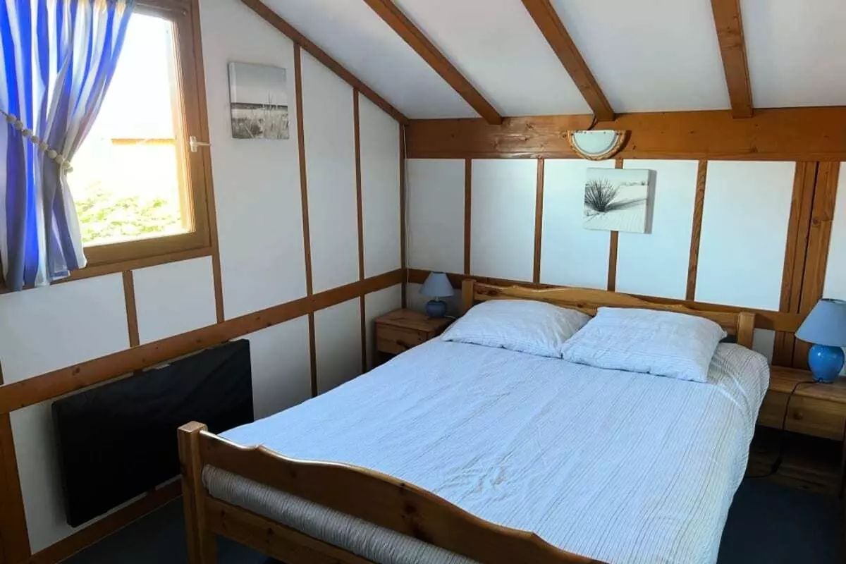 Adorable chalet en bois de 75m² au Jardin du Braou, se composant de :