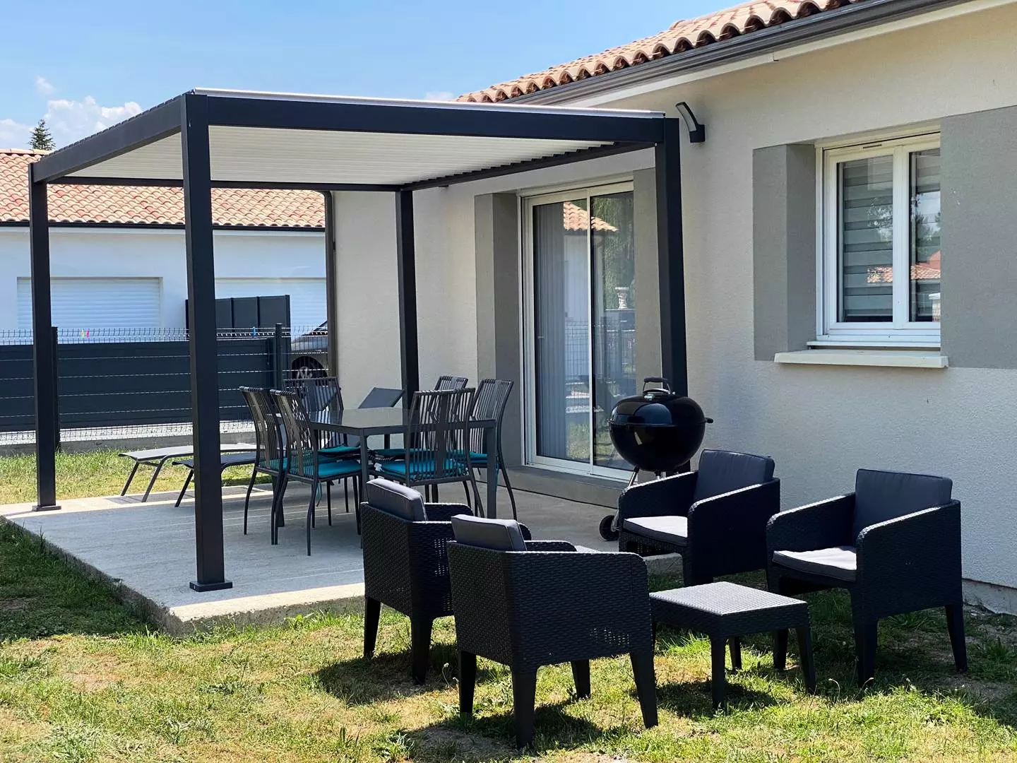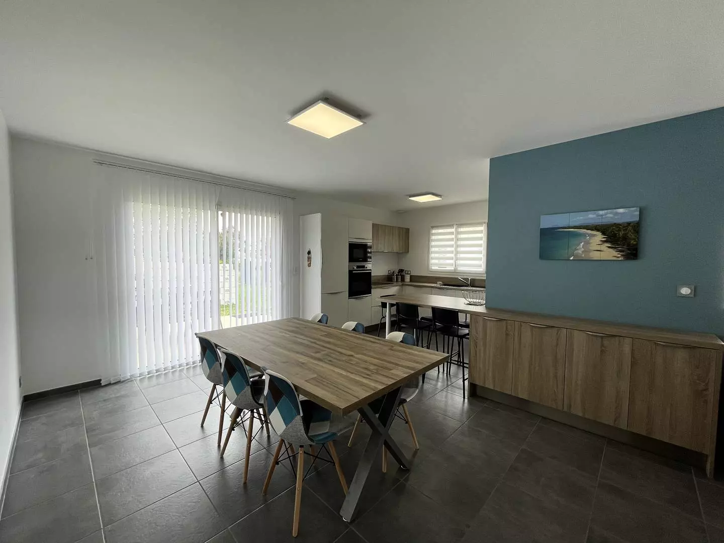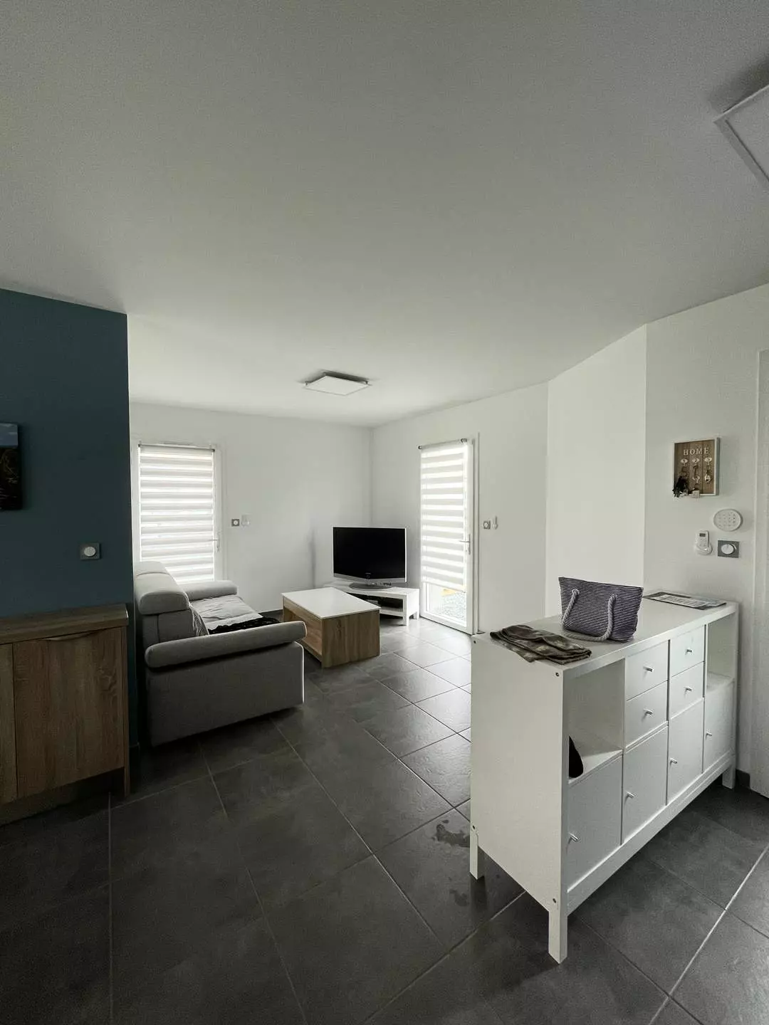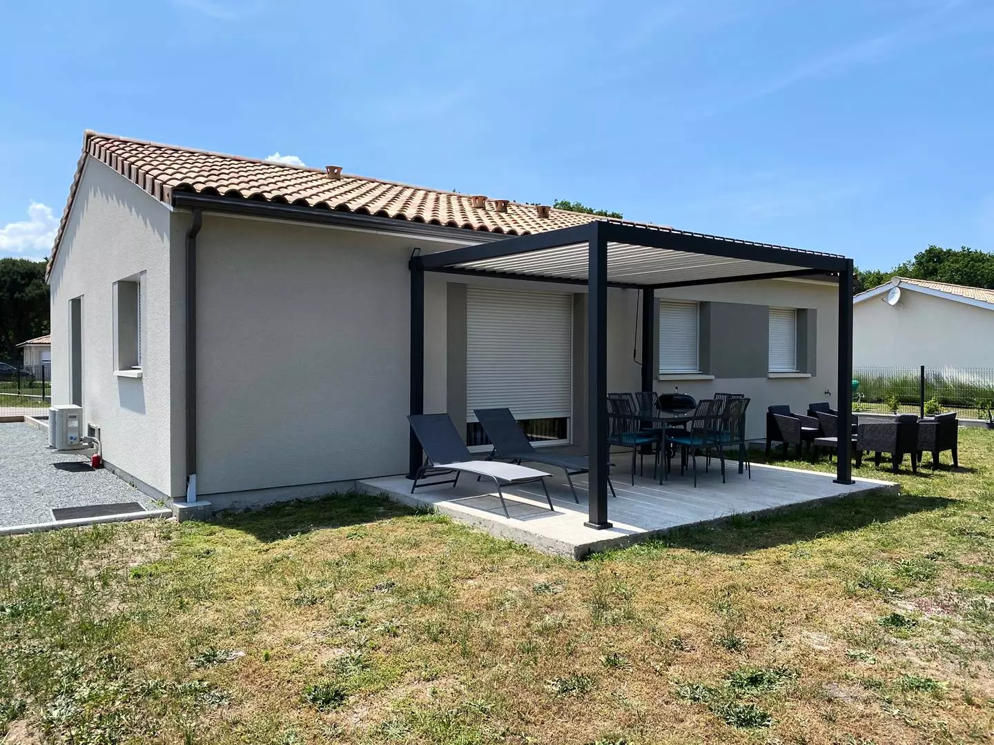Maison neuve d'environ 90m² avec son terrain de 600m² se trouvant dans un petit lotissement à Vendays accessible aux personnes handicapées. Cette maison décorée avec goût se compose d'une entrée, une cuisine ouverte et équipée donnant sur un espace repas, un coin buanderie, un salon avec téléviseur et canapé/lit, deux chambres avec lit double en 160cm et rangements, une 3ème chambre avec 2 lits simples séparés, une salle d'eau/WC. Les extérieurs sont équipés d'une terrasse avec salon de jardin, barbecue, boulodrome ..... Petits animaux acceptés. Les commerces se trouvent à environ 5mns de la maison et à 8kms des plages de Montalivet. Possibilité de se garer sur le terrain. Caution à régler sur place. Chèques vacances acceptée.