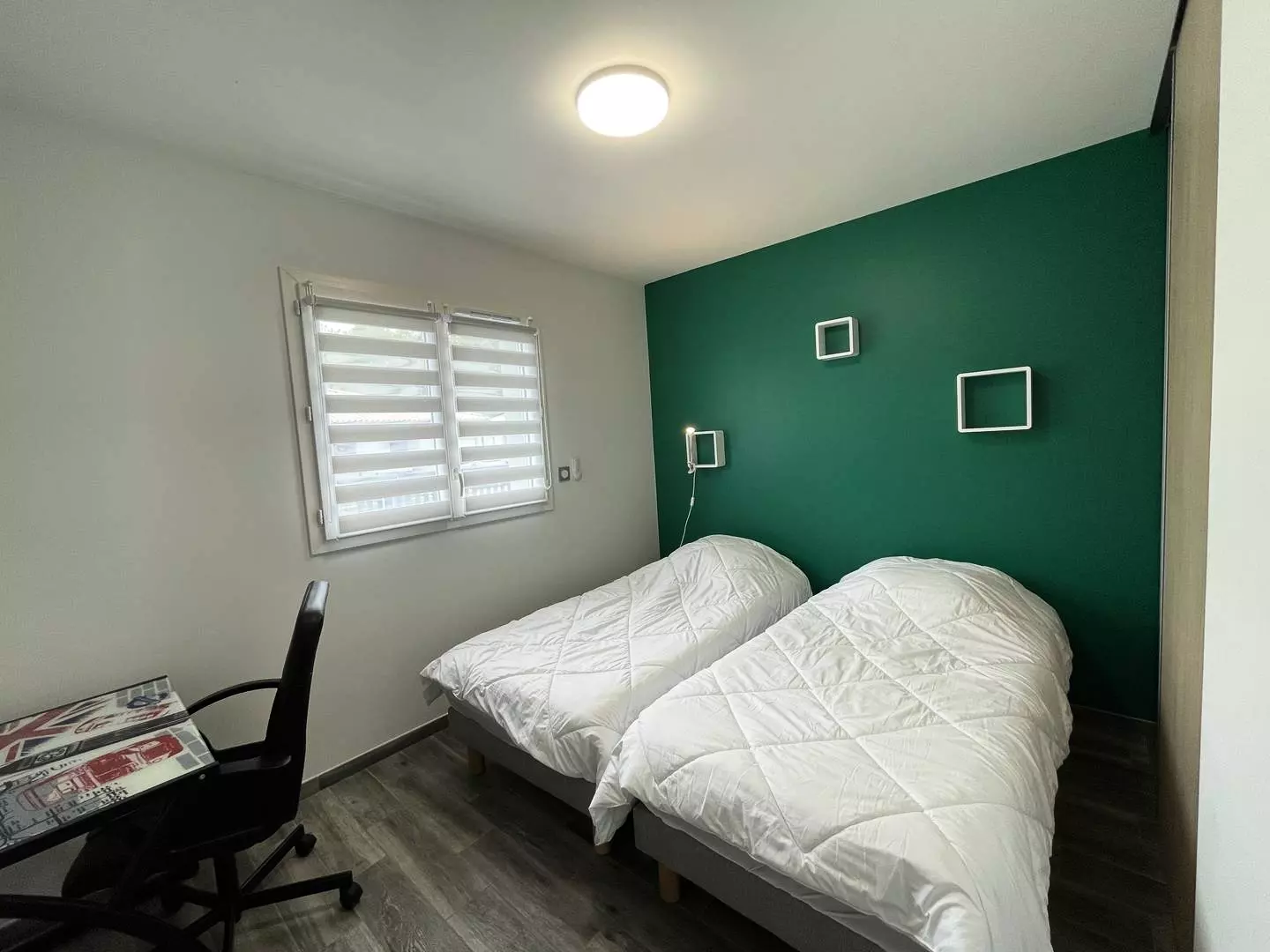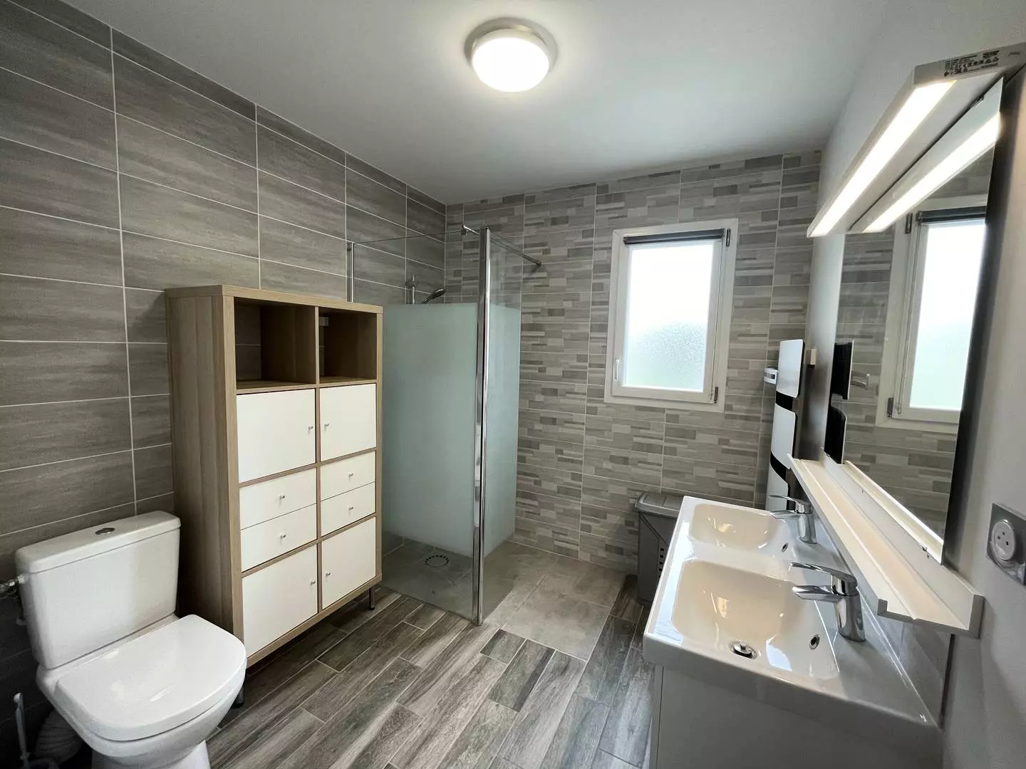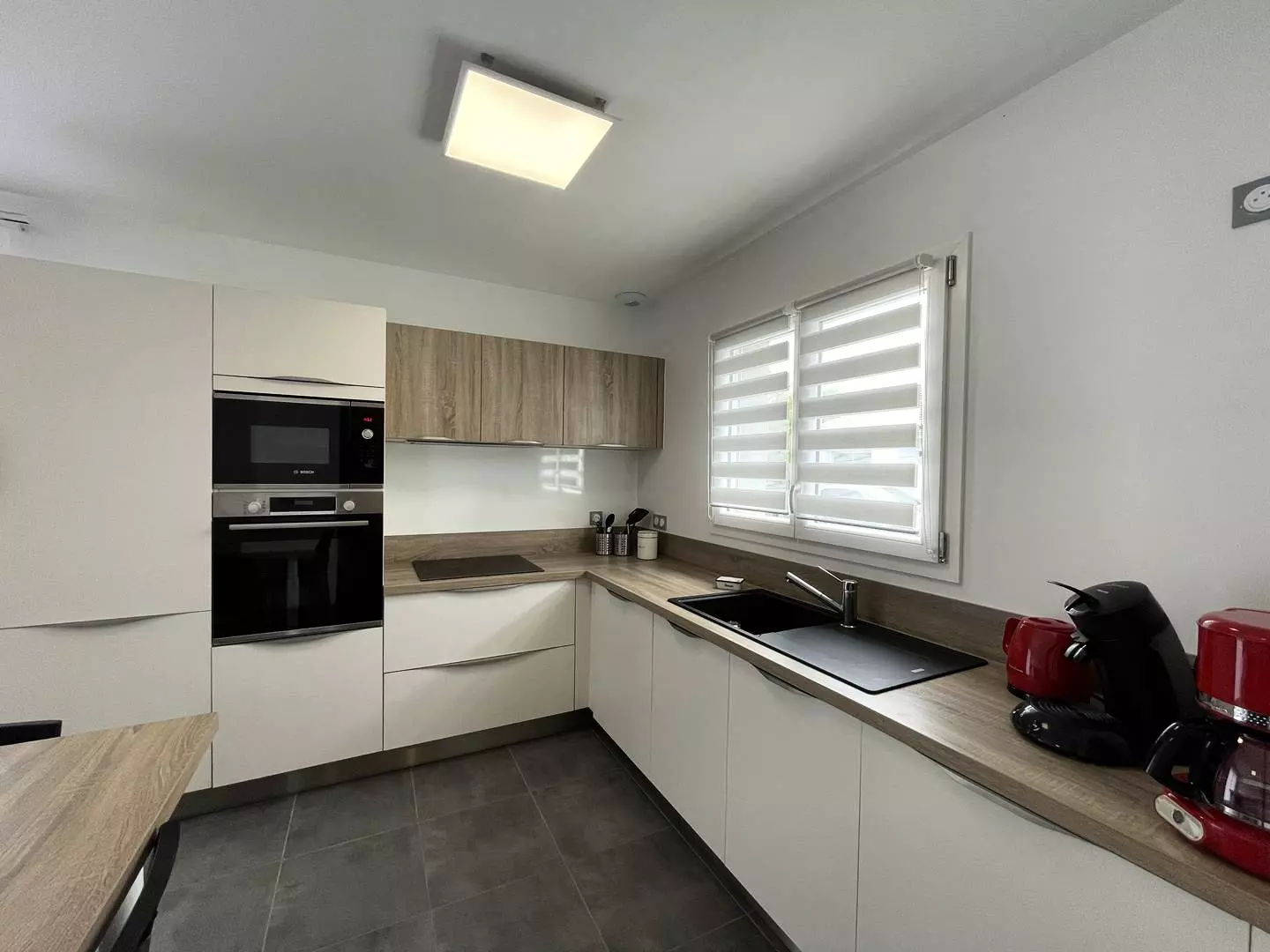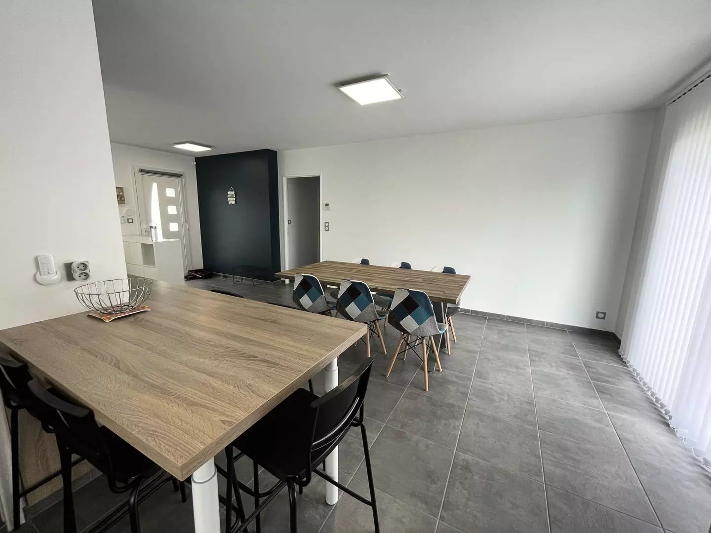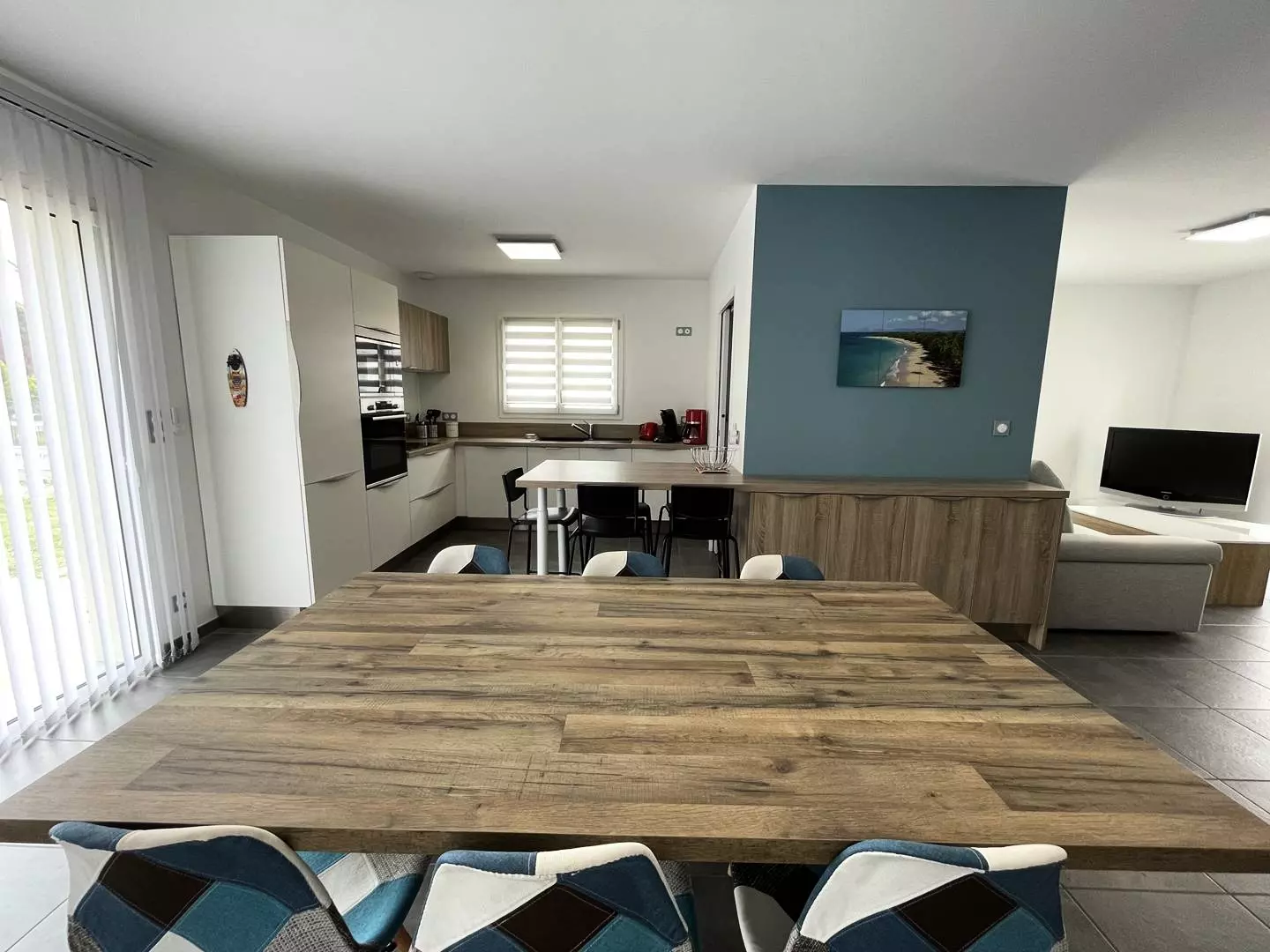 Maison neuve d'environ 90m² avec son terrain de 600m² se trouvant dans un petit lotissement à Vendays accessible aux personnes handicapées. Cette maison décorée avec goût se compose d'une entrée, une cuisine ouverte et équipée donnant sur un espace repas, un coin buanderie, un salon avec téléviseur et canapé/lit, deux chambres avec lit double en 160cm et rangements, une 3ème chambre avec 2 lits simples séparés, une salle d'eau/WC. Les extérieurs sont équipés d'une terrasse avec salon de jardin, barbecue, boulodrome ..... Petits animaux acceptés. Les commerces se trouvent à environ 5mns de la maison et à 8kms des plages de Montalivet. Possibilité de se garer sur le terrain. Caution à régler sur place. Chèques vacances acceptée.