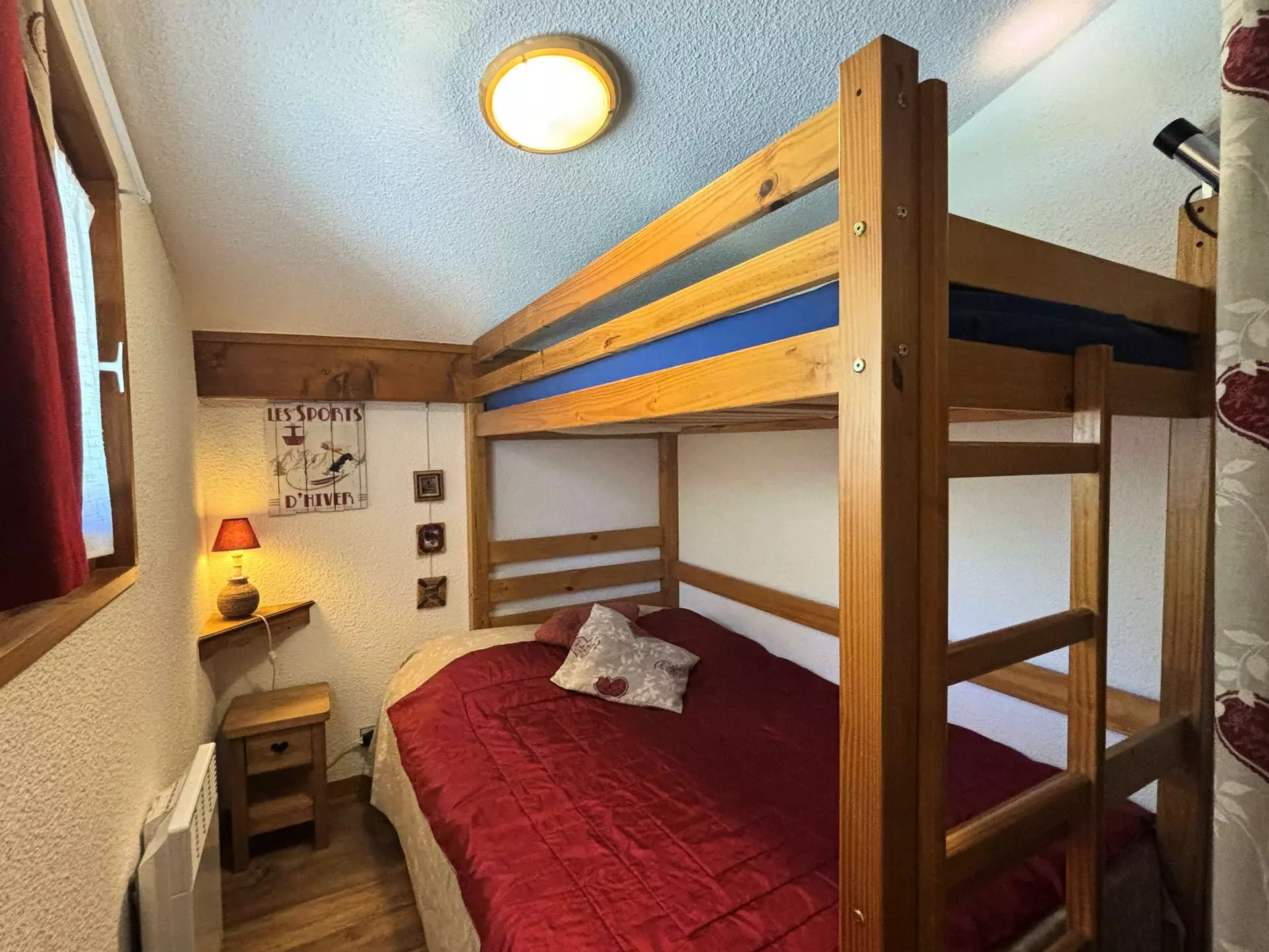 Cet appartement de vacances, situé au 3ème étage de la résidence (entrée piétonne au 1er étage), comprend un séjour avec un canapé lit convertible, une cuisine équipée, une chambre avec un lit double et un lit superposé une place, salle de bains avec baignoire et un WC indépendant.