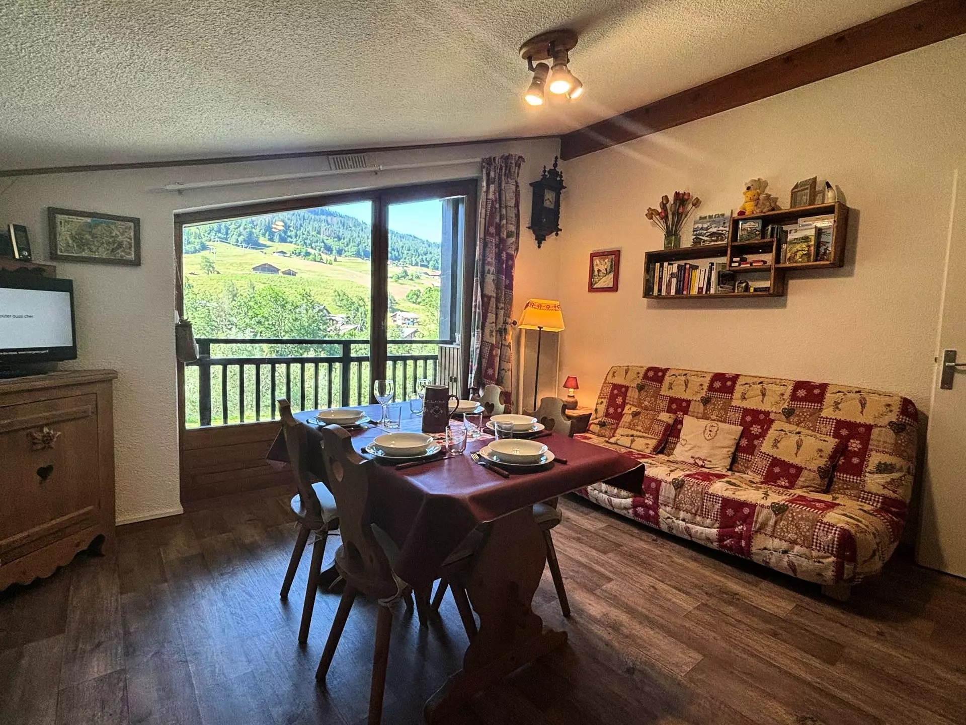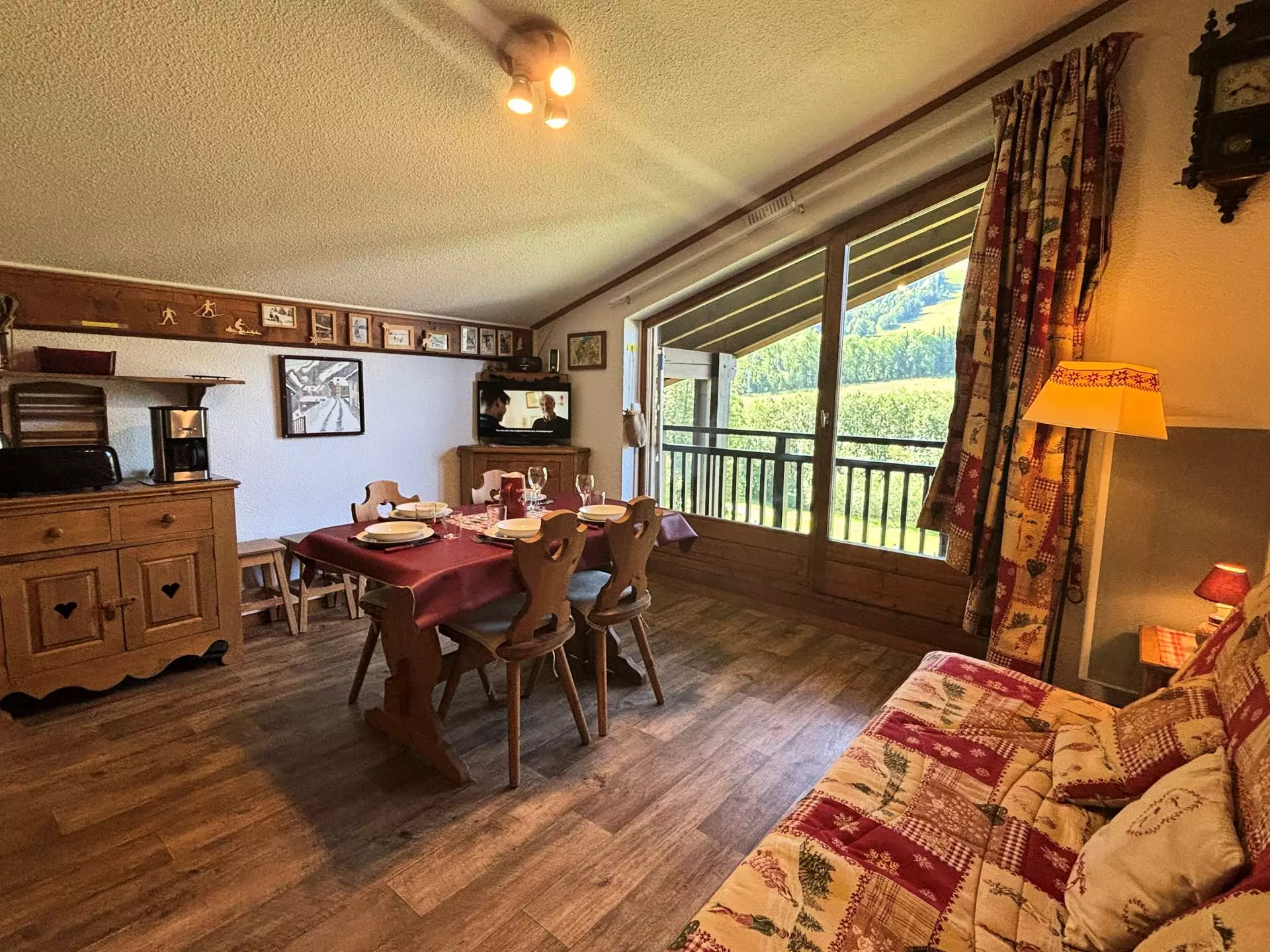 Vous bénéficierez d'une place de parking nominative ainsi que d'un casier à skis privatisé. Le balcon vous offrira une vue sur une partie du domaine skiable et les montagnes avoisinantes.