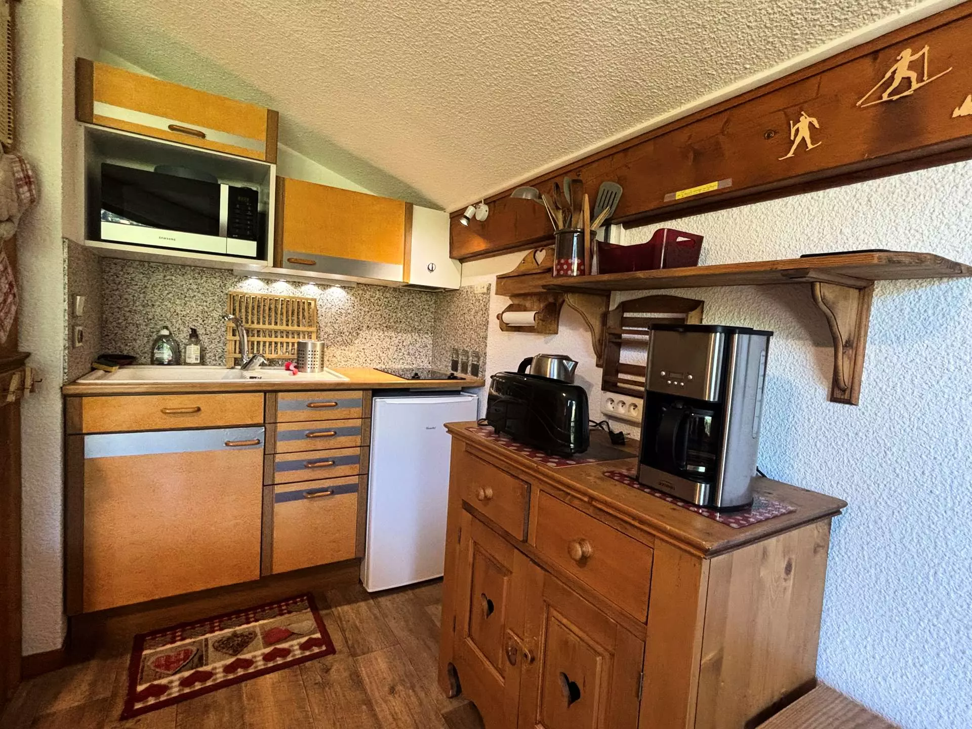 L'appartement se trouve à environ 300 mètres des pistes part un chemin piéton, à environ 550 mètres du centre de la station, et à environ 1 kilomètre du nouveau lac de baignade ouvert l'été.