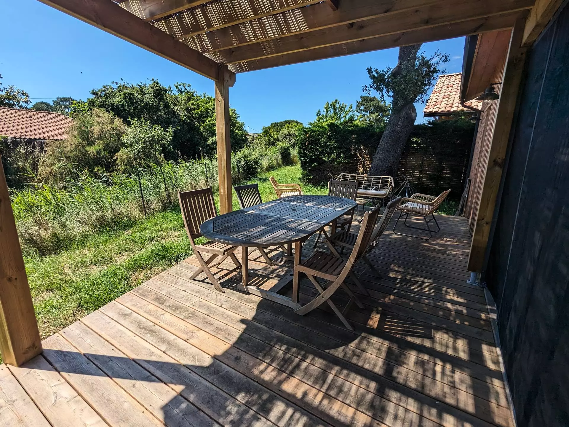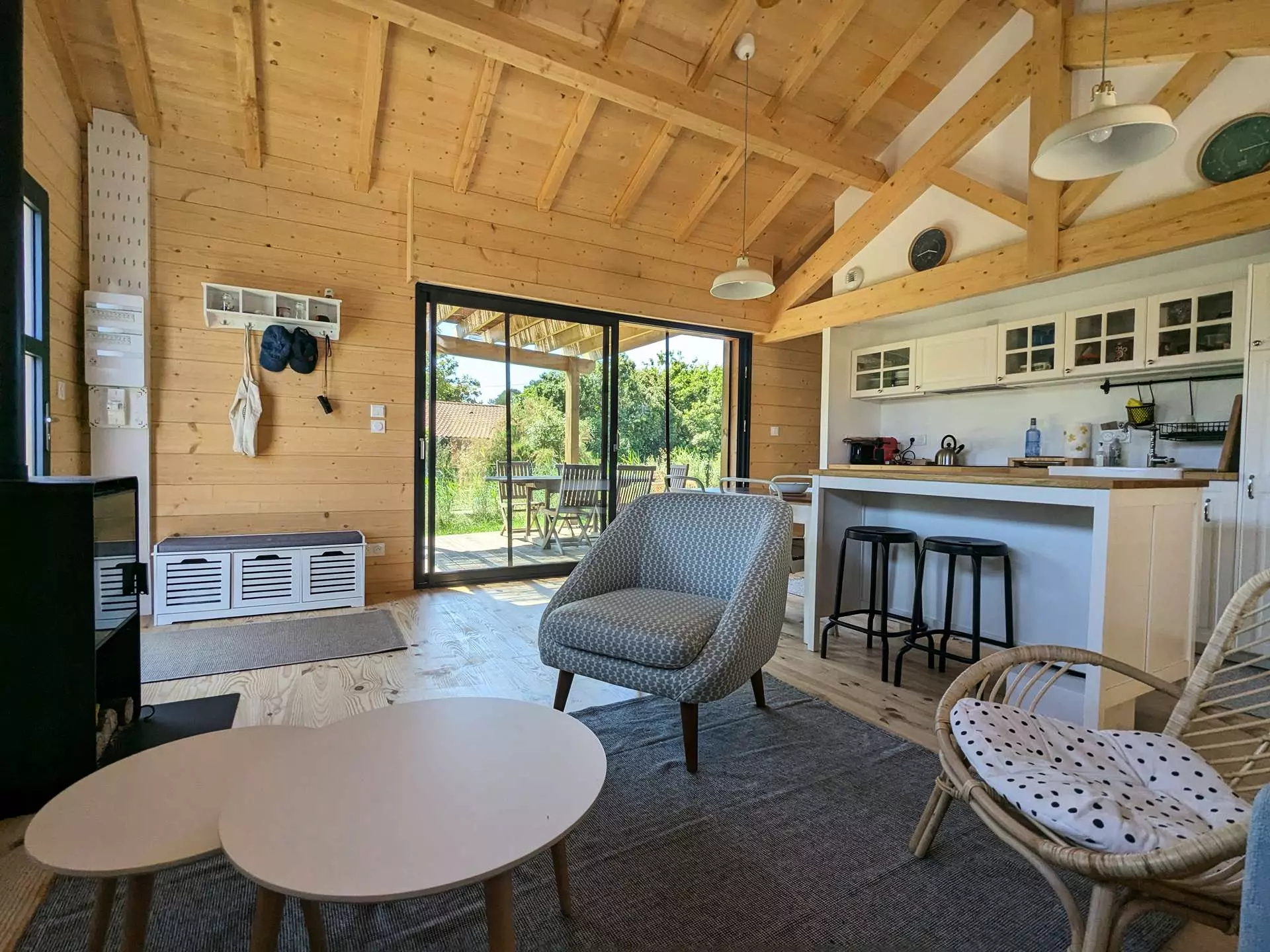 Venez passez un moment de tranquillité dans ce chalet en bois d'environ 50m² pouvant accueillir 4 personnes. Il se compose d'une cuisine équipée ouverte sur un espace à vivre, une première chambre avec un lit double en 140 cm et rangements, une deuxième chambre avec 2 lits simples superposés, une salle d'eau, un WC indépendant. A l'extérieur, une terrasse d'environ 20 m² équipée d'un salon de jardin, table, chaises et barbecue. POINTS FORTS : Situé à seulement 50m de la plage de la Chambrette par un accès privatif à la copropriété, vous pourrez vous détendre en famille. A seulement 5 min à pieds, la plage dispose d'un club de voile, un club pour enfants ainsi que 2 restaurants. Caution à régler sur place à l'arrivée. Chèques vacances acceptés.