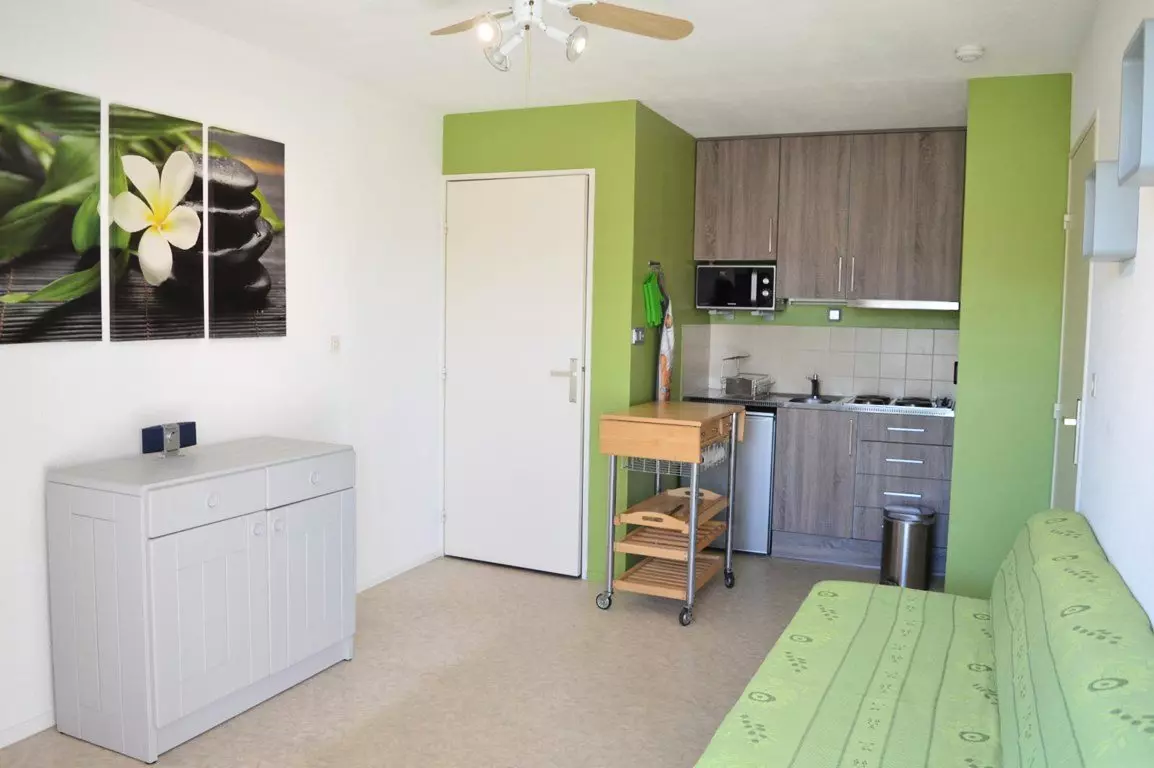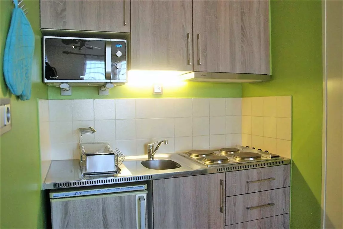 L'appartement propose une loggia et se compose d'un séjour avec lit gigogne, un coin cuisine, une chambre avec un lit double ainsi qu'une salle de bain avec lave linge et wc.