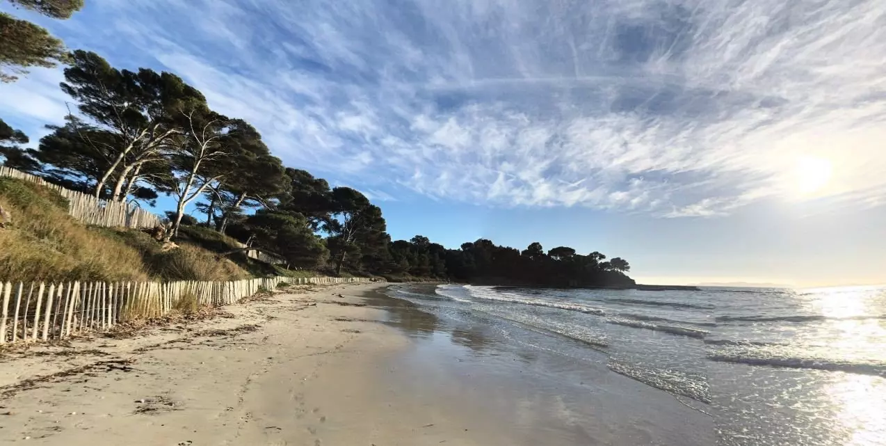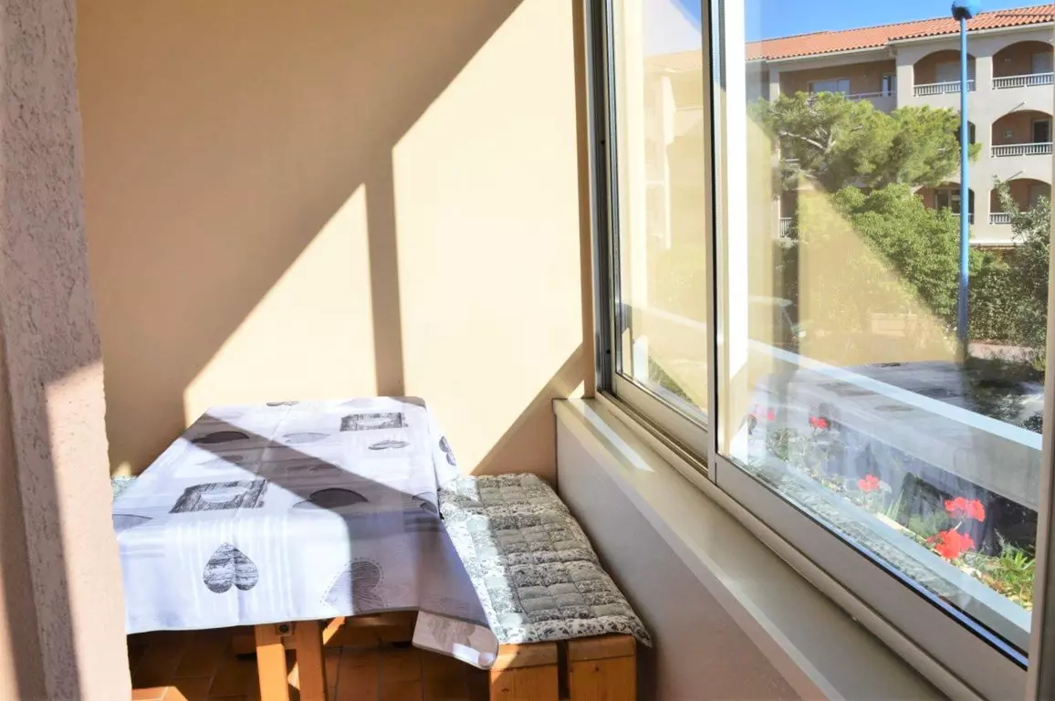 Cette location de vacances au 1er étage est située dans la résidence "Côte d'Azur V" à 300 mètres de la plage de la Favière et des commerces.