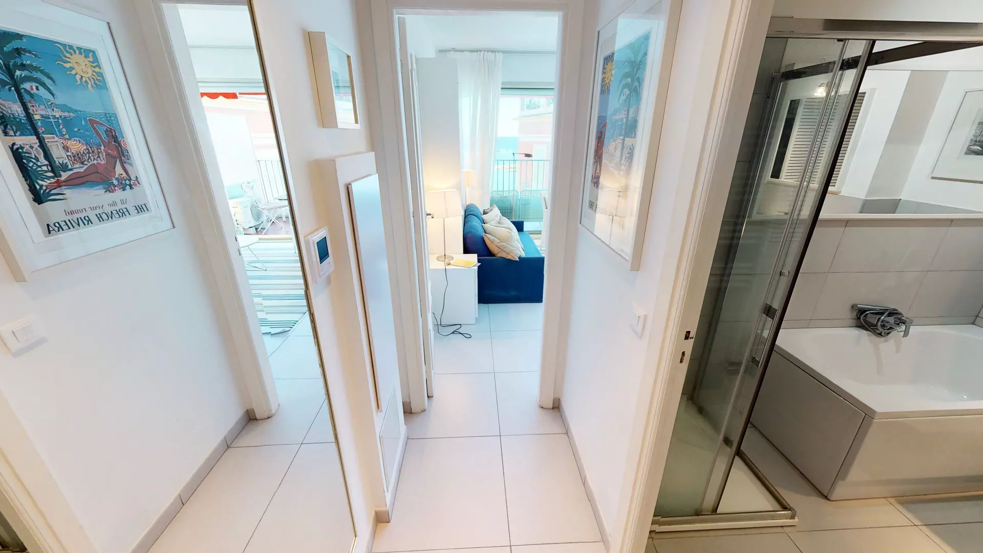Au bord de mer dans le quartier de Garavan, face à la légendaire plage "Les Sablettes"et proche des commerces et du centre-ville, résidence de standing rénovée en 2016 avec ascenseur.