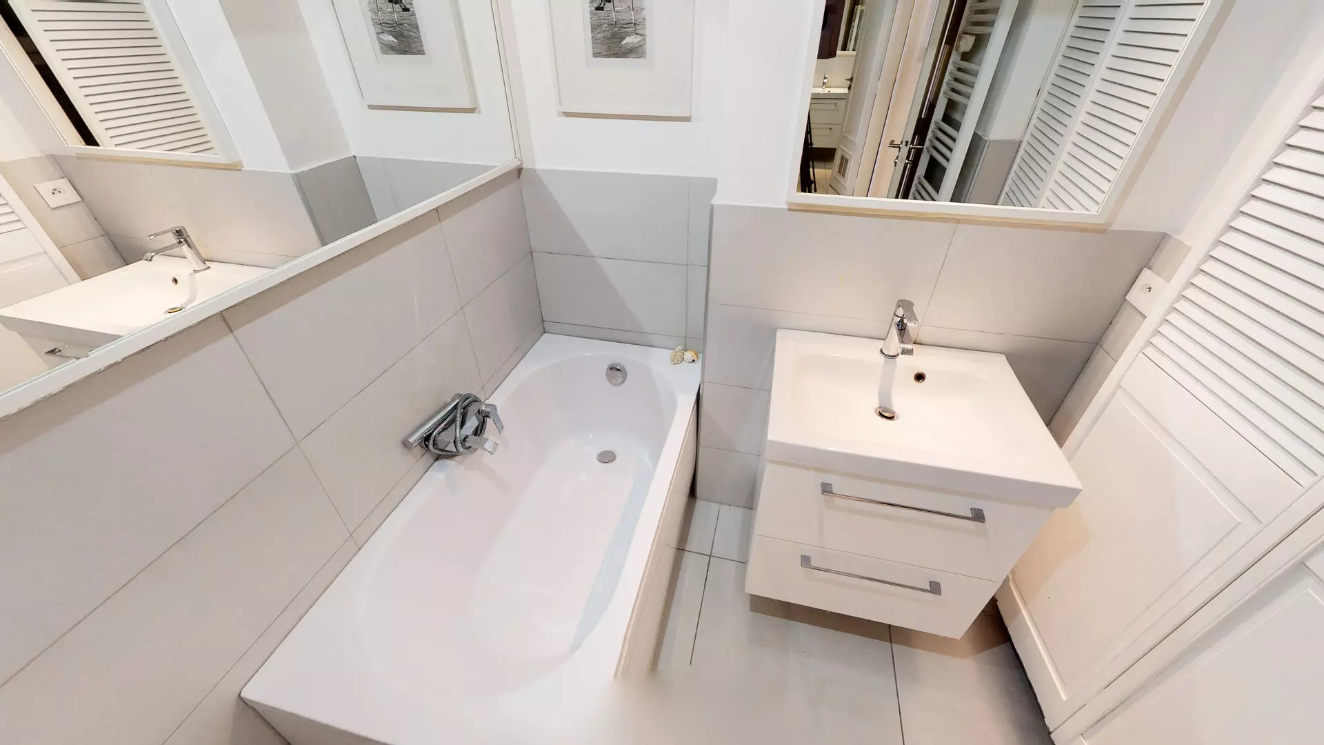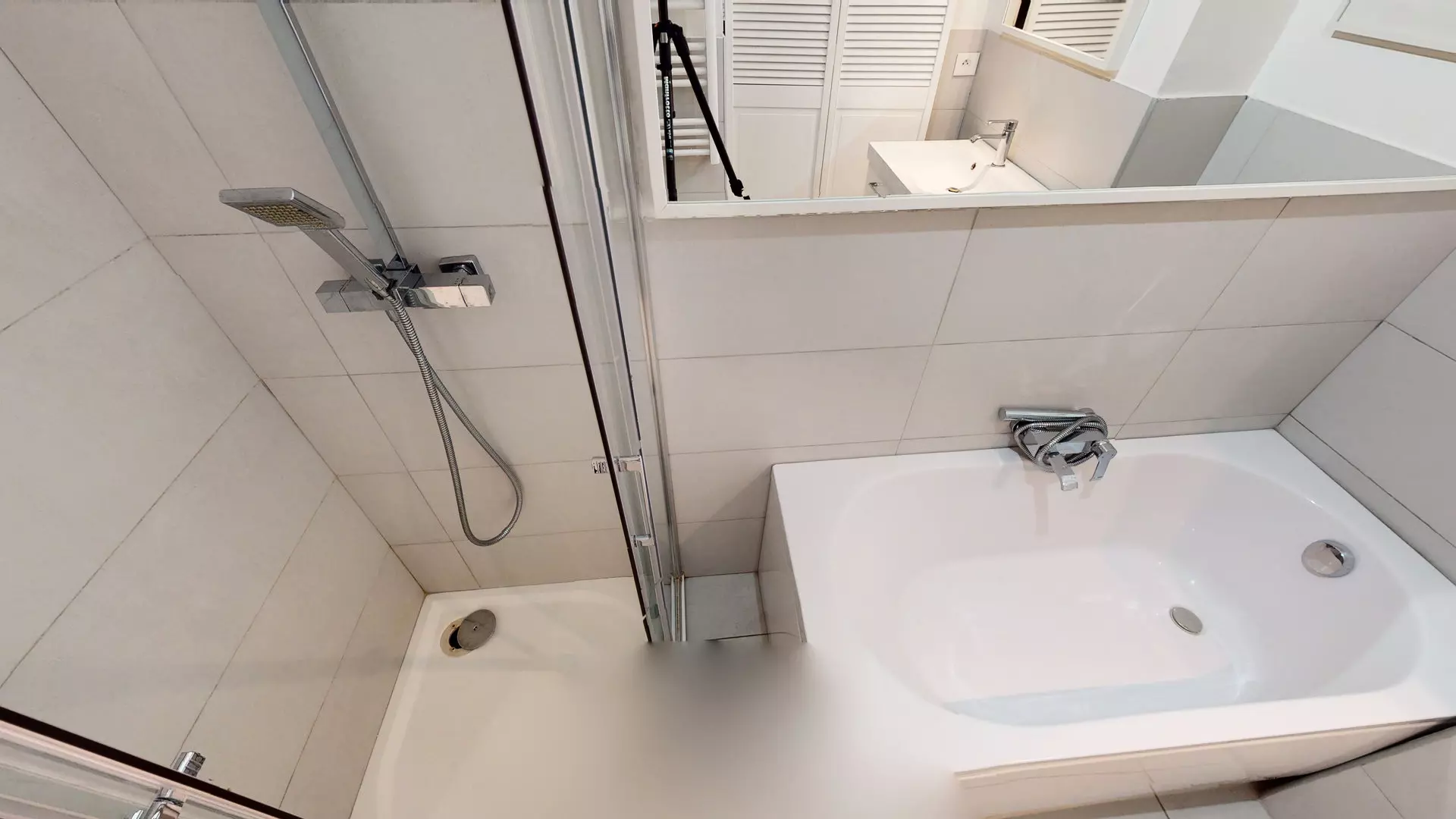 Salle de bains avec baignoire/douche et lave-/sèche-linge