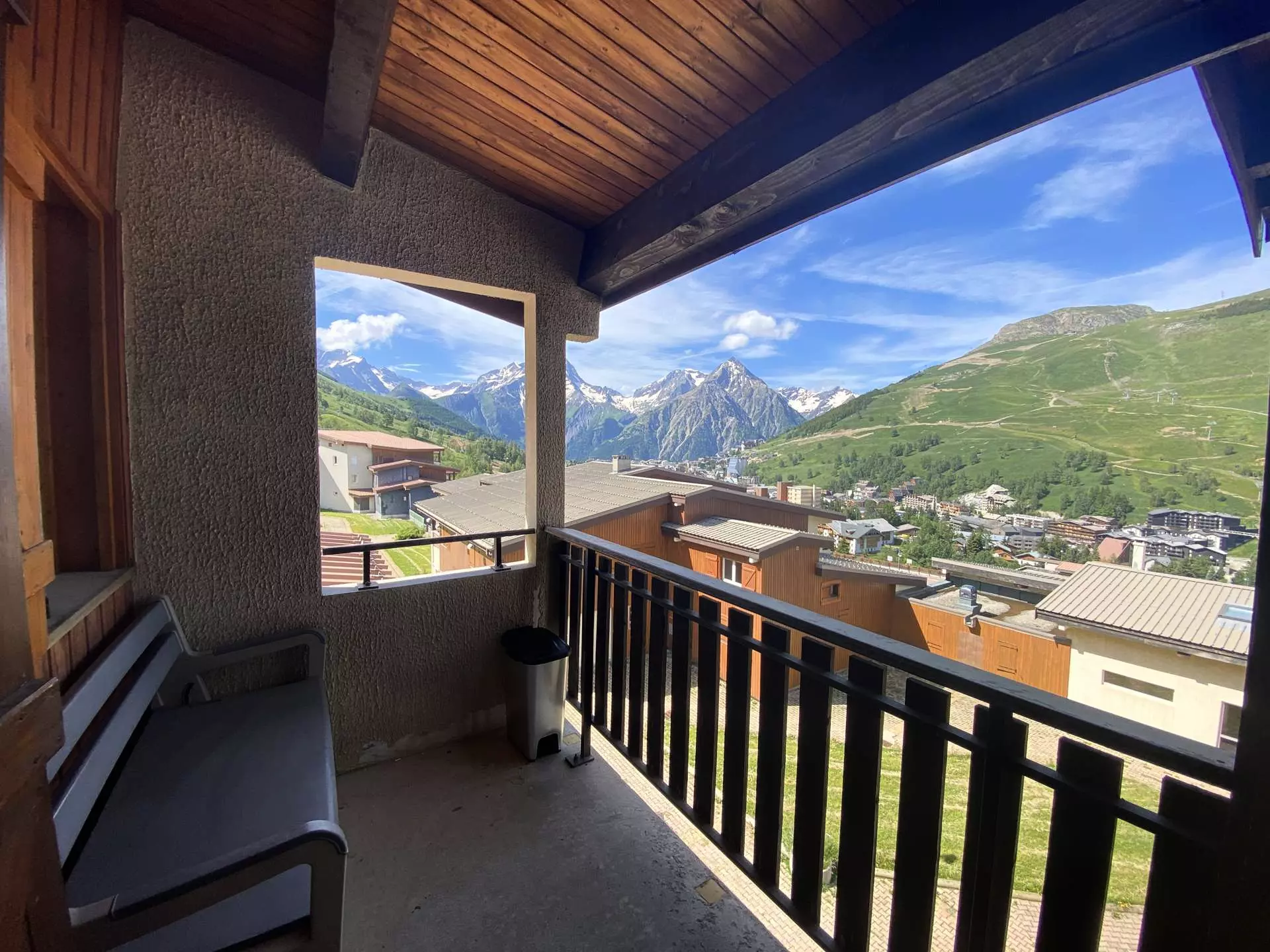 Idéal pour un séjour en famille, cet appartement spacieux et lumineux vous offre une vue dégagée sur les montagnes et la station depuis son grand balcon.