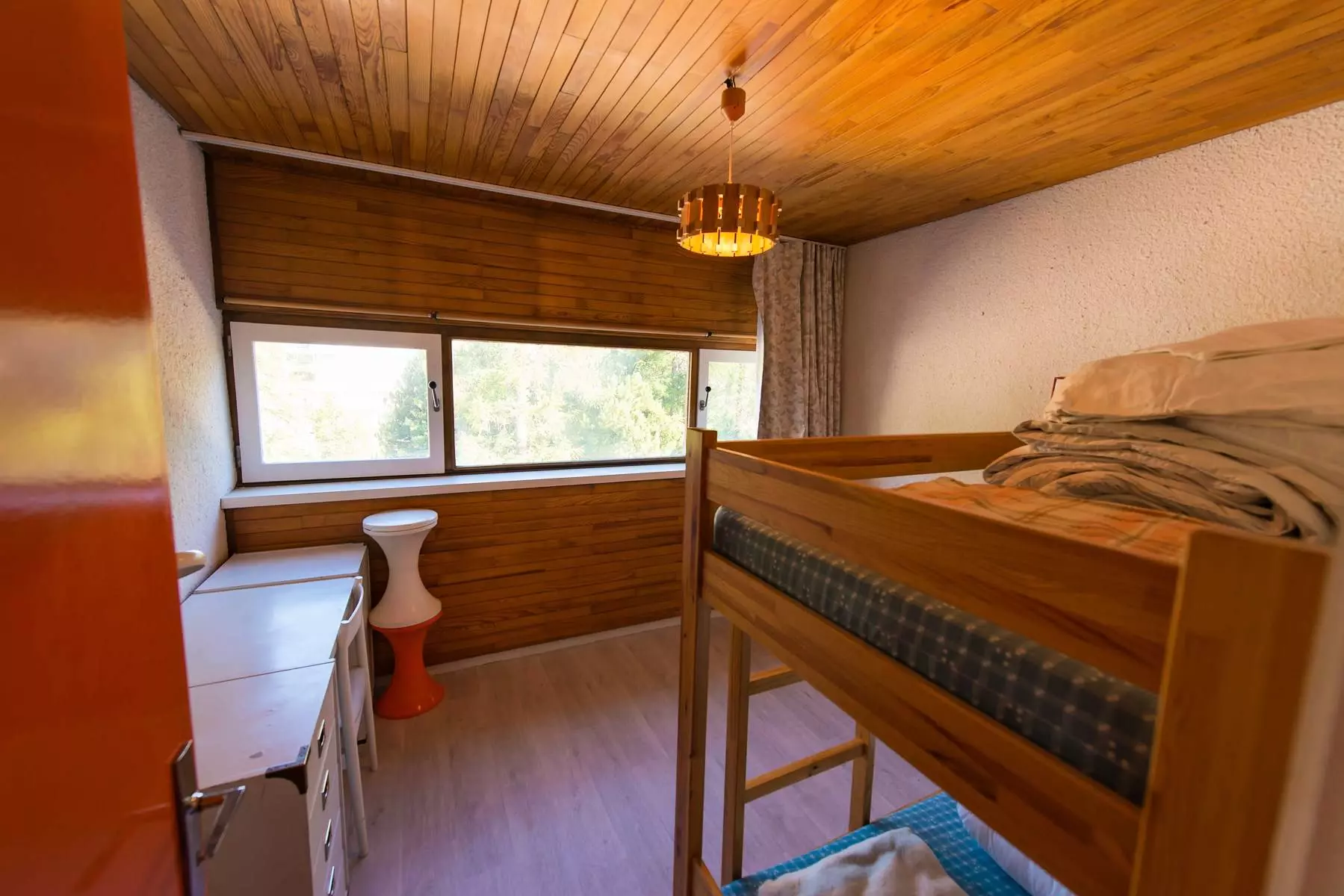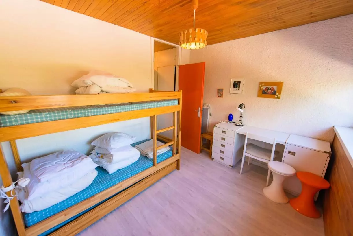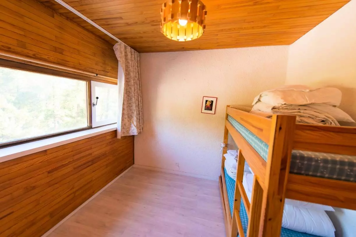 Cette location vacances se compose d'un séjour avec un canapé convertible clic clac pour deux personne et d'un coin repas. Une chambre avec deux lits superposés une place et un lit tiroir pour une personne. Un coin cuisine équipé. Une salle de bain avec baignoire et WC séparé.