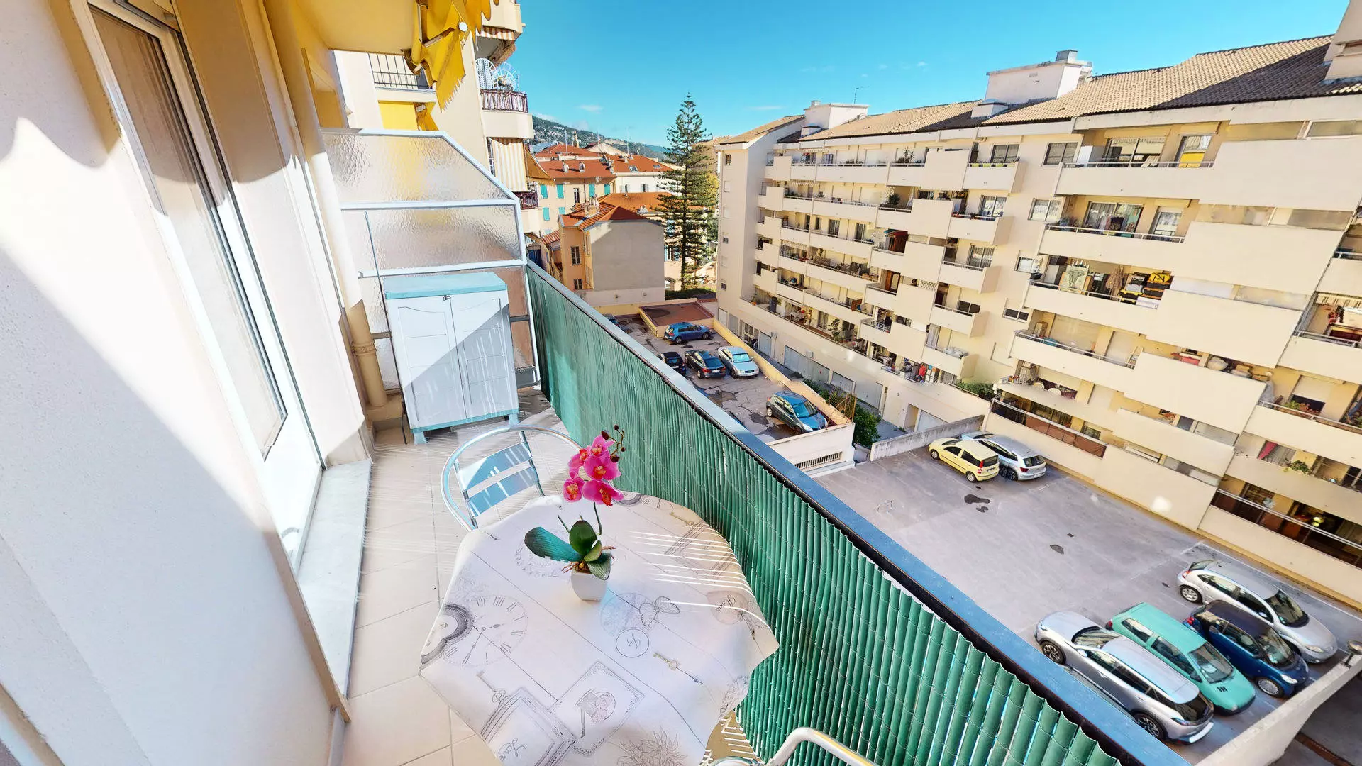 Petite résidence plein centre ville, à proximité immédiate de tous les commerces, des plages, des transports en comun et des jardin Biovès (où se déroule la fameuse fête du citron).