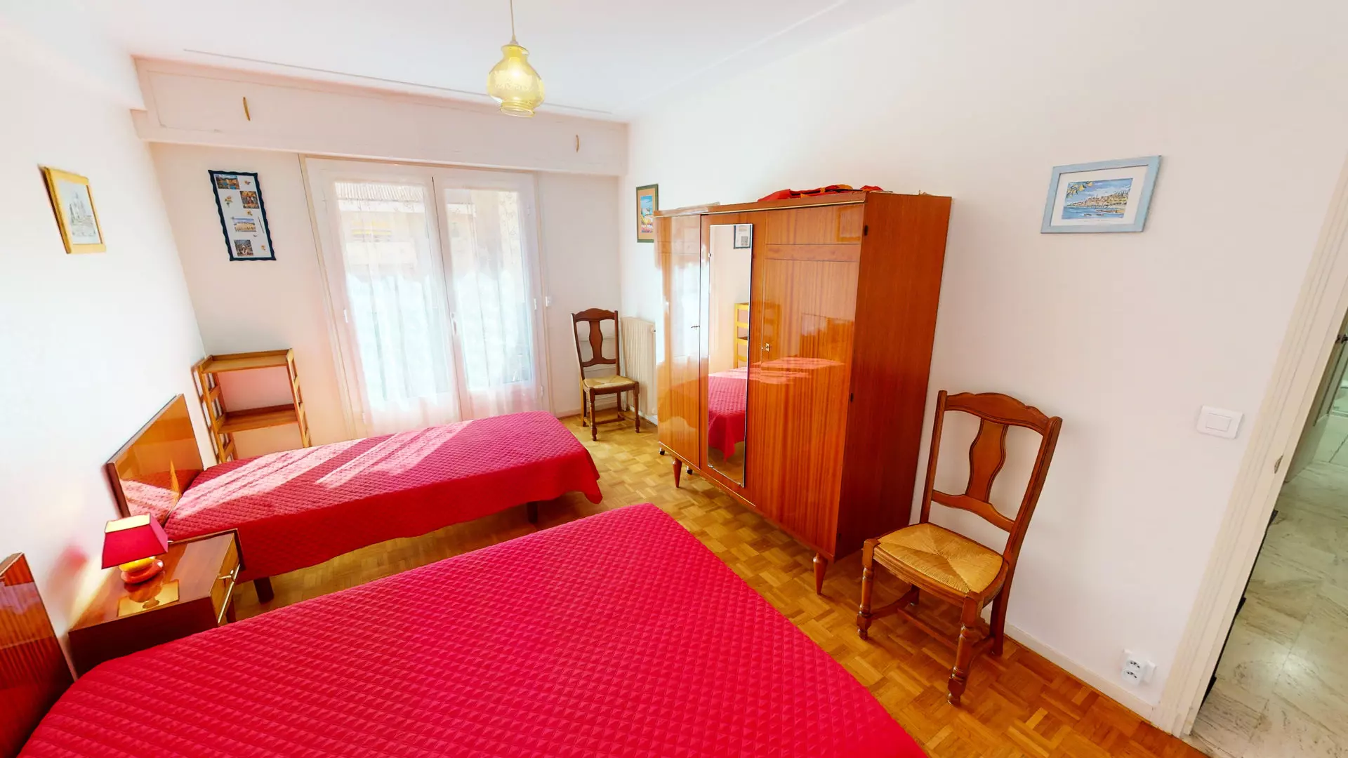 Chambre avec lit 140x190cm et lit 70x140cm et armoire.