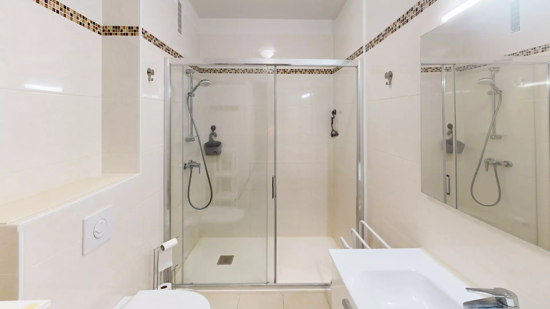 Salle d'eau avec WC, douche à l'italienne et lavabo.