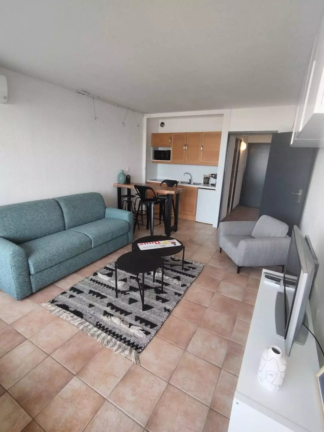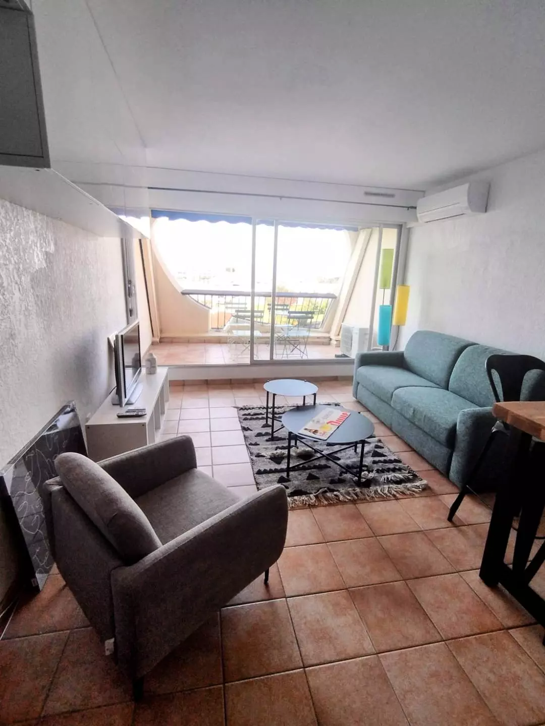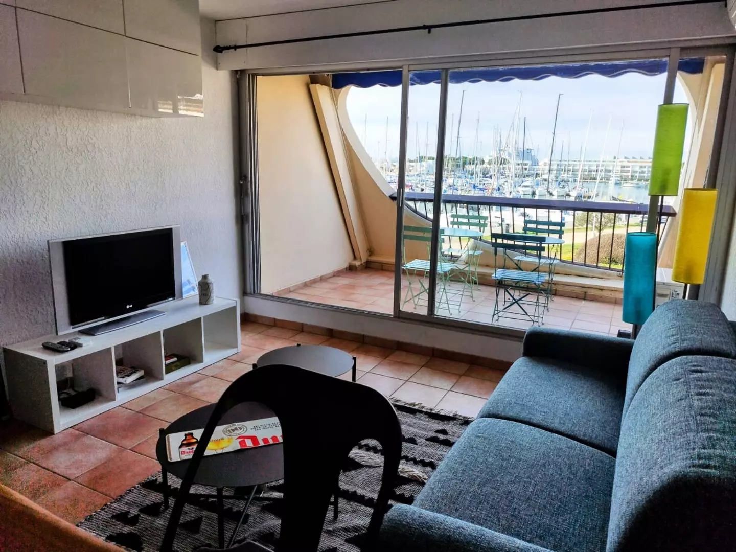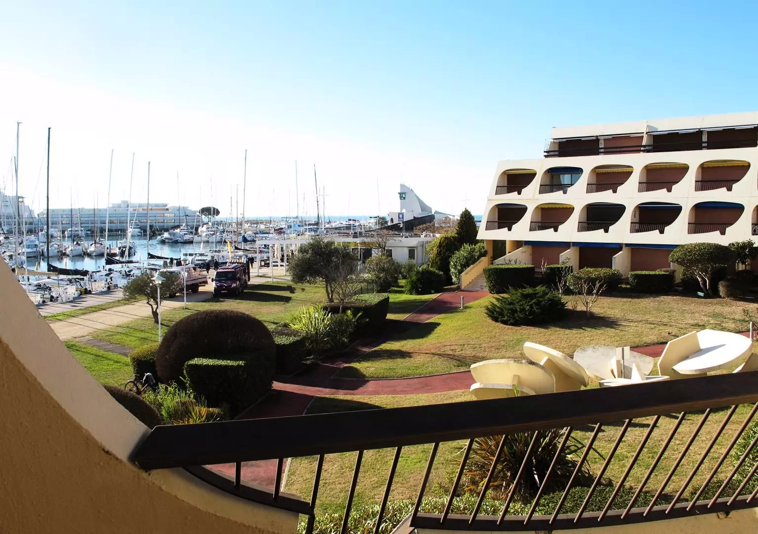 PLAGE NORD - Résidence ESCALE PORT, sécurisée avec piscine et parking commun. Joli studio cabine lumineux, au 1er étage donnant sur une terrasse avec belle vue sur le Port et les jardin. Un canapé convertible en 140 cm et un lit pliant d'appoint 1 couchage, TV et clim. Cuisine équipée (Micro-ondes, frigo top et plaque de cuisson), une cabine et salle d'eau avec WC. Plage à 100m, proximité commerces, restaurants et transports en commun. Animaux non admis. Meublé et équipé pour 3 personnes.