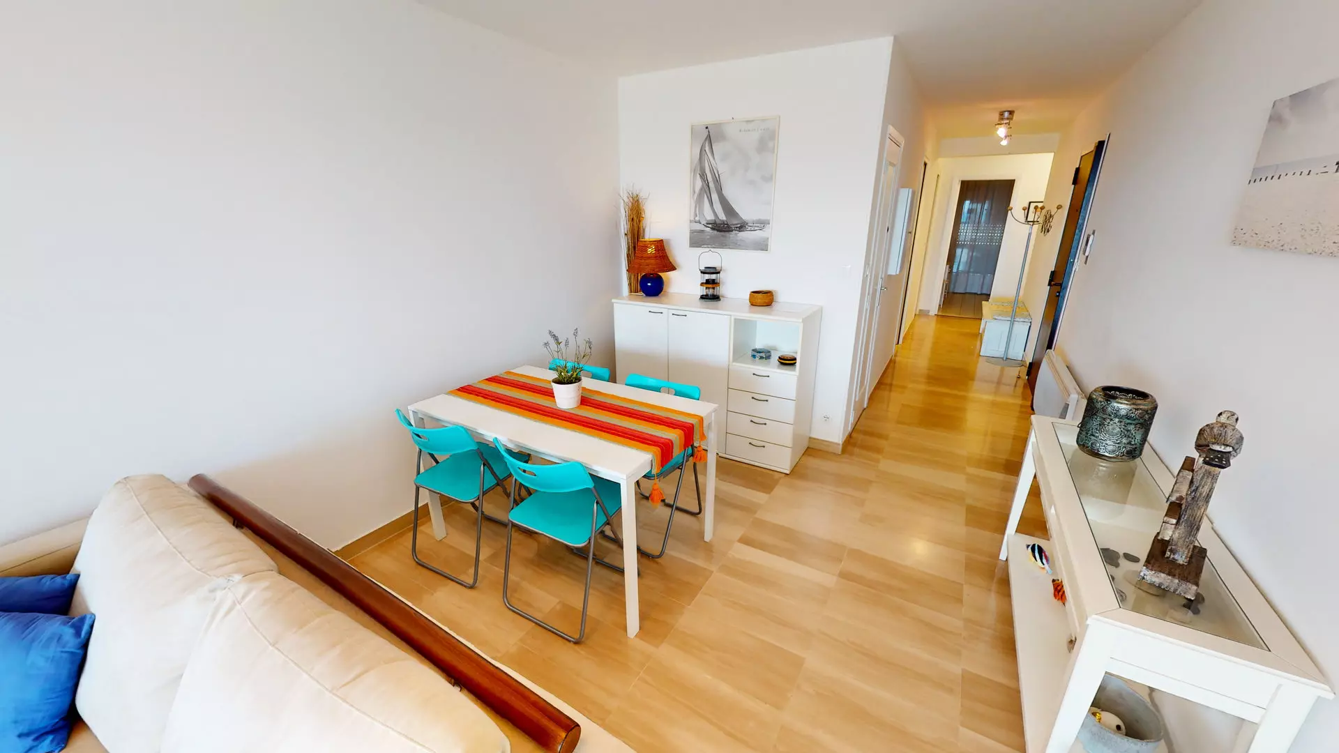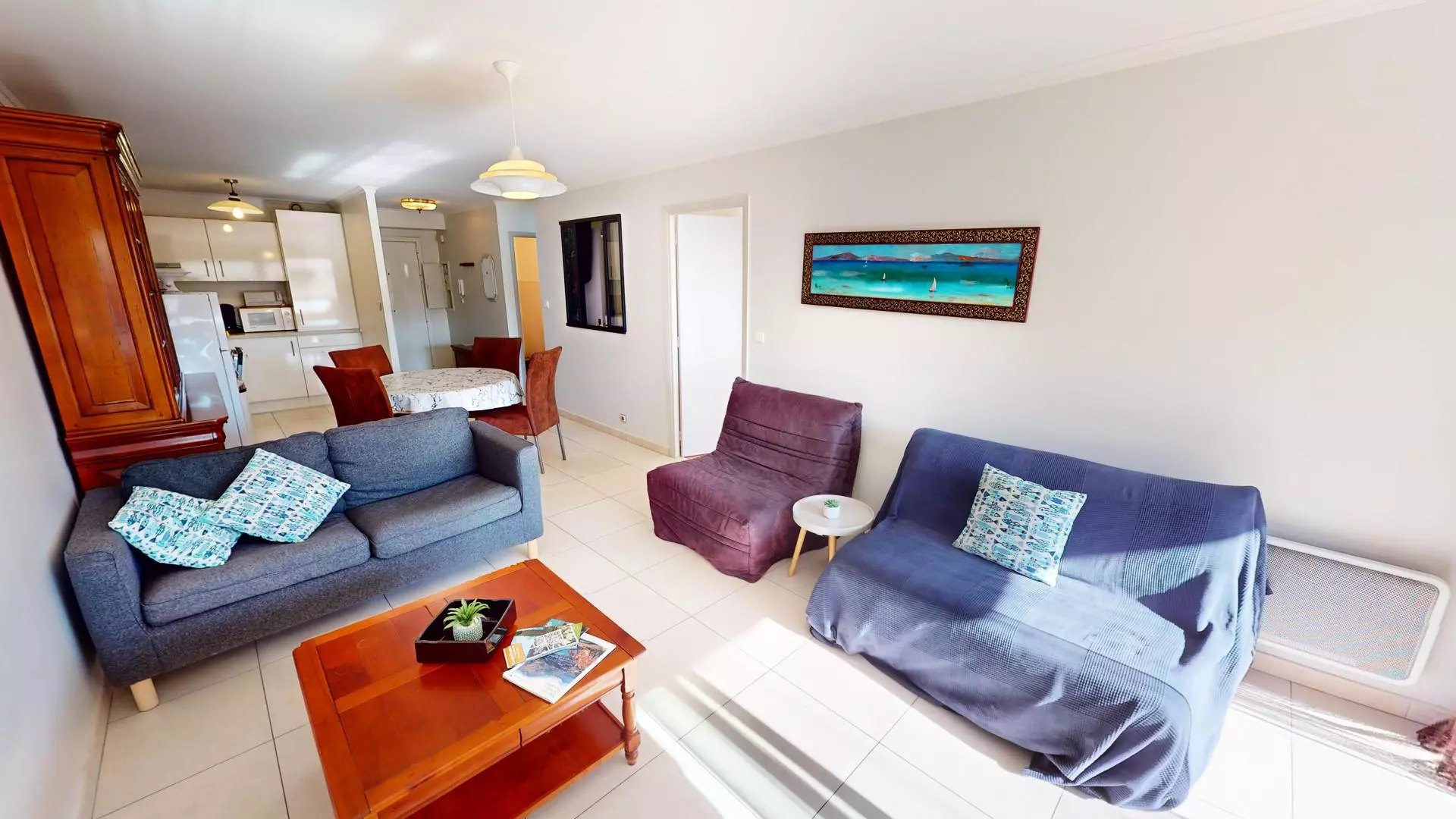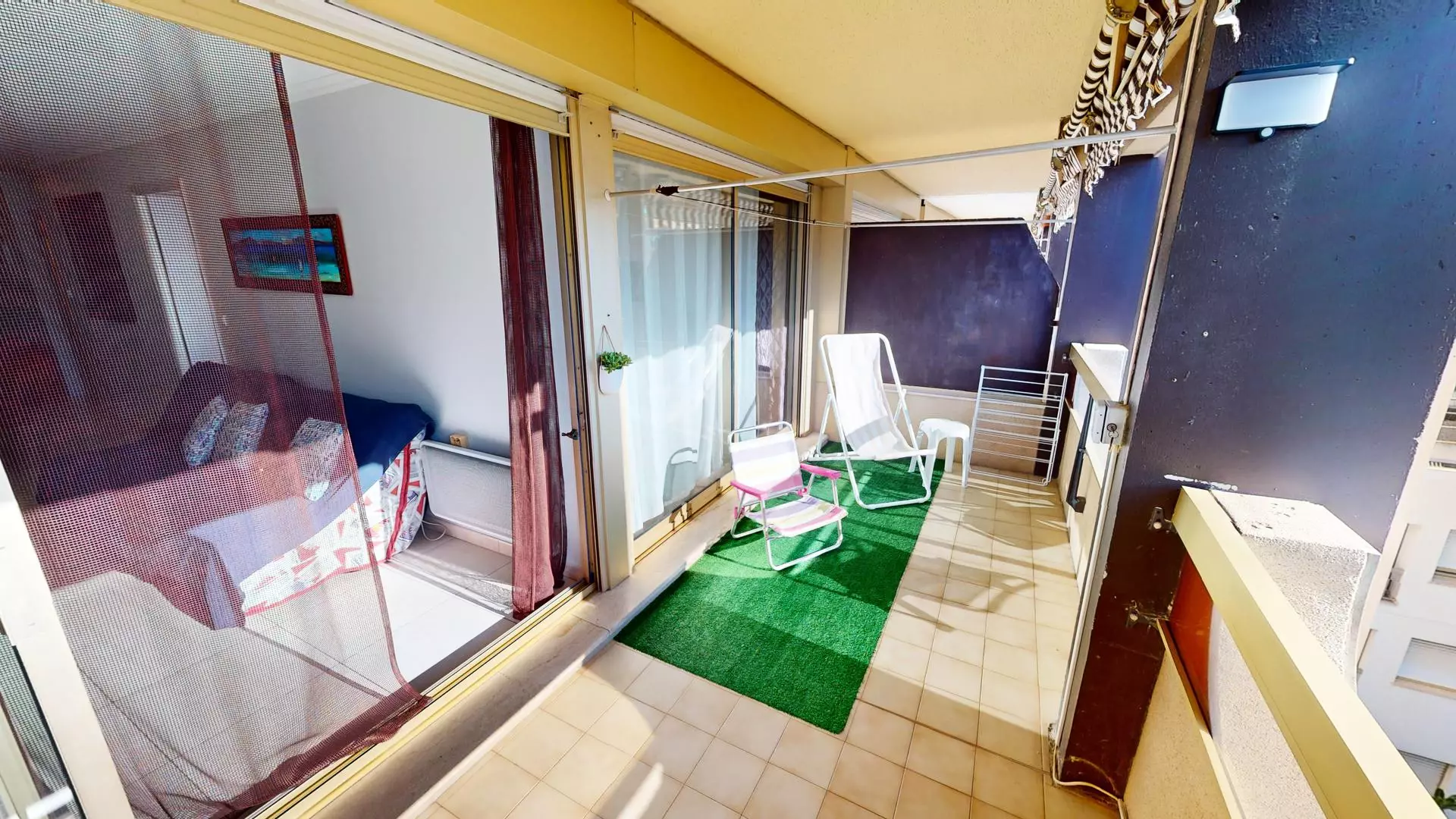 L'agence GIOTTO vous propose cet agréable 2P avec coin nuit séparé au calme, parking privé et terrasse au 5ème étage (avec ascenseur) d'une résidence de standing avec gardien, parc et piscine proche mer et commodités.