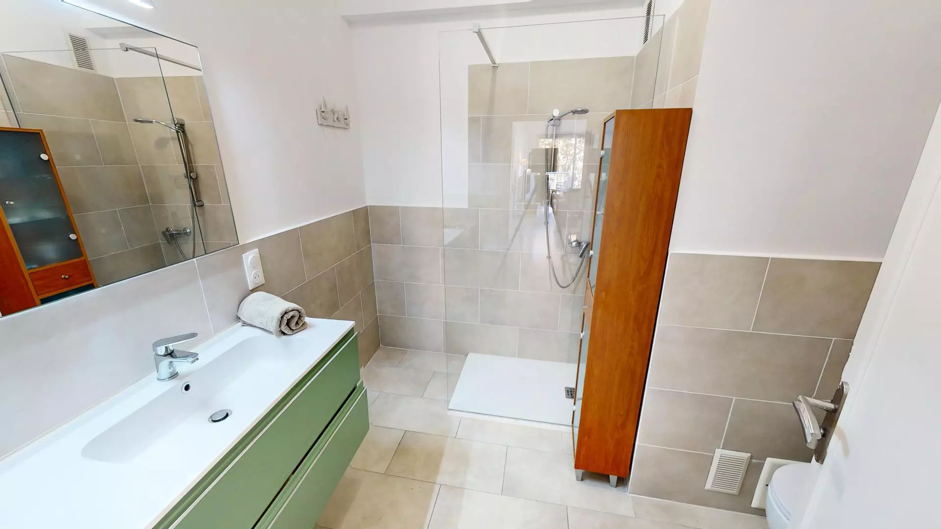 Salle d'eau avec douche à l'italienne, WC et bidet.