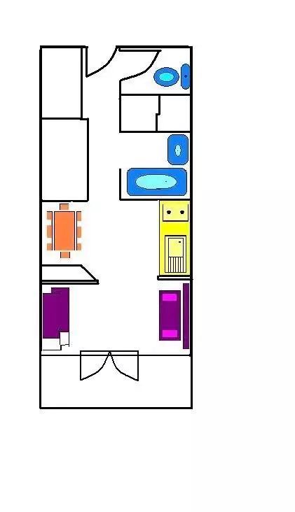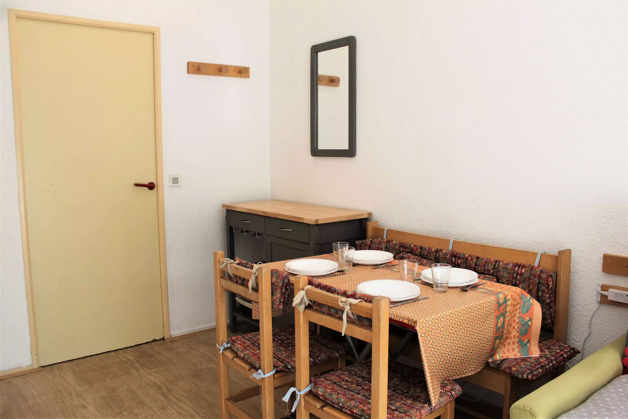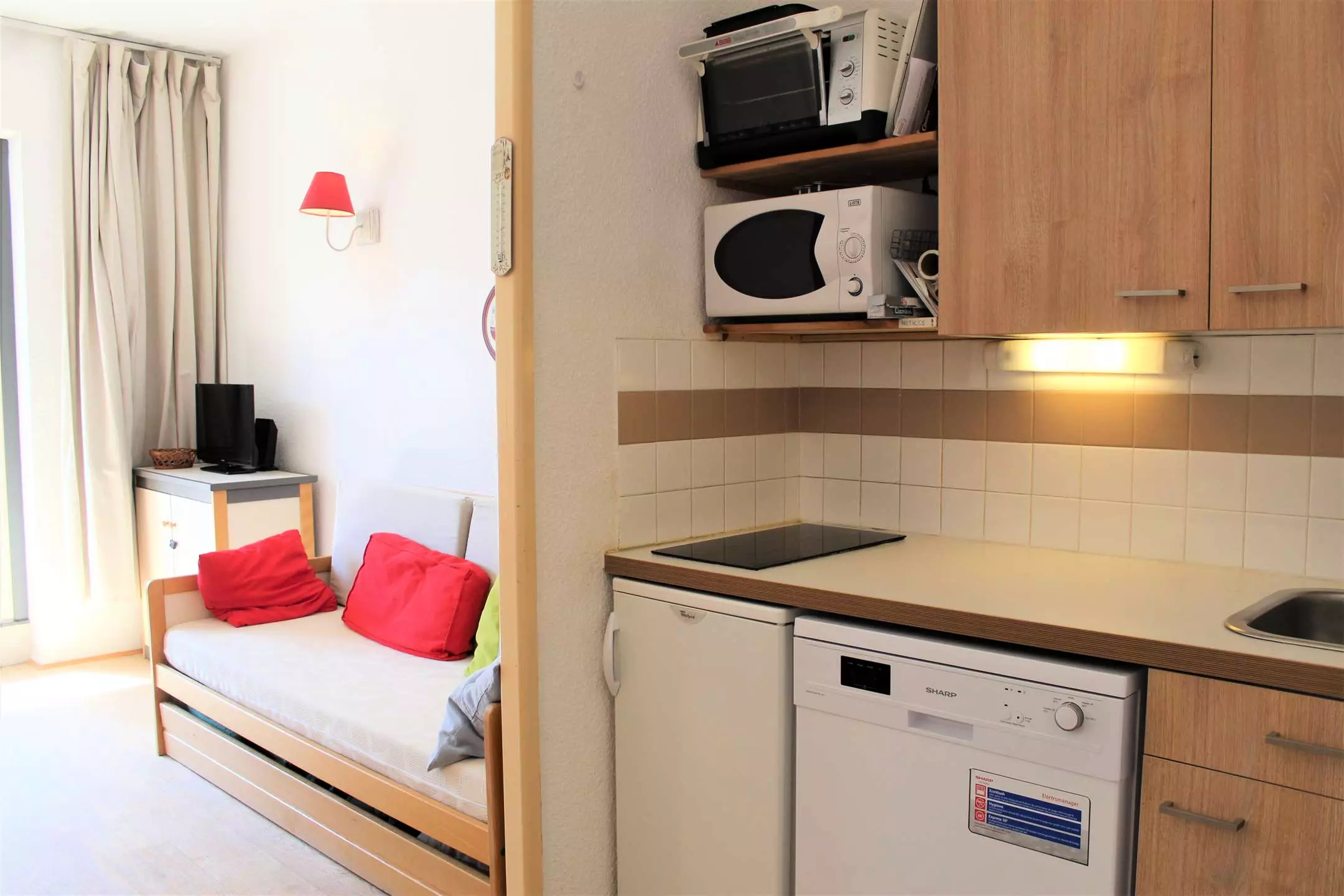 Cette location vacances comprend un séjour avec de deux lits banquettes une place et un coin montagne avec deux lits superposés. D'une salle de bain avec baignoire et de WC séparés. Un coin cuisine équipé et d'un balcon.