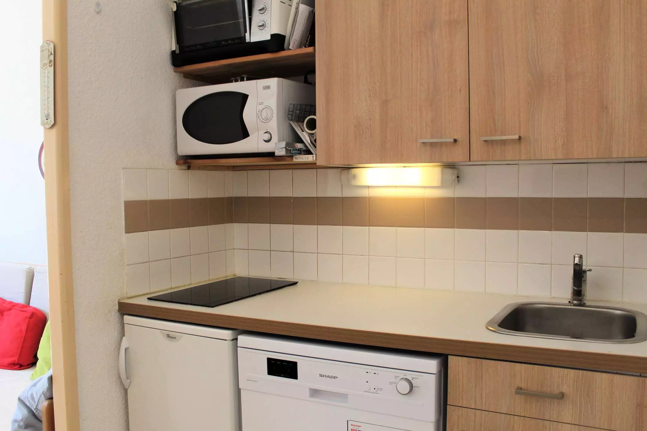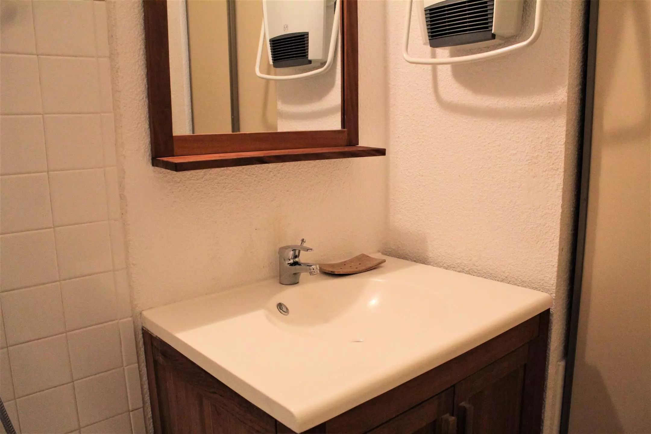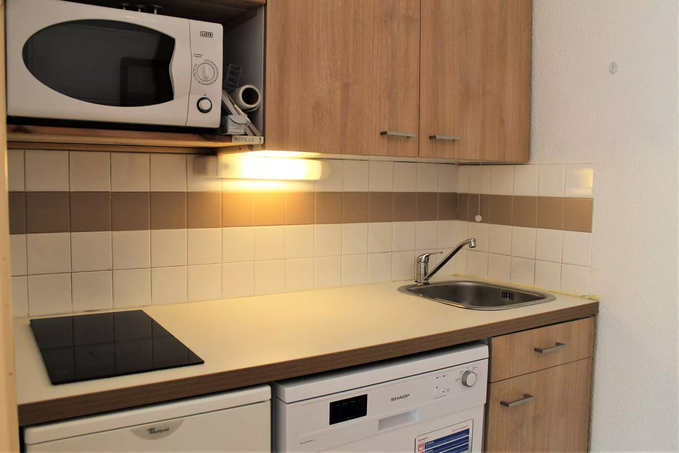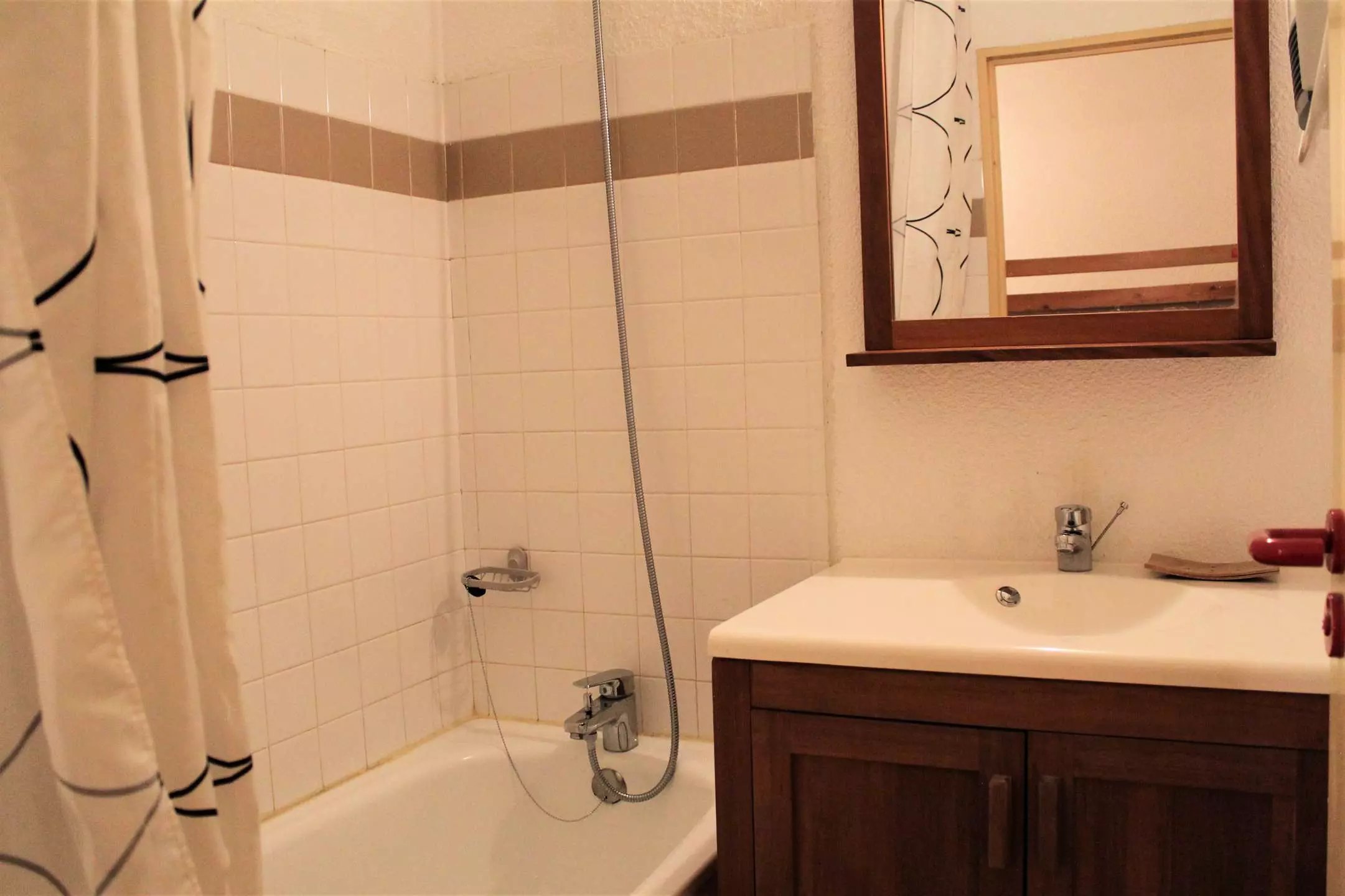 Cet appartement à la montagne se compose d'un coin cuisine équipé ouvert sur un séjour disposant d'un canapé convertible pour deux personnes. Il dispose également d'un coin nuit avec deux lits superposés une place, d'une salle de bains avec baignoire et d'un WC indépendant.