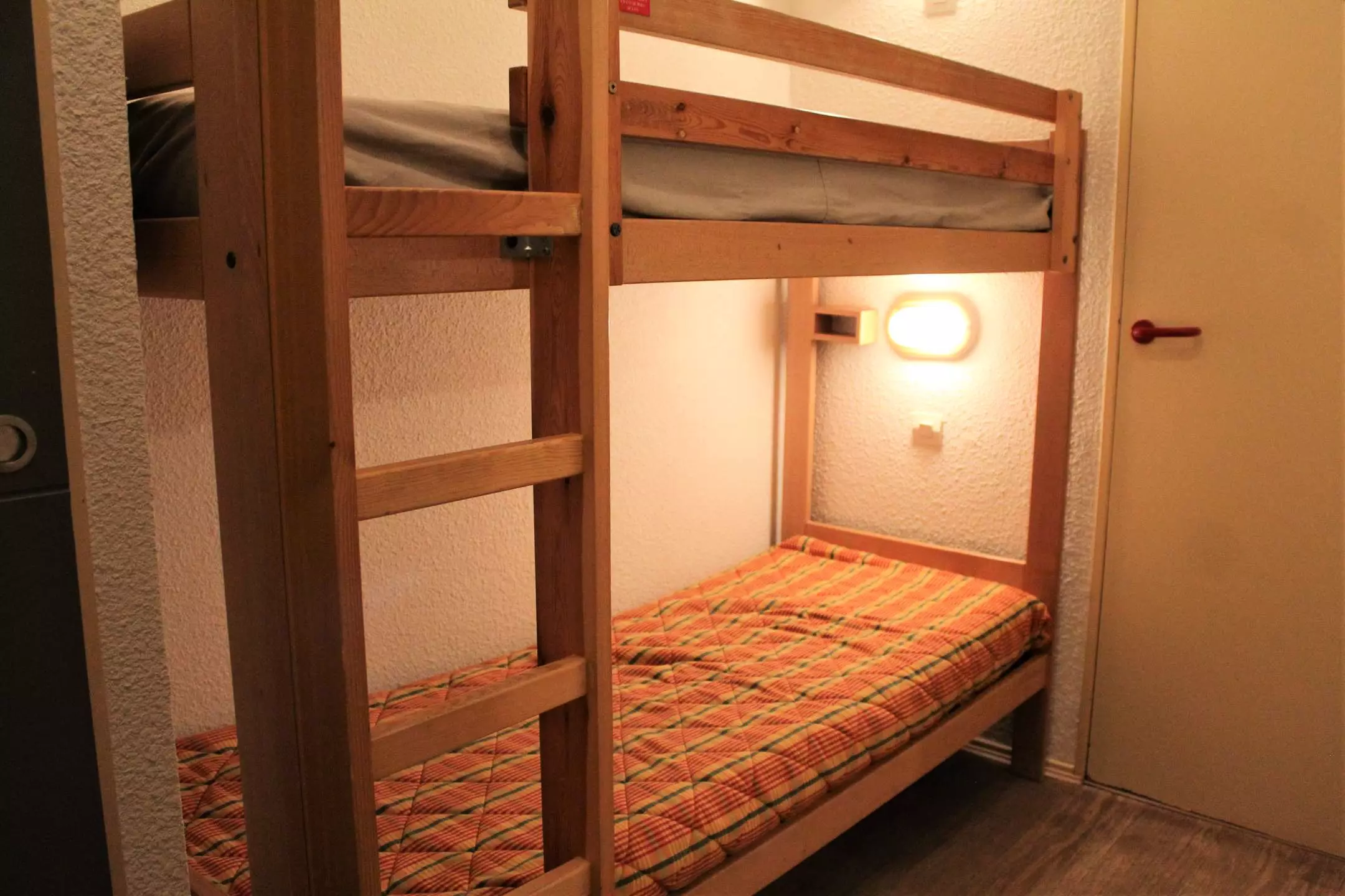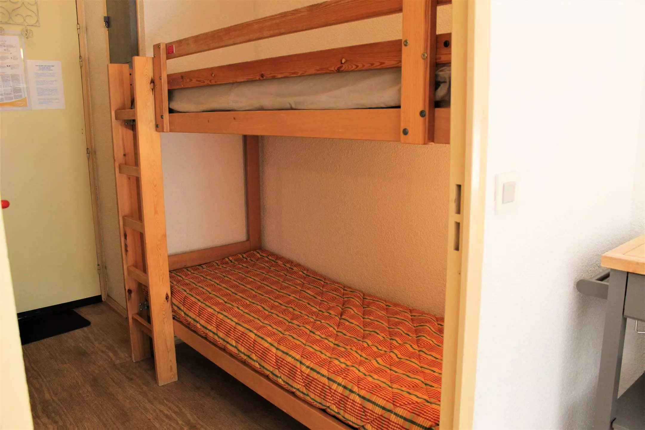 Cette location en station de ski se compose d'un coin cuisine équipé ouvert sur un séjour comprenant un coin repas, deux lits gigognes (2X90). Vous disposez d'une première chambre avec un lit double, d'une seconde chambre avec deux lits simples et d'un coin nuit avec deux lits superposés une place. L'appartement dispose d'une salle de bains avec baignoire et d'un WC indépendant.