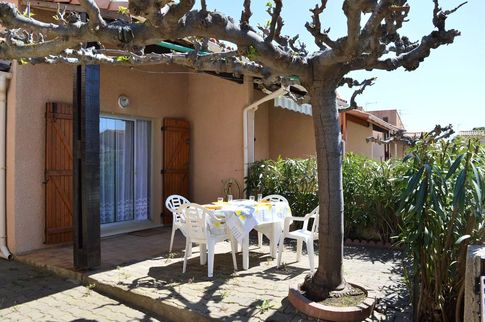 Les avantages de cette location à la plage : terrasse orientée Sud avec salon de jardin et barbecue, parking sur la terrasse.