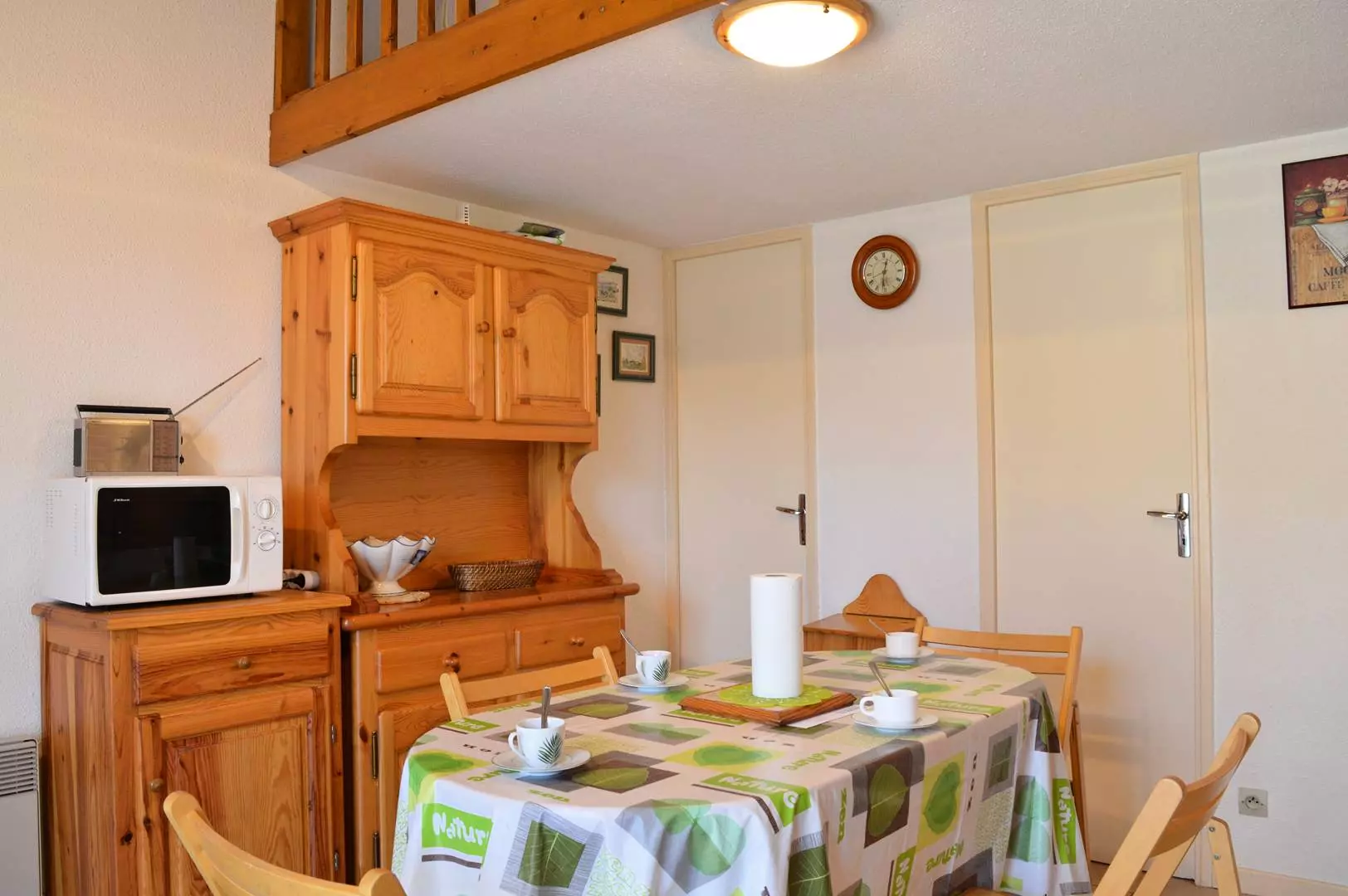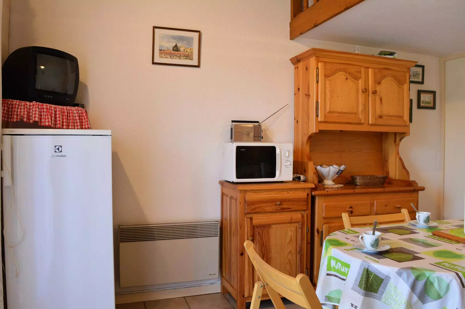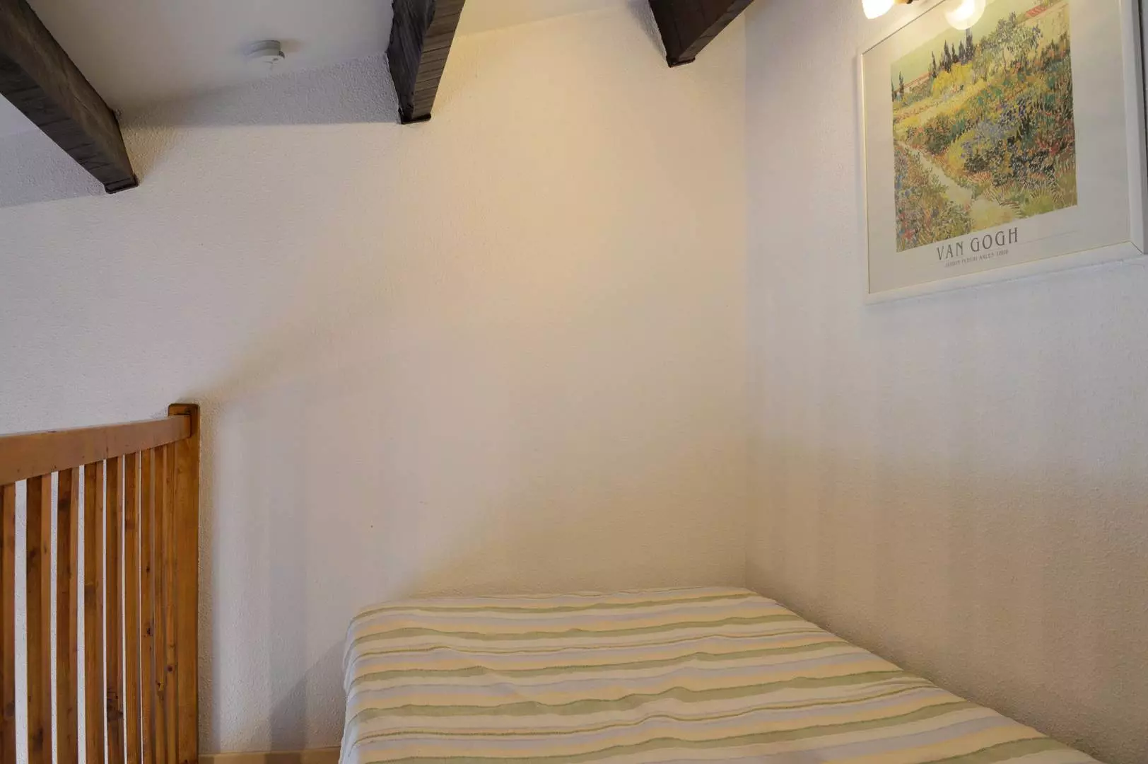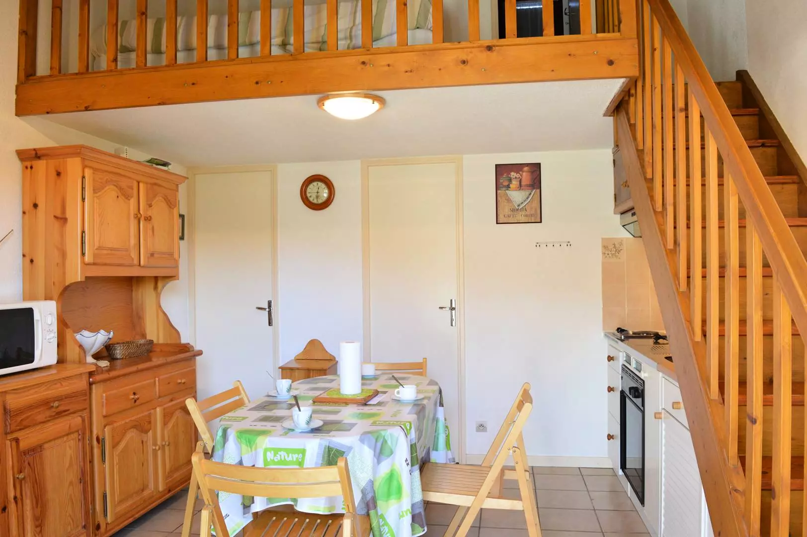 Cette location de vacances en famille dispose d'un séjour avec télévision (sous réserve d'une bonne réception) , d'un coin cuisine équipé, d'une chambre avec un lit une personne (120*190), et d'une salle d'eau avec WC. A l'étage, se trouve une mezzanine avec un lit une personne (120*190) et une chambre avec un lit deux personnes.