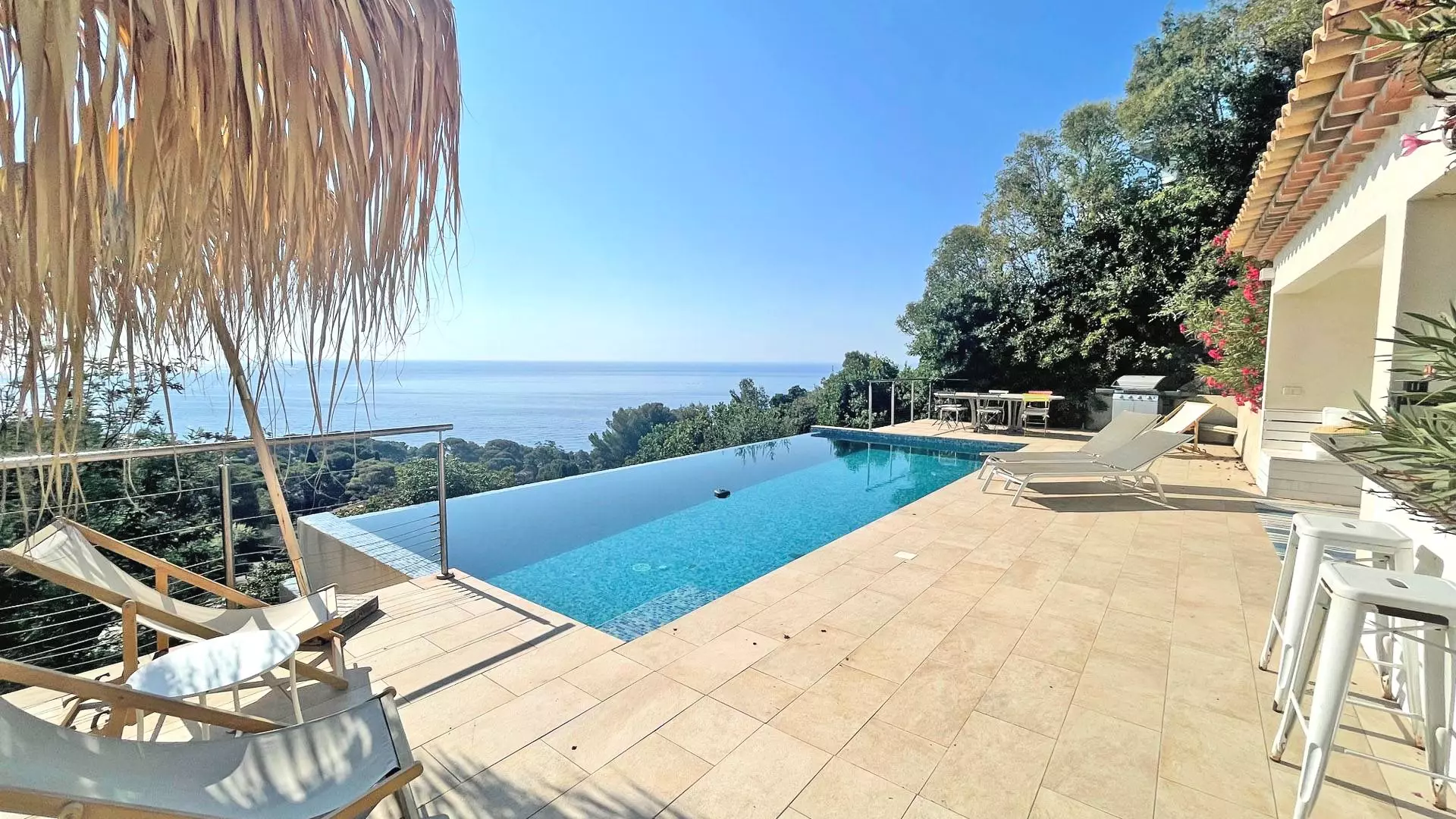 Spacieuse villa contemporaine composée de 5 chambres et d'une belle piscine à débordement, avec vue mer imprenable sur la pointe du Golfe de St Tropez. Idéalement placée proche de la plage et du centre-ville à pied, elle vous séduira par ses volumes et ses prestations de qualité.