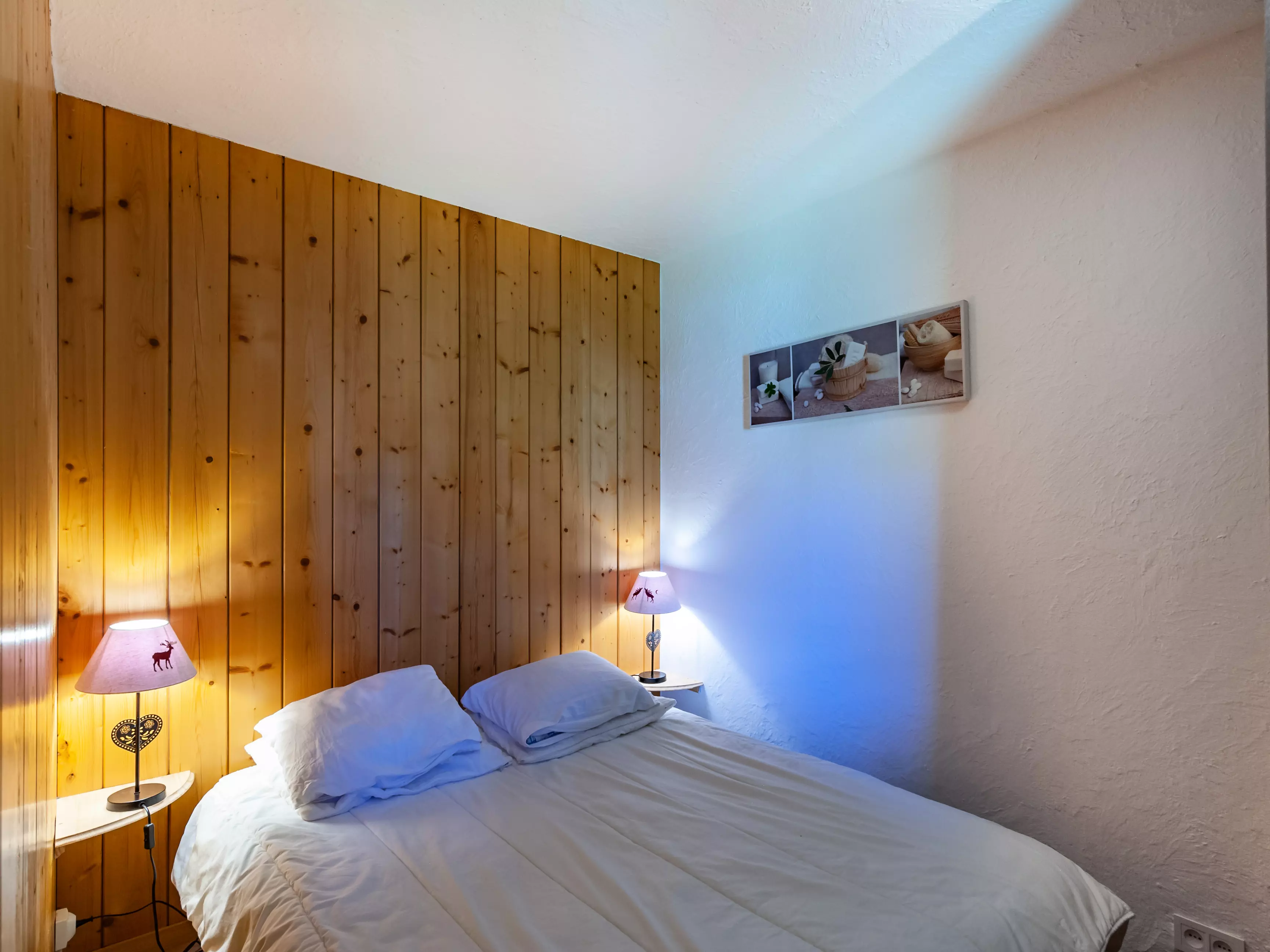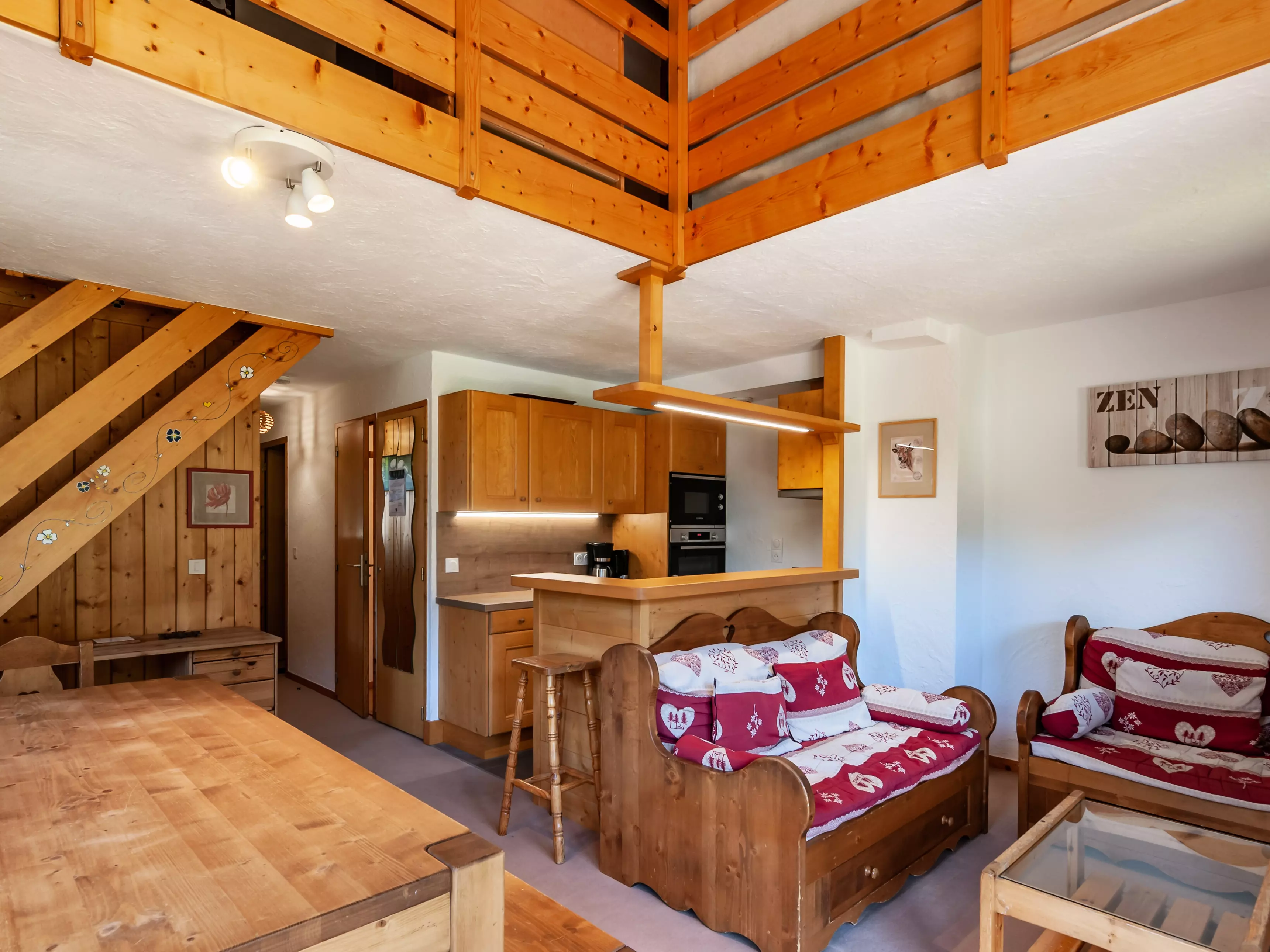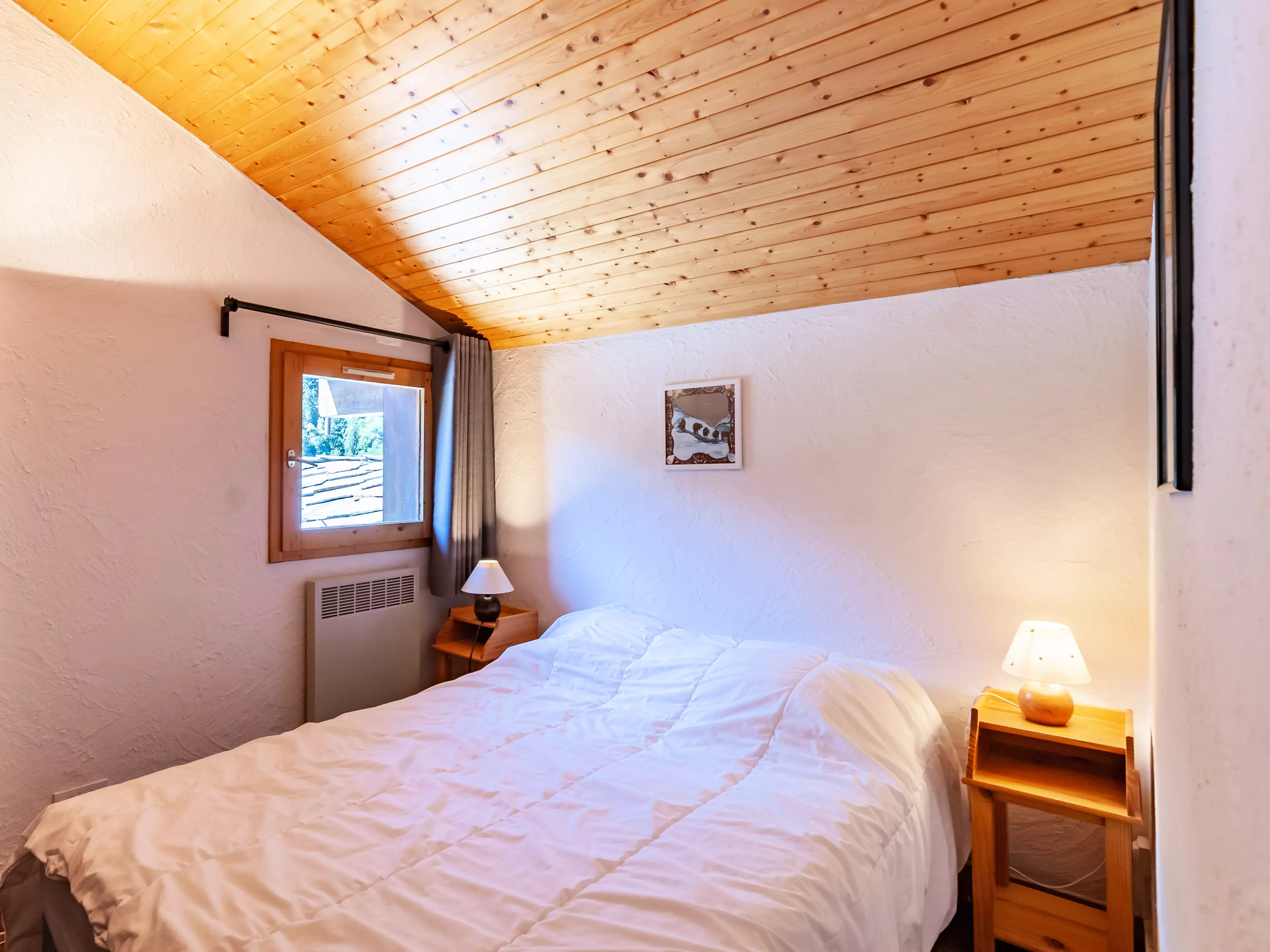 Mezzanine avec 1 lit simple et 1 lit tiroir (80x190). Chambre contenant un lit double (140x190) Chambre- cabine avec un lit simple et un lit mezzanine (80x190).