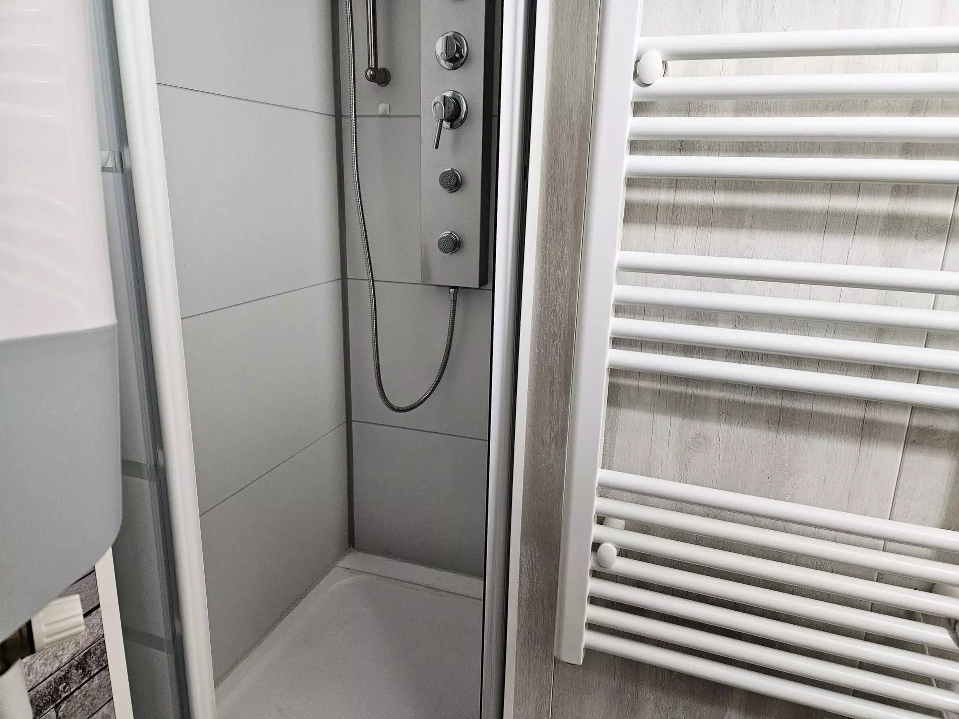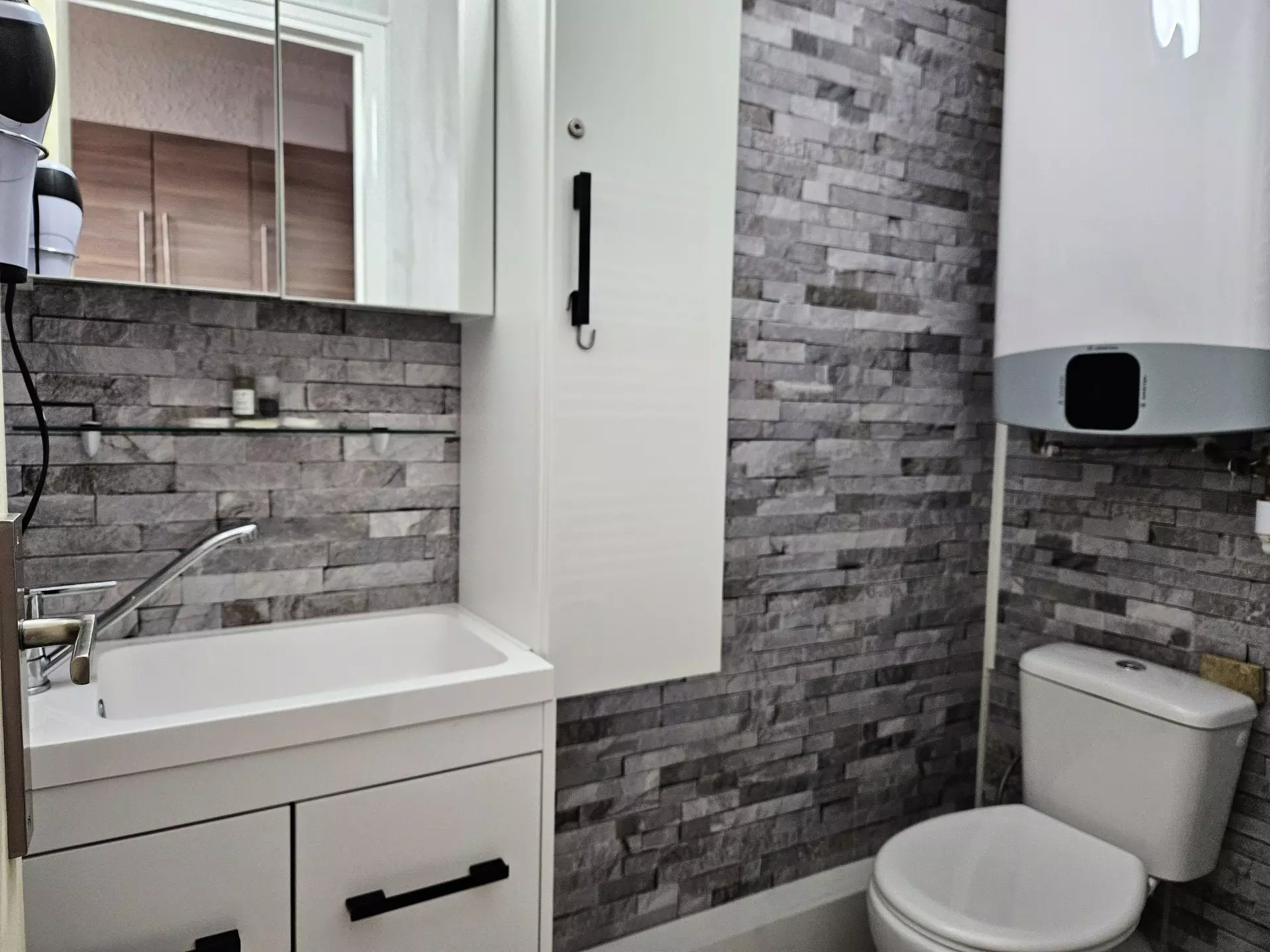 * Séjour : canapé, lit rabatable double, TV, coin repas, accès balcon ;