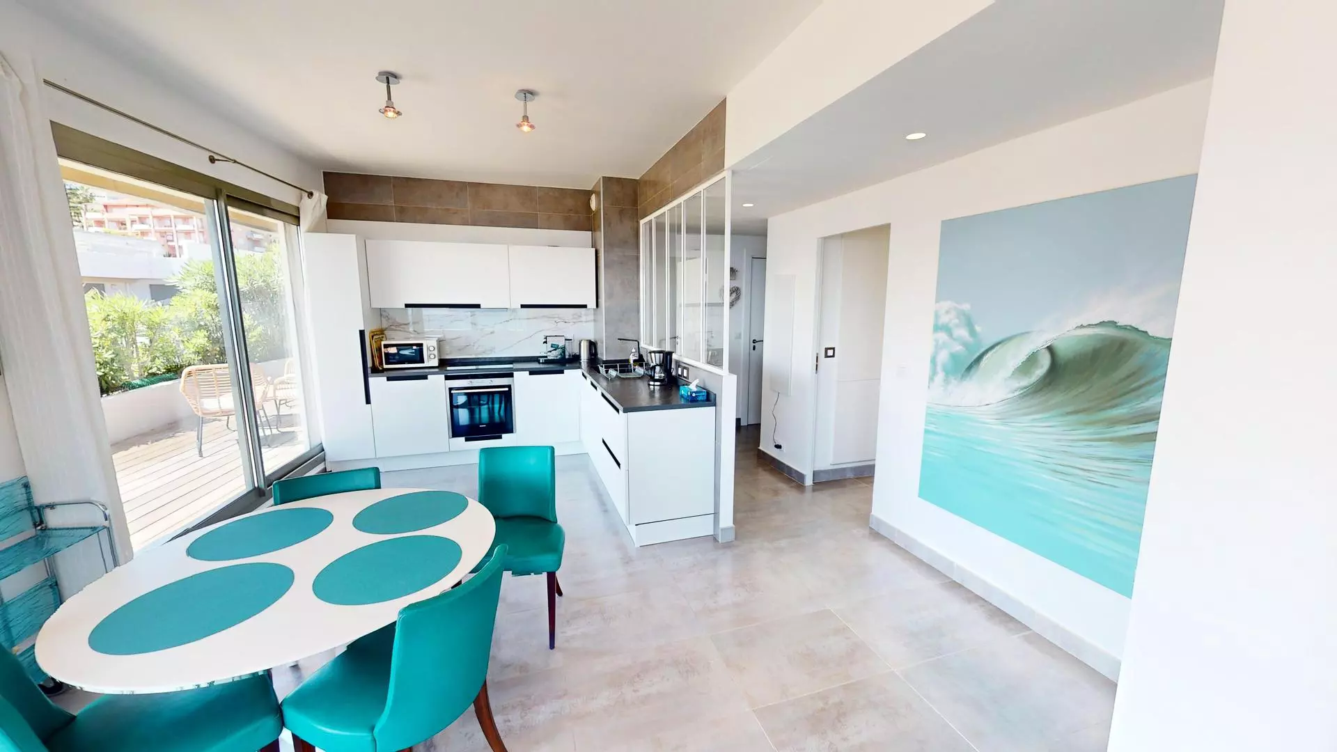 L'agence GIOTTO vous propose ce magnifique et grand 3pièces climatisé en dernier étage avec immense terrasse de 46m² surmplombant la mer, jolie vue sur la vieille ville de Menton et parking privé en sous-sol.
