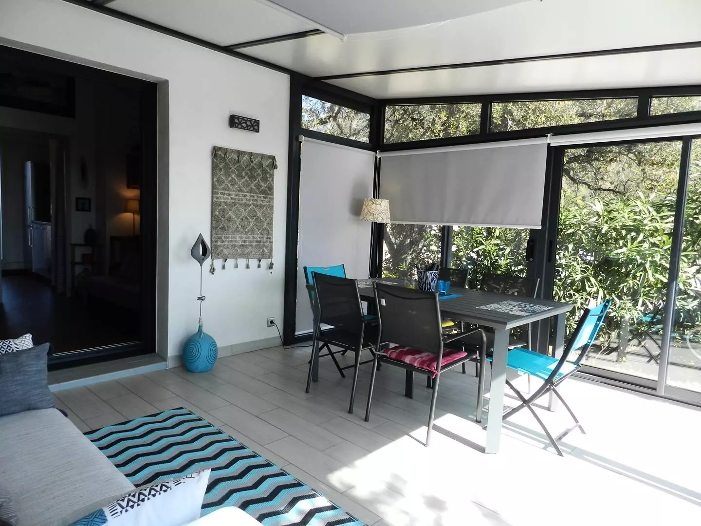 L'appartement en rez de jardin avec terrasse vue mer et vérandas est composé d'un séjour avec canapé convertible pour 2 personnes,une cuisine ouvrant sur une seconde terrasse, une salle de bain et un wc indépendant.Vous trouverez également un couchage double dans la vérandas.