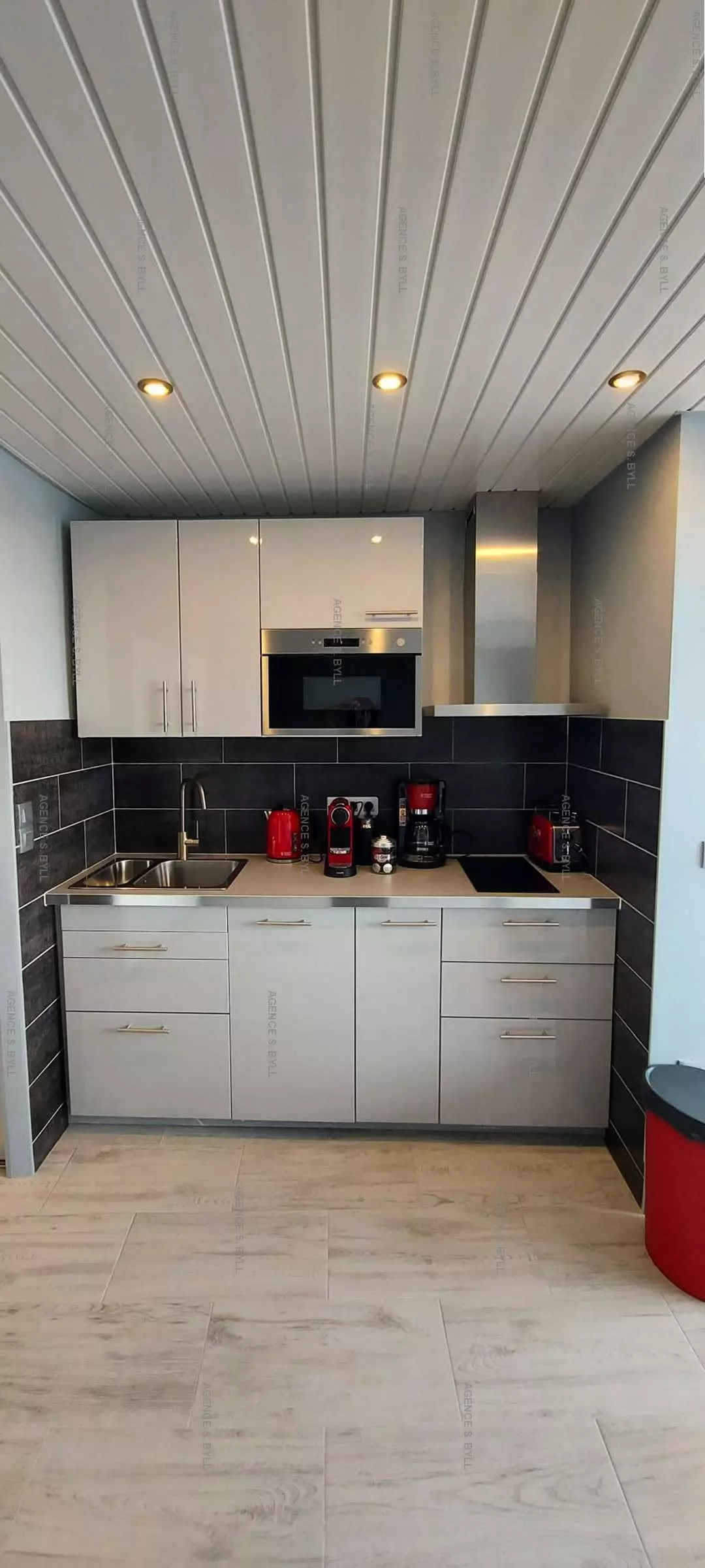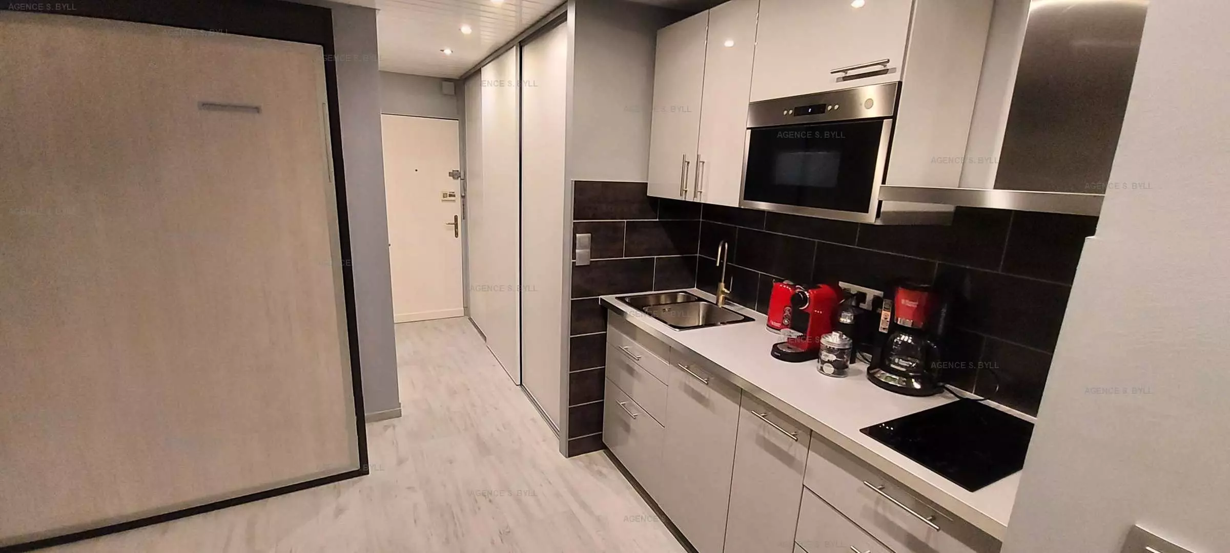 Situé au 3ème étage avec ascenseur, côté intérieur, Grand studio spacieux et tout équipé. Récemment rénové, il dispose d'un lit rabattable en 140 dans le séjour, le coin salon est meublé avec un canapé convertible type "Rapido" en 140, un Téléviseur écran plat. Dans l'entrée se trouvent la salle d'eau avec grande douche et lavabo ainsi qu'un lave-linge et les WC sont séparés. Un grand placard dans le couloir de l'entrée en plus de nombreux rangement cache aspirateur, coffre fort et frigo avec partie congélation.