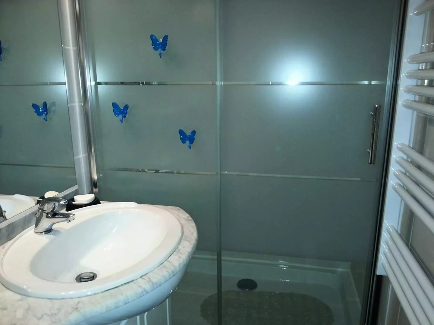 Cabine avec 2 lits superposés face à la salle d'eau , WC séparé