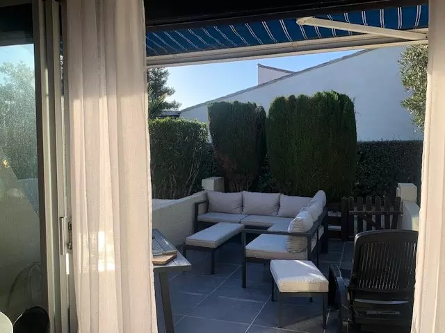 Très jolie villa type T2 située dans un coin calme de la résidence. Chambre et mezzanine avec couchages lits en 140, 2 fauteuils rotin dans le séjour. La terrasse est couverte sur une partie seulement, elle est orientée sud-est, donc ensoleillée du matin au milieu de l'après-midi. Très joliment décorée. Lave-linge.