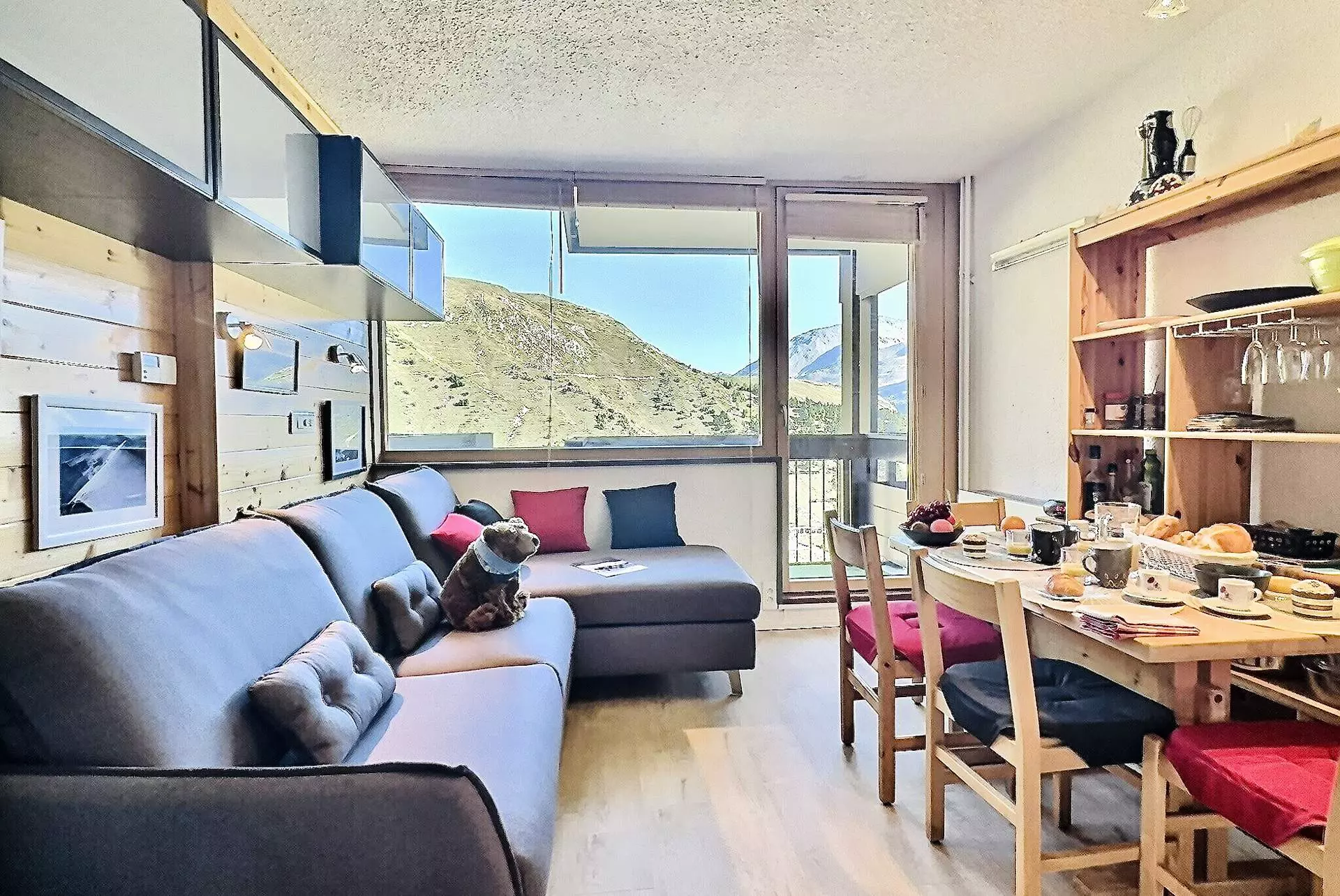 Son balcon exposé Nord Est vous permet de profiter d'une jolie vue sur les montagnes, la forêt, la vallée et le lac.