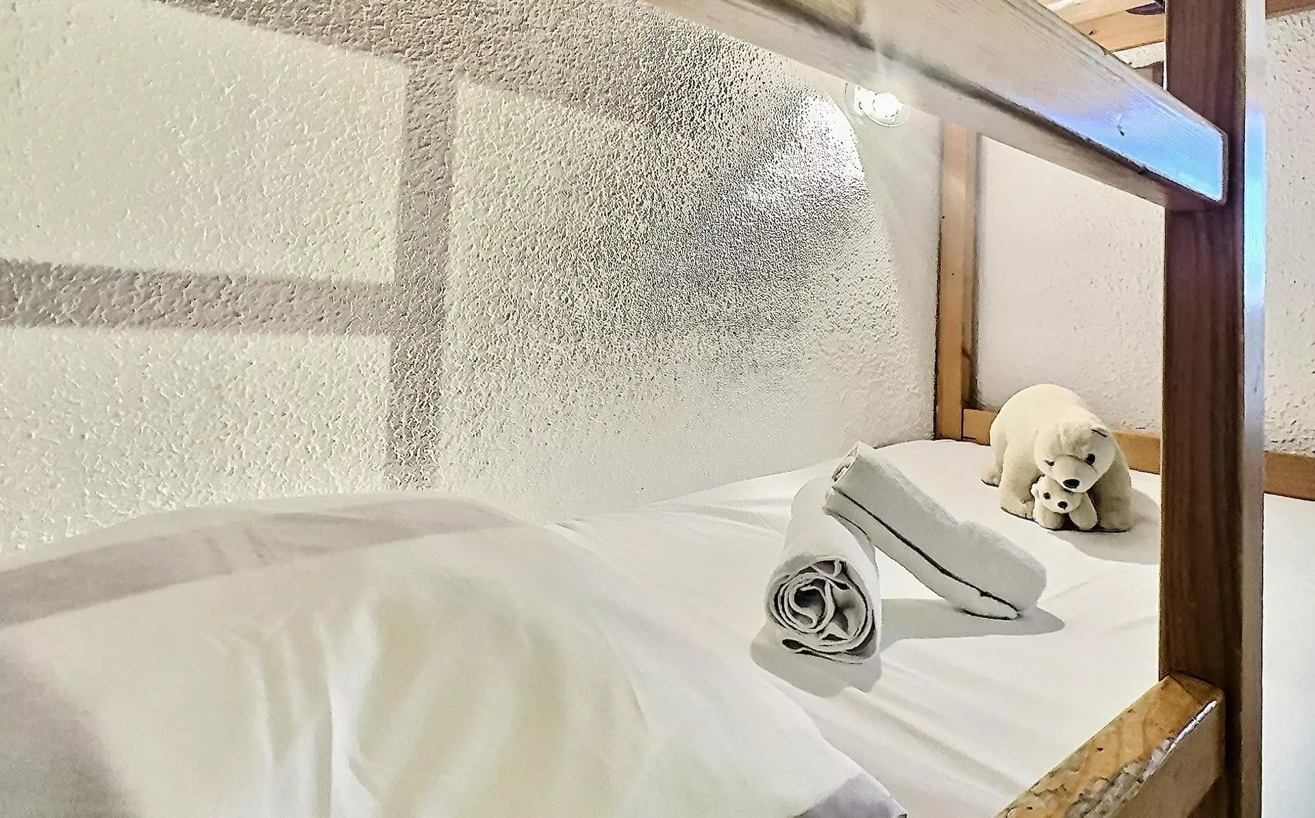 Un espace couchage est aménagé dans l'entrée avec 1 ensemble de lits superposés.