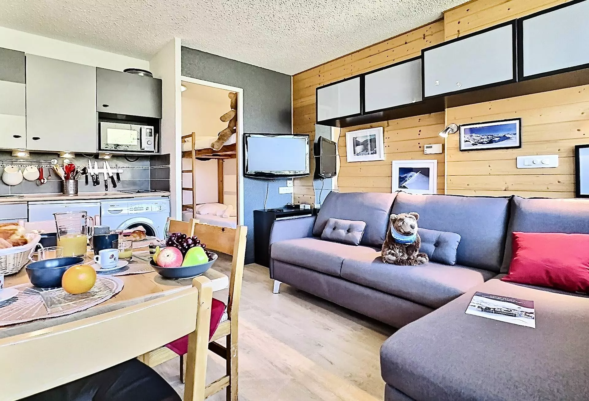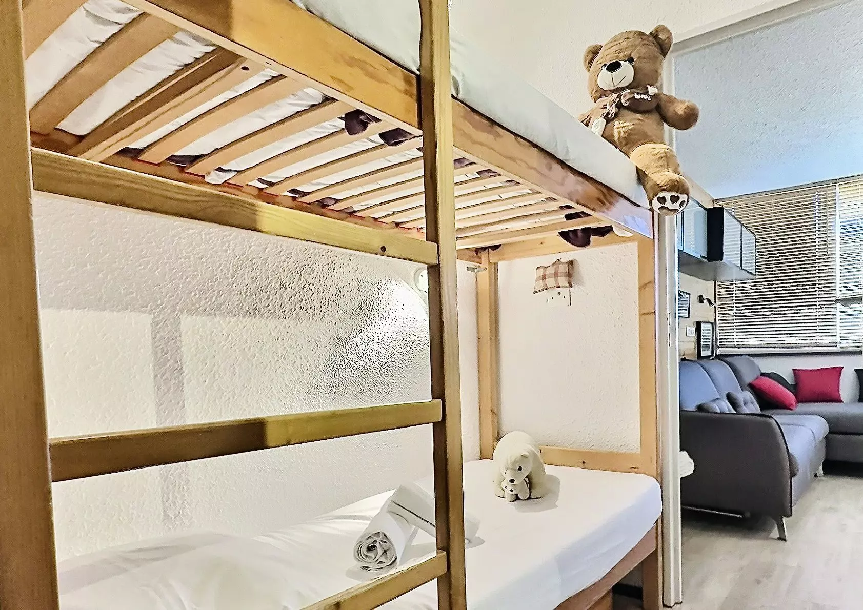 Dans le séjour se trouve 1 ensemble de lits gigognes pour 2 personnes.