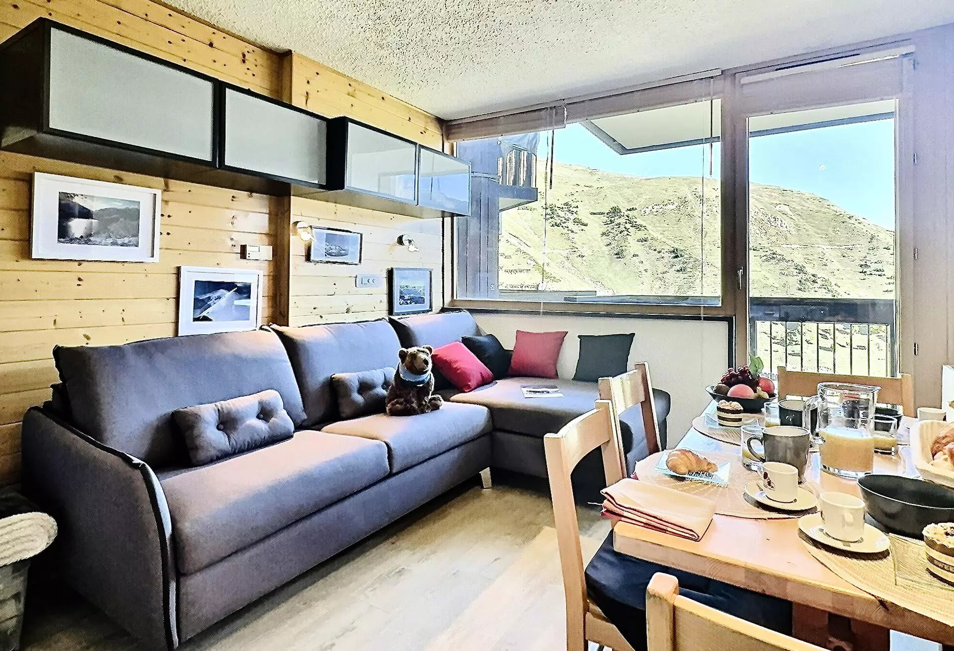 Pour vos vacances au ski à Tignes, réservez ce studio qui bénéficie d'un balcon exposé Nord-Est avec vue sur la montagne et le lac du Chevril.