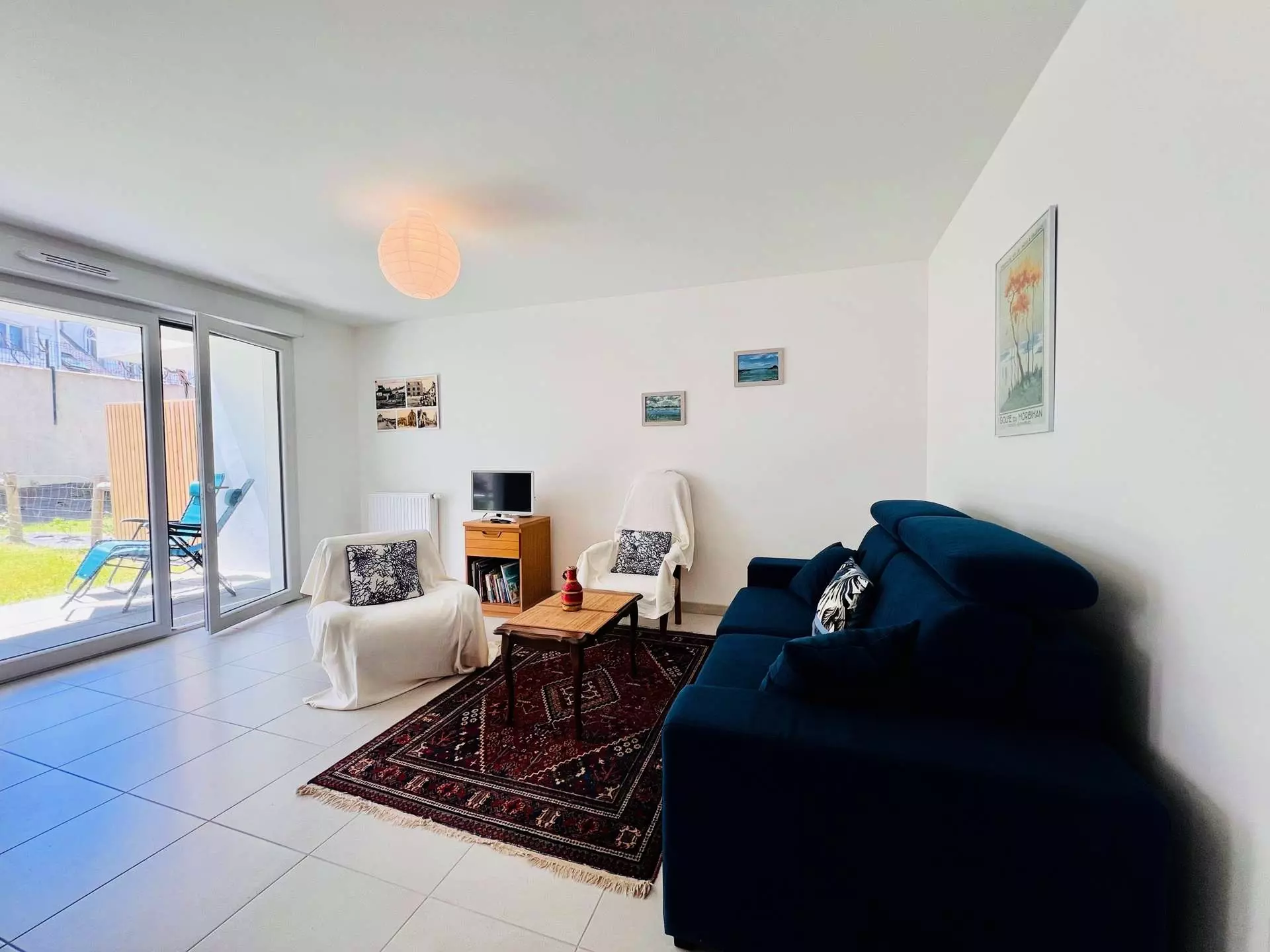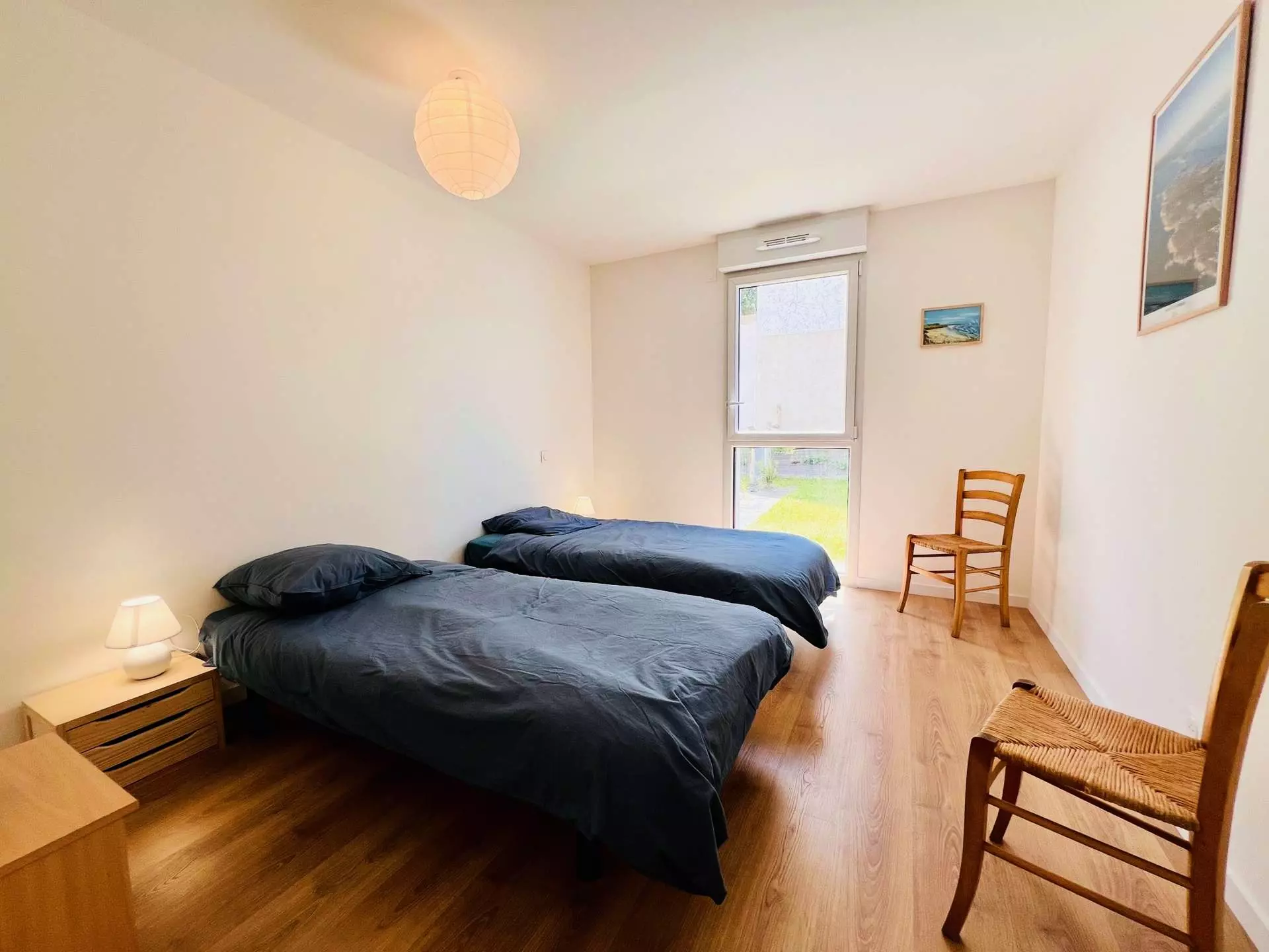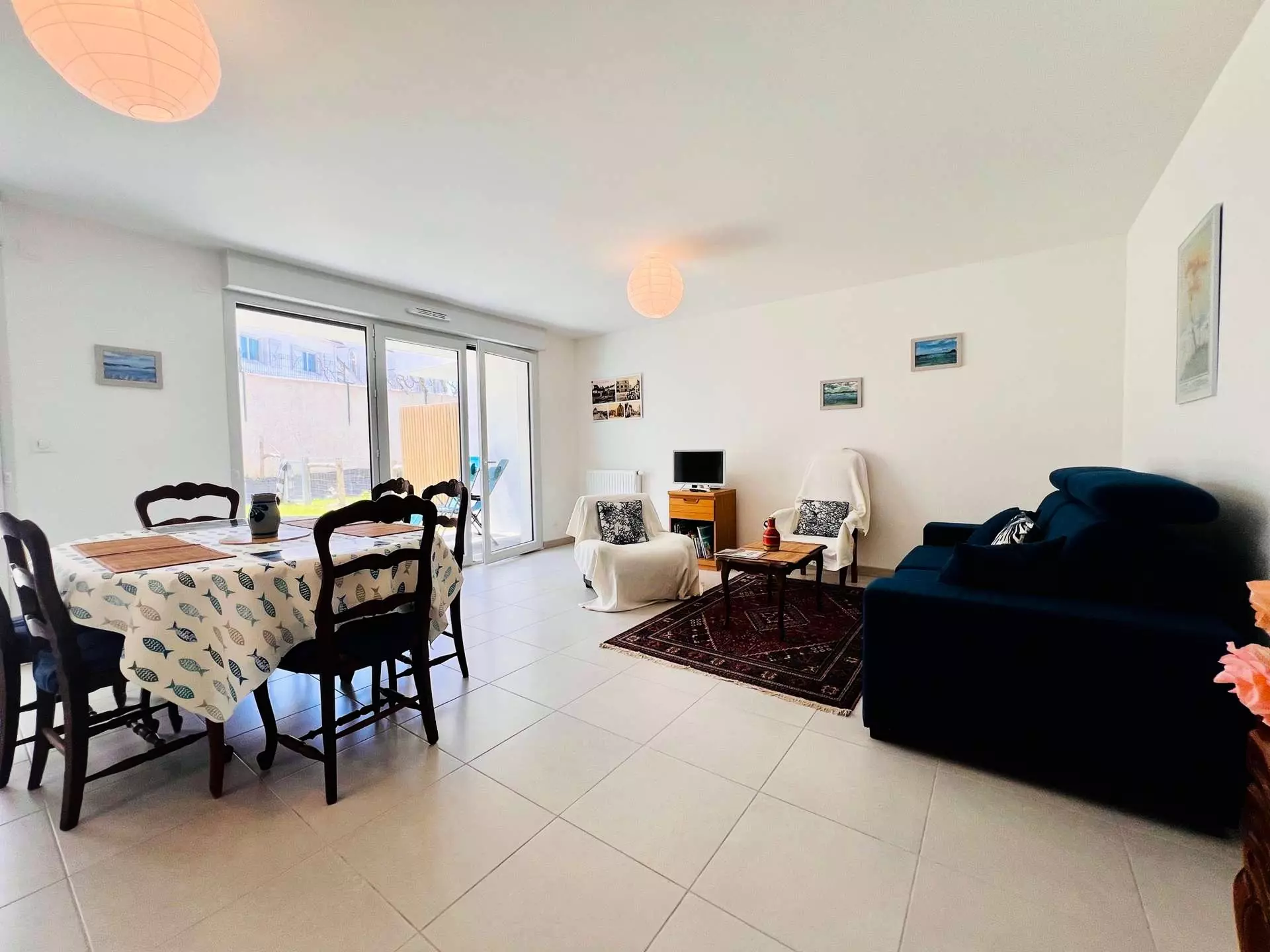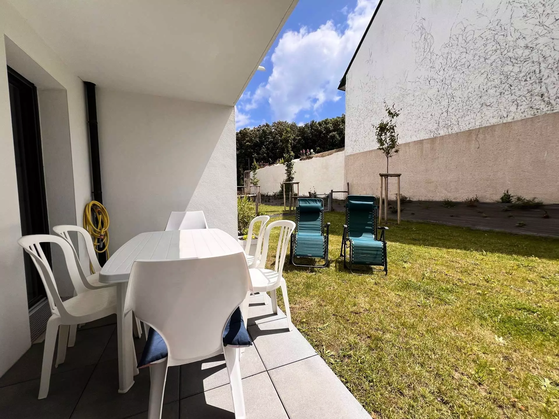 A proximité immédiate de la plage et des commerces du centre-bourg de Saint-Pierre-Quiberon, ce beau trois pièces de 68 m2 environ, très calme avec son jardin privé, se situe au rez-de-chaussée de la résidence neuve Ker Marie. Classé 2* pour 6 personnes, il est accessible aux personnes à mobilité réduite. WIFI gratuit dans l'appartement.