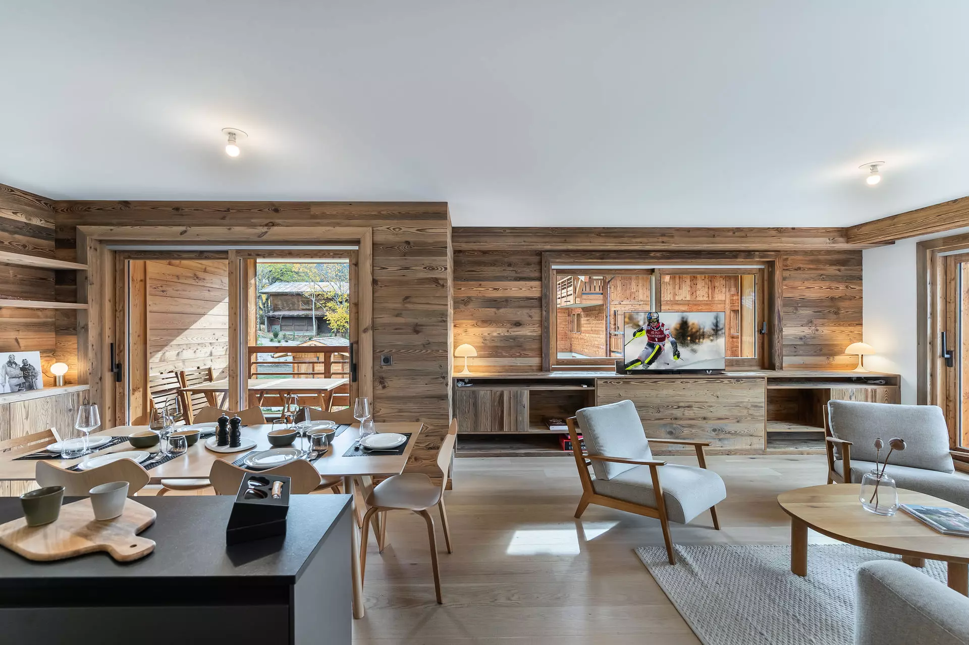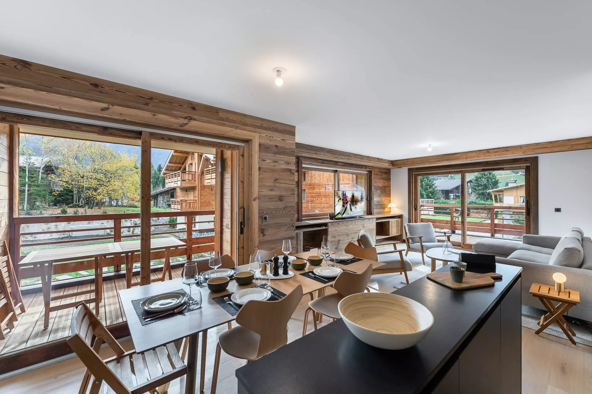Appartement 3 pièces de 71m² situé à 5 minutes à pied du Mont d'Arbois et du départ des pistes. Proche d'un arrêt navette desservant le centre de Megève. L'appartement peut accueillir 4 personnes grâce à 2 chambres doubles. Sa vaste pièce de vie ouvre sur une terrasse équipée de mobilier d'extérieur et offrant une vue sur la nature alpine. La résidence dispose d'un espace Bien-Être avec sauna, hammam et salle de sport. Casier à skis et place de parking couvert sont inclus dans le séjour.