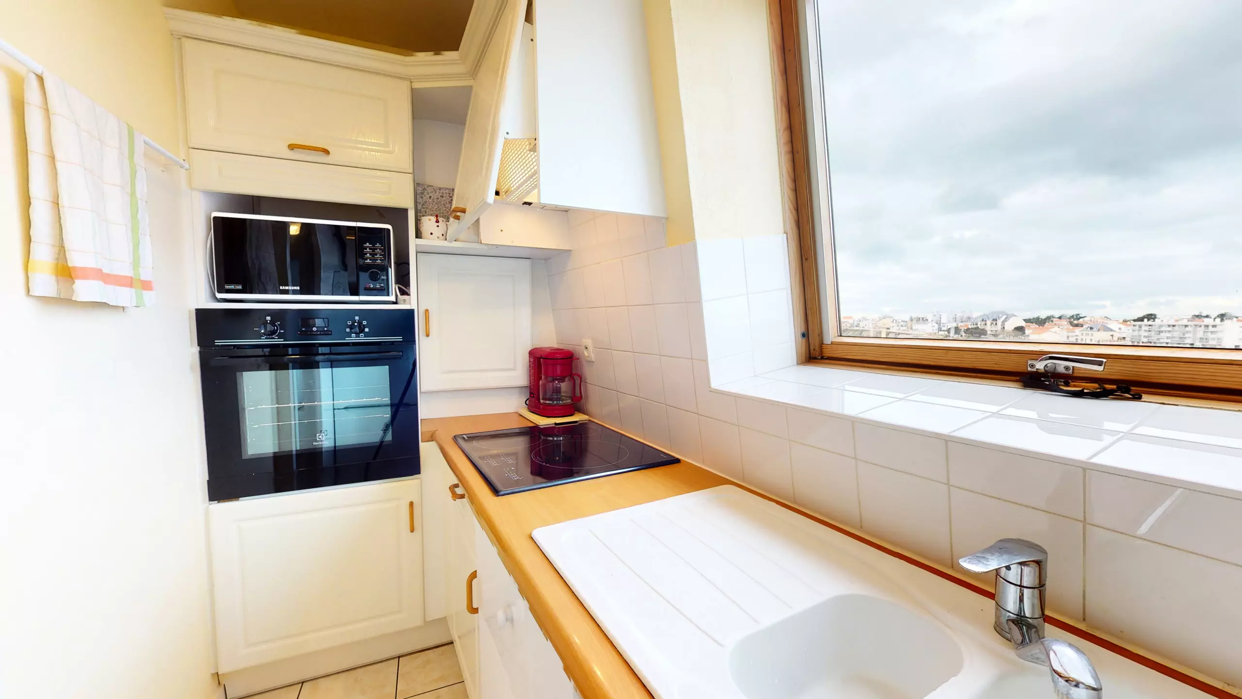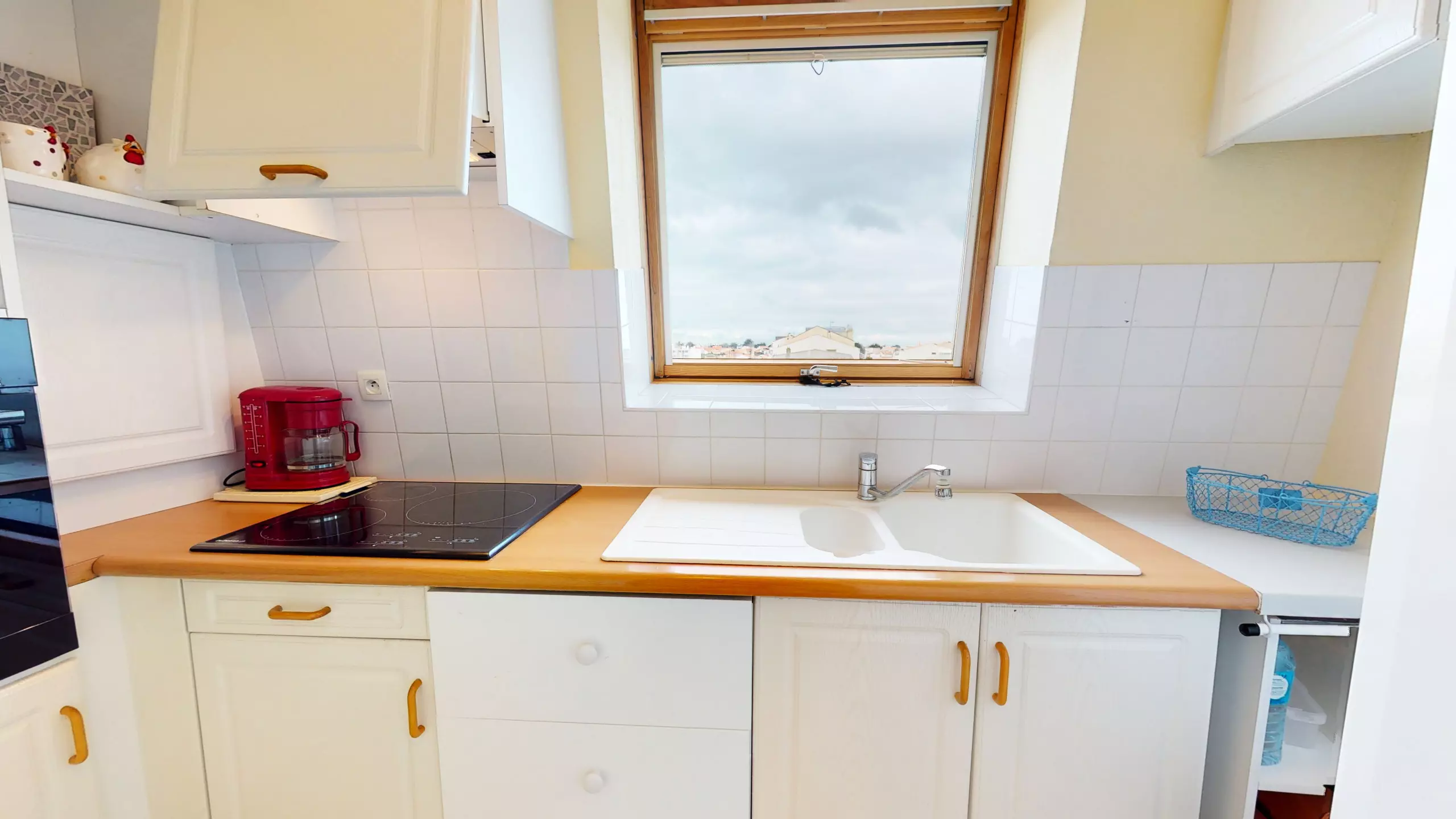 Logement de 70 m² accueillant et très lumineux situé au 4 -ème et dernier étage d'un immeuble en plein centre-ville. Face au passeur qui vous emmène l'été sur la grande plage, cet appartement se compose d'une entrée sur pièce à vivre avec balcon (vue sur l'entrée du port de pêche), une cuisine équipée (réfrigérateur, congélateur, four, plaque électrique, hotte, micro-ondes), un dégagement desservant 2 chambres avec chacune 1 lit double 160, une salle d'eau avec douche et machine à laver, une chambre avec lit double 140 en mezzanine.