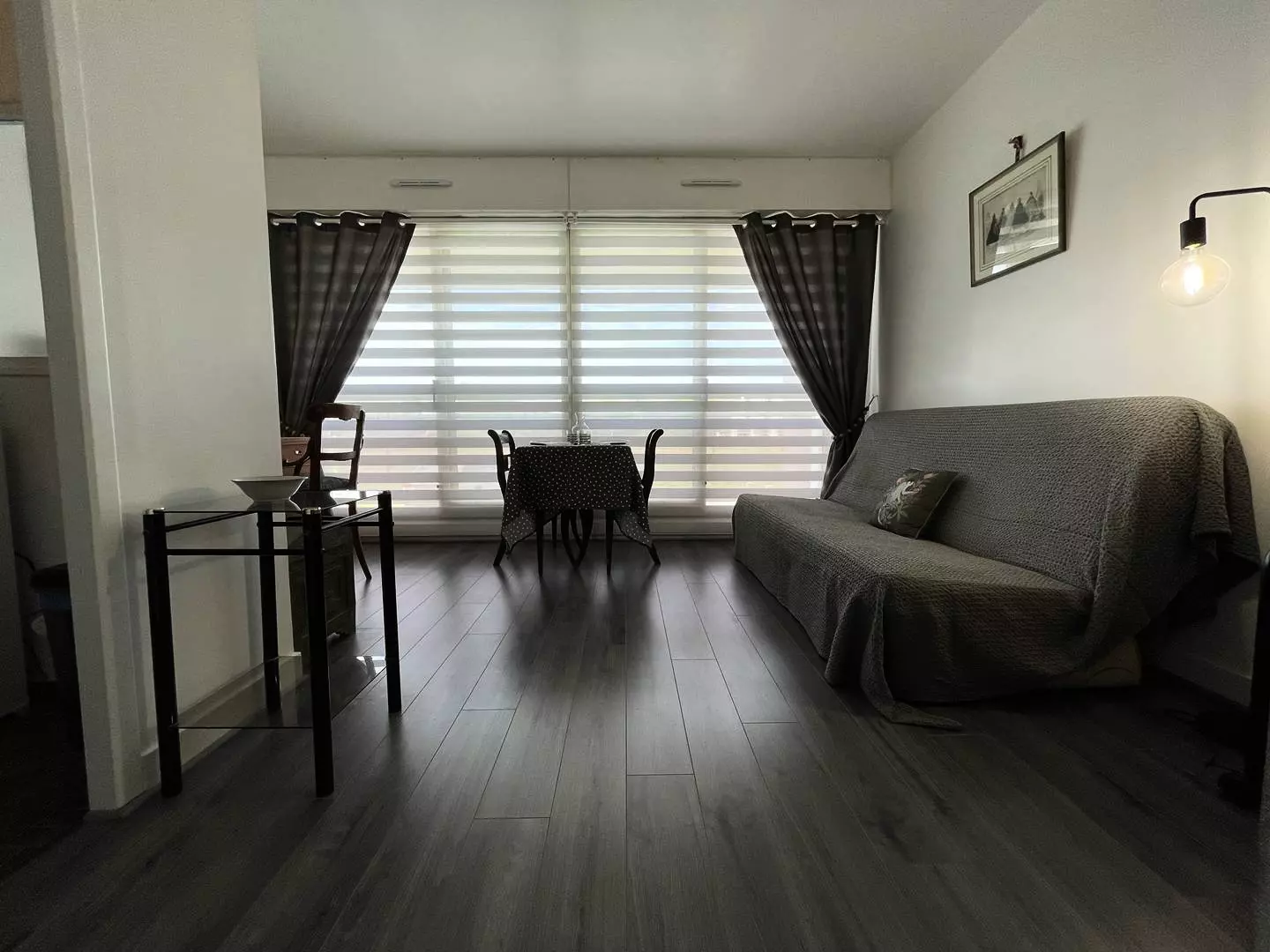 Cet hébergement de vacances est situé au bout du quartier du Mail, résidence face à la mer. Il est en rez de chaussé sur élevé et se compose d'une entrée, une salle de bain, wc séparé, de nombreux rangements, un coin cuisine ouvert sur le séjour avec le nécessaire pour cuisiner, micro ondes, plaque, frigo top. Un séjour avec une grande baie laissant entrée le jour. Un couchage clic clac en 140cm pour deux personnes avec espace bureau, coin tv détente.
