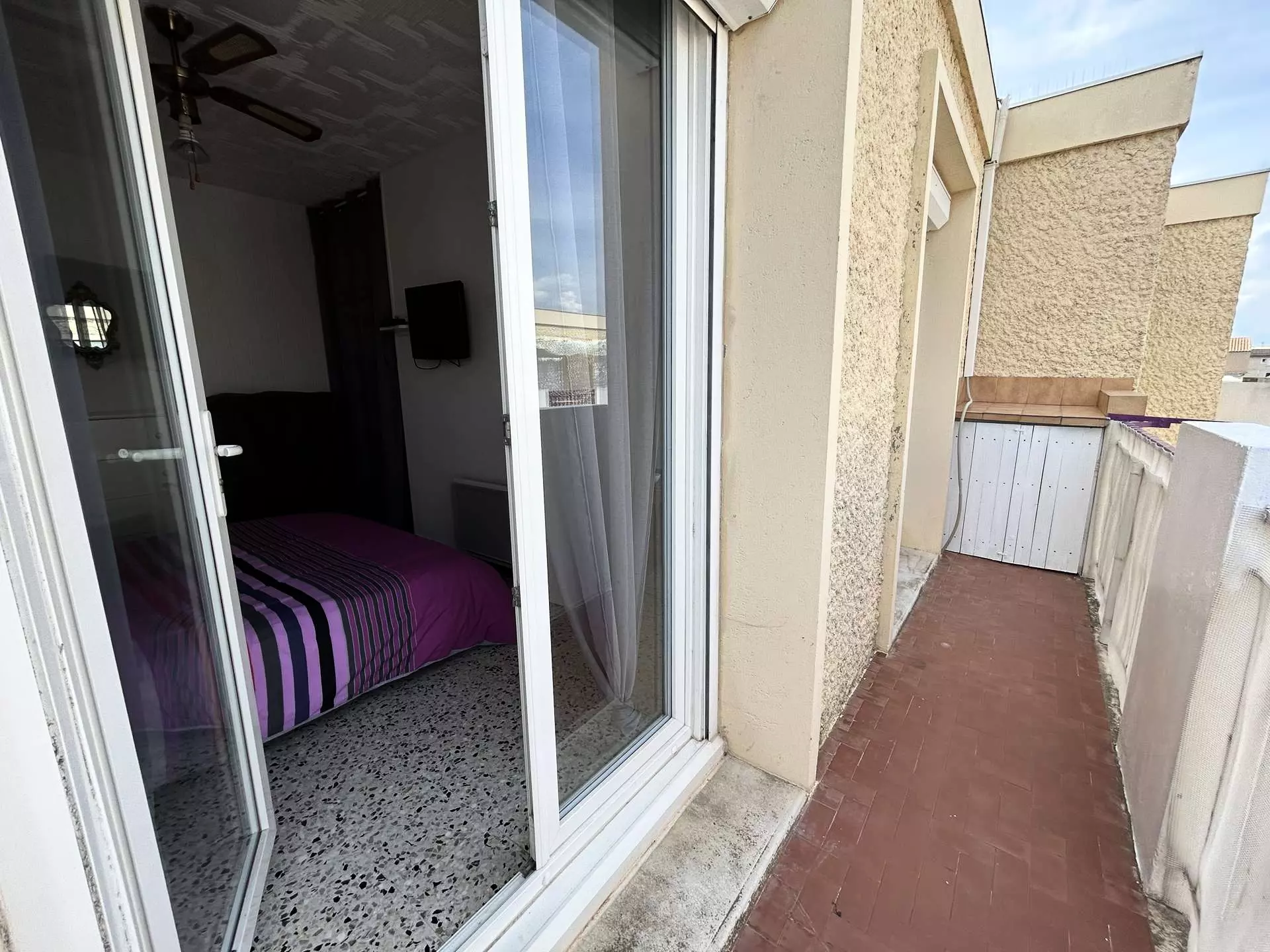 Le "Plus" de cette location à la mer : la climatisation, le petit balcon extérieur le long du séjour et de la chambre.