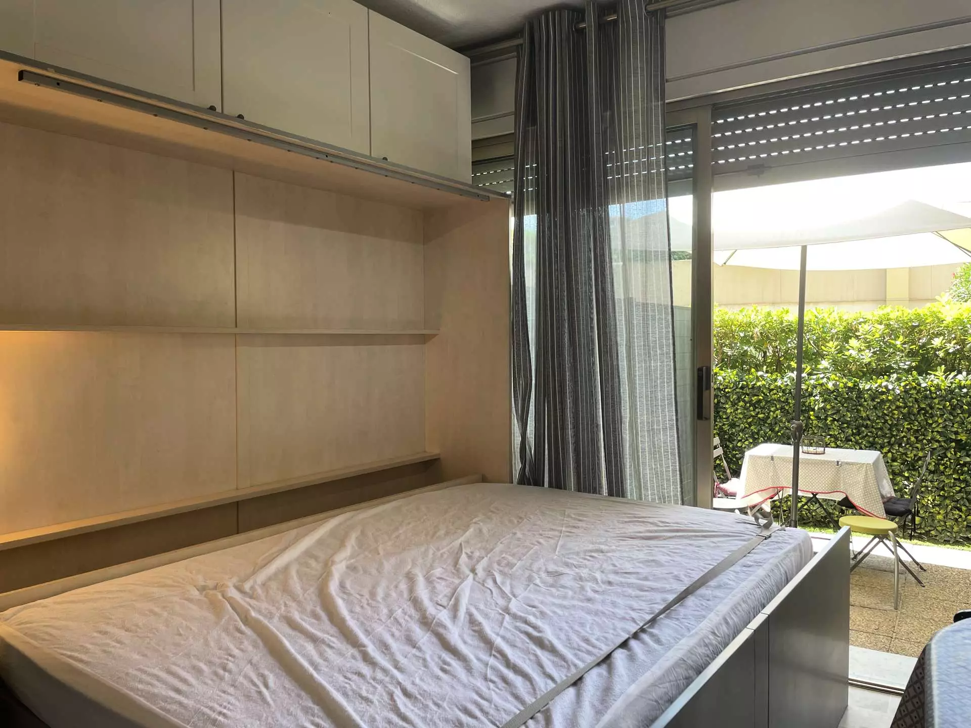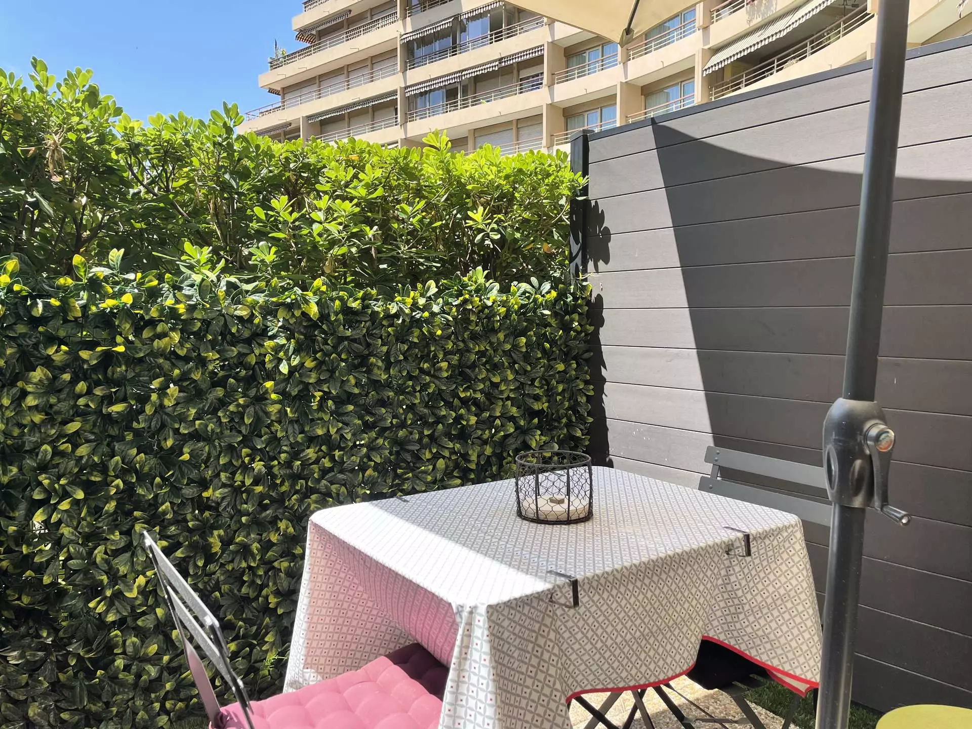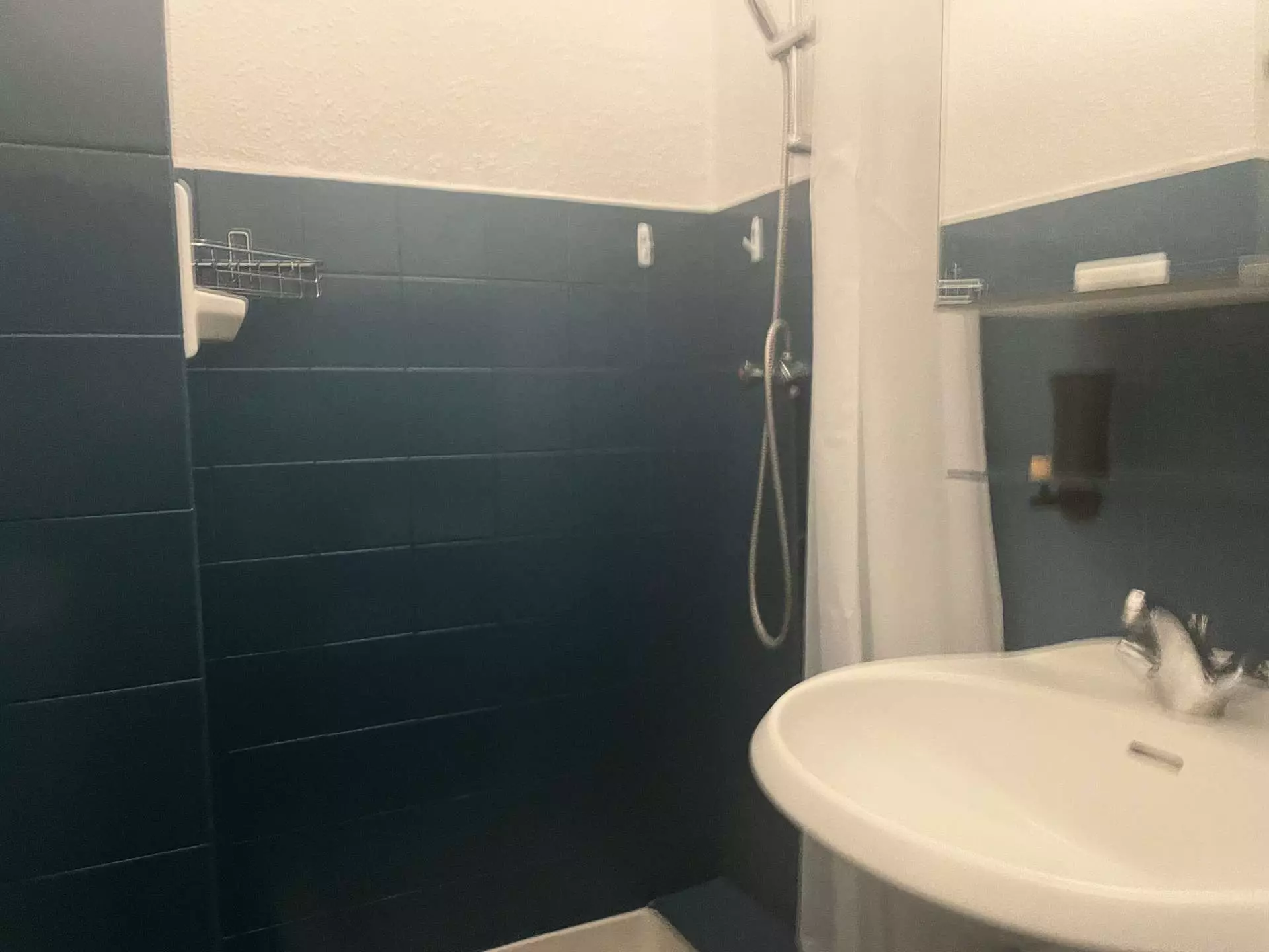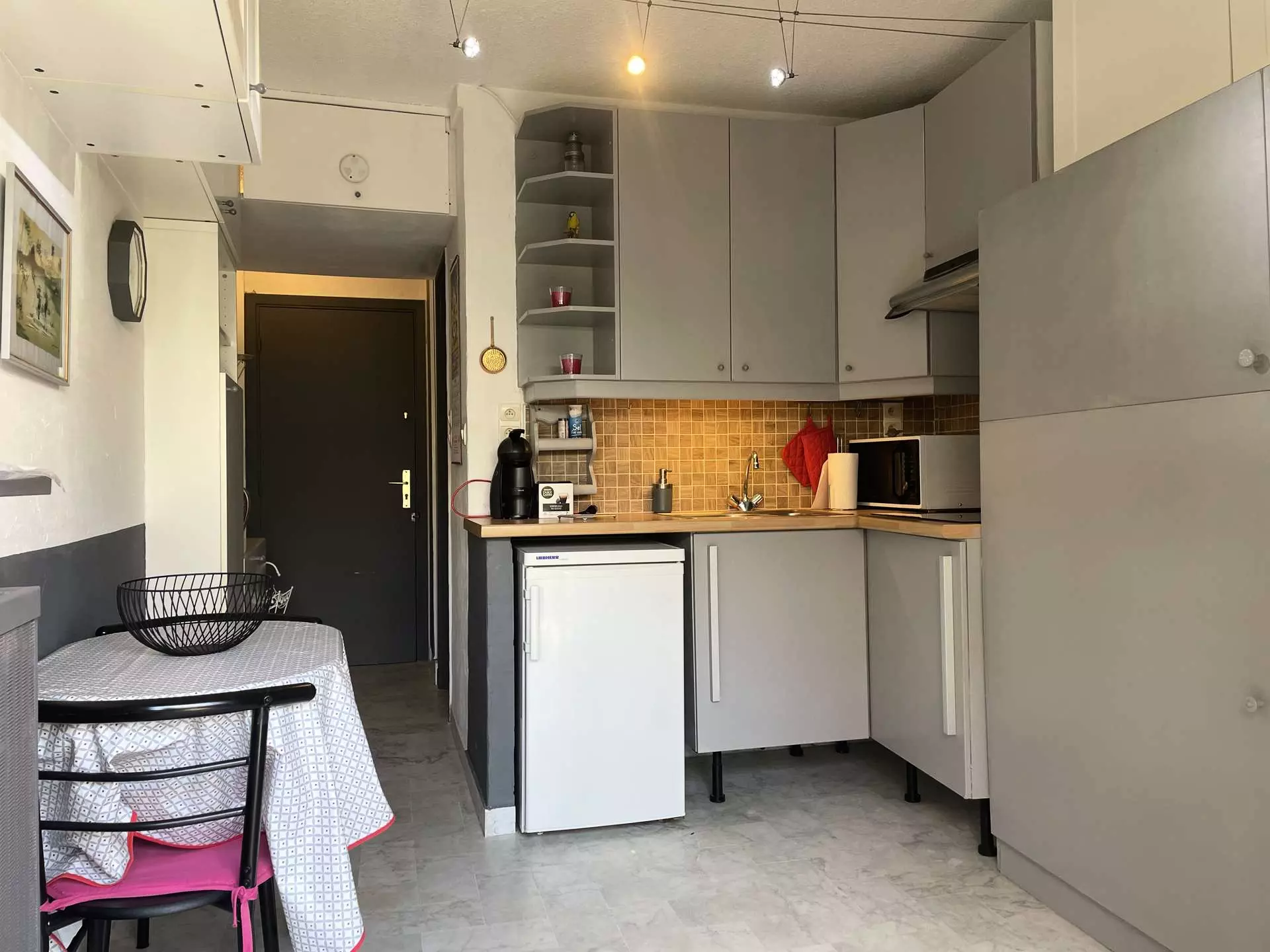 Votre appartement de vacances en rez de jardin comprend une entrée, une salle de douche avec wc, un séjour avec kitchenette équipée, un lit escamotable ouvert sur une terrasse avec mobilier.