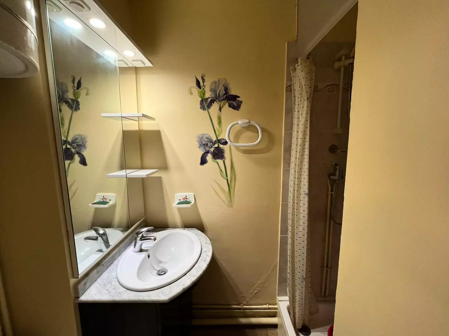 Appartement au 1er étage composé d'une pièce à vivre avec un canapé convertible pour deux personnes, une télévision, ventilateur une salle d'eau avec wc, une chambre avec un lit en 120 cm et un lit superposé en 90cm.