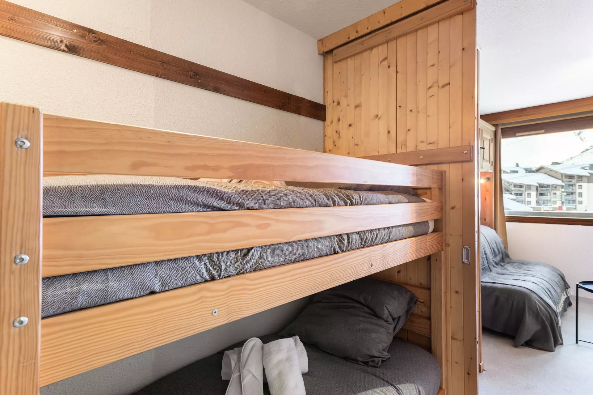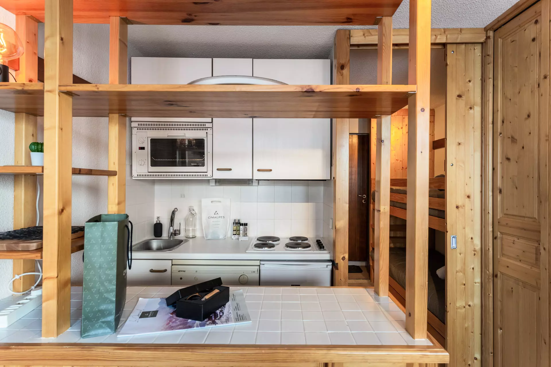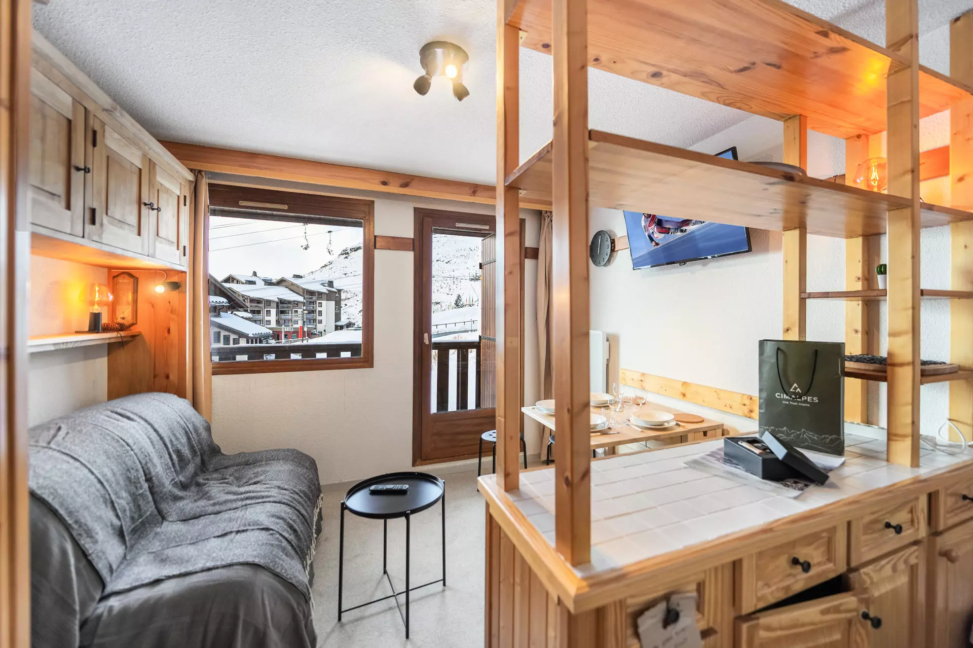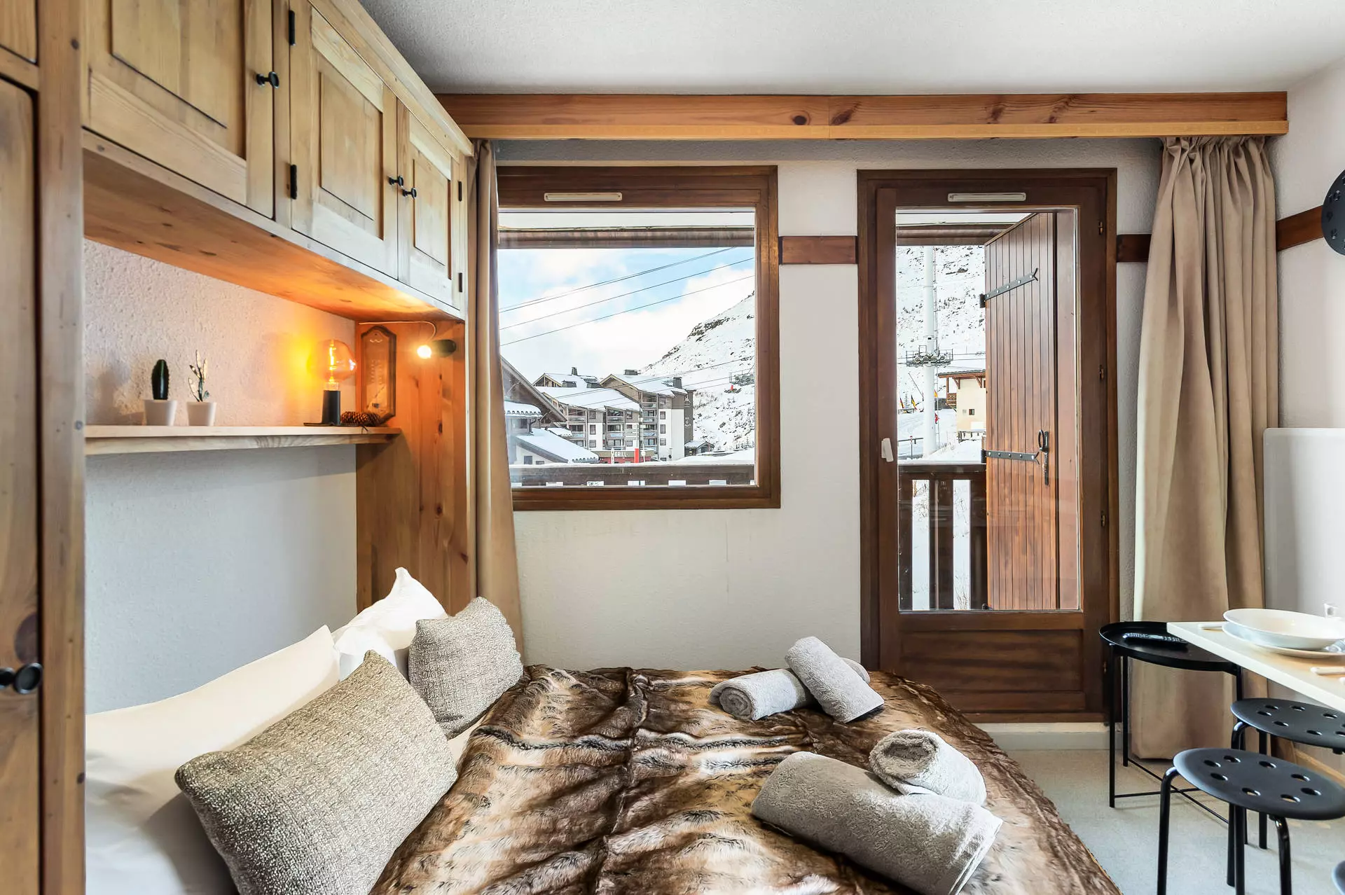 Ce studio est idéal pour 2 adultes et 2 enfants. Le coin montagne est isolé du séjour grâce une porte coulissante. Le balcon,exposé ouest, permet de profiter du coucher de soleil.