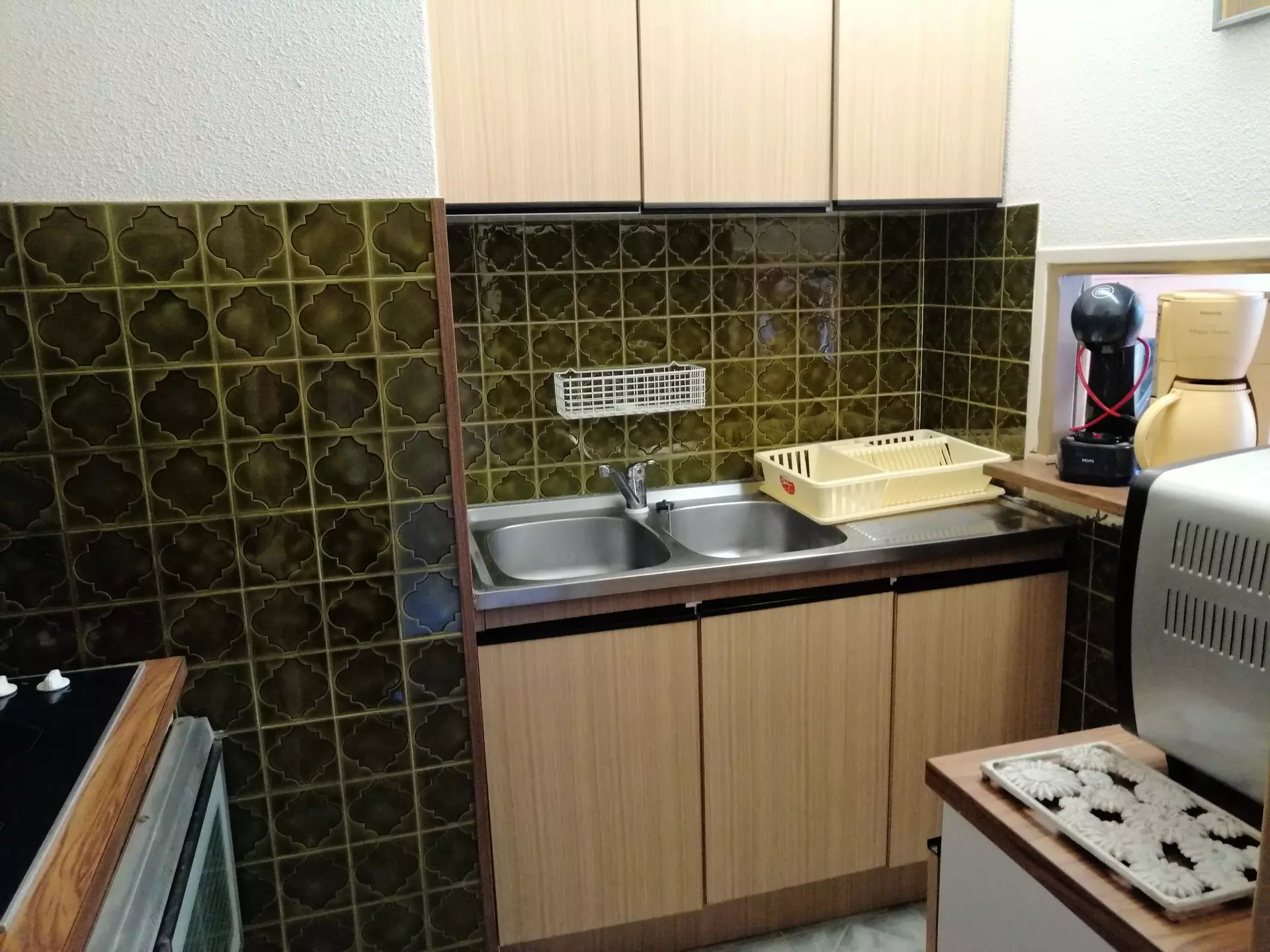 * Coin cuisine : 4 plaques vitrocéramiques, four, micro-ondes, réfrigérateur, cafetière filtre, Cafetière Golce Gusto, appareil à raclette, appareil à fondue ;