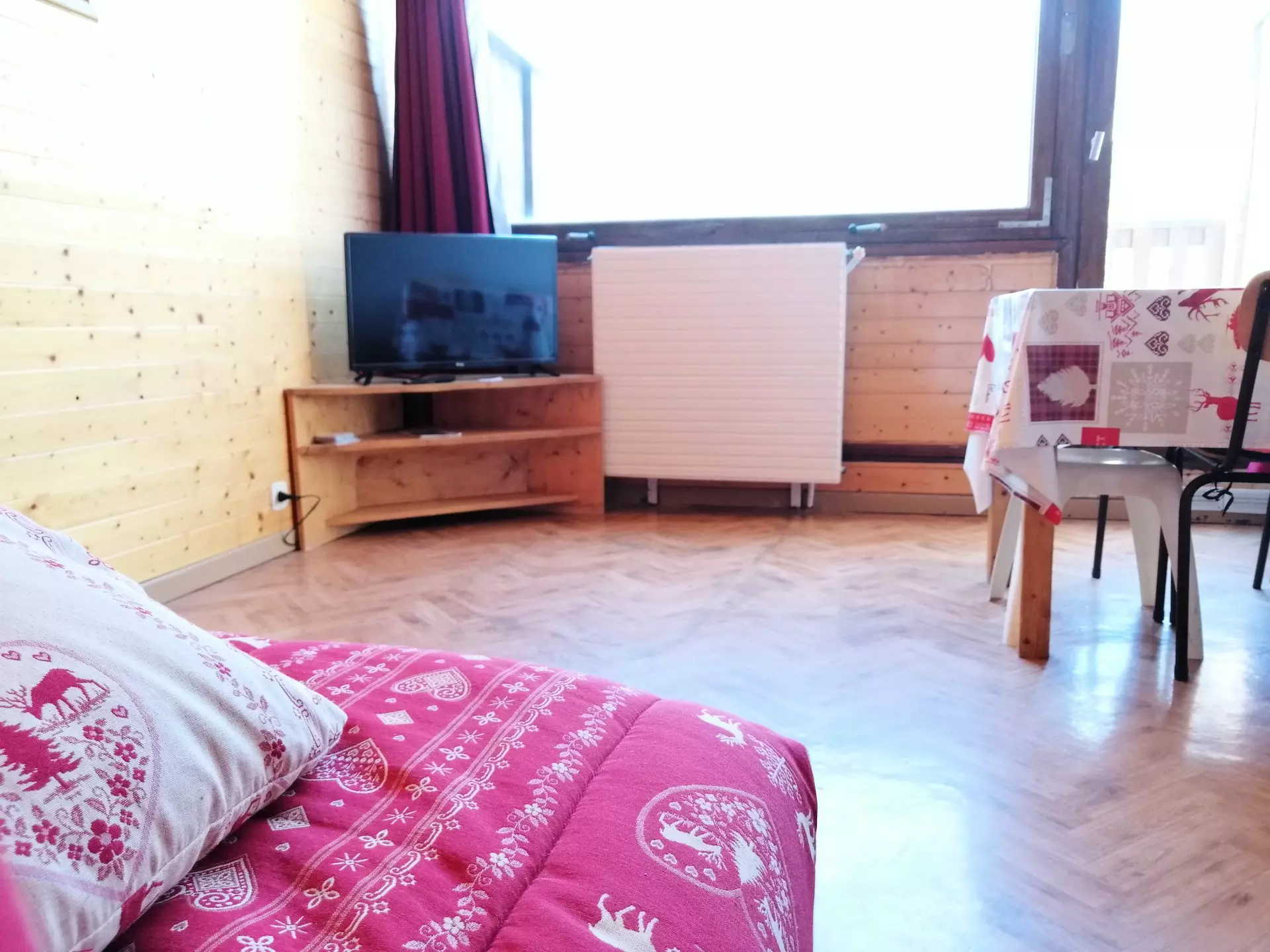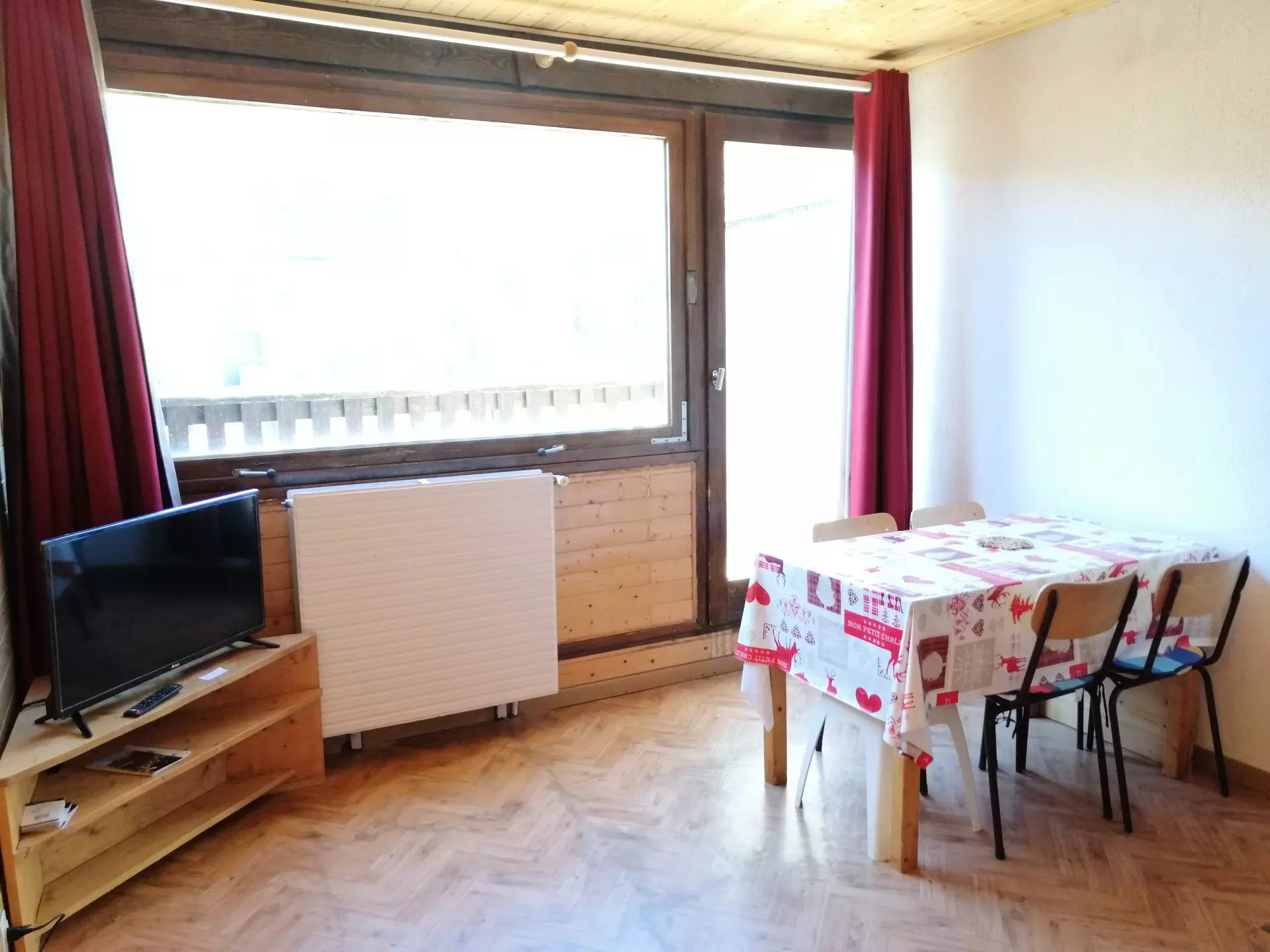 COMMENTAIRES : Studio très propre, bien entretenu, lumineux. Couettes pour tous les lits. Vue sur le parc de la résidence. Chauffage et eau chaude collectifs. Box à skis individuel. Baie vitrée alu et volet roulant électrique. Situé à environ 350m des pistes et de la galerie commerciale.