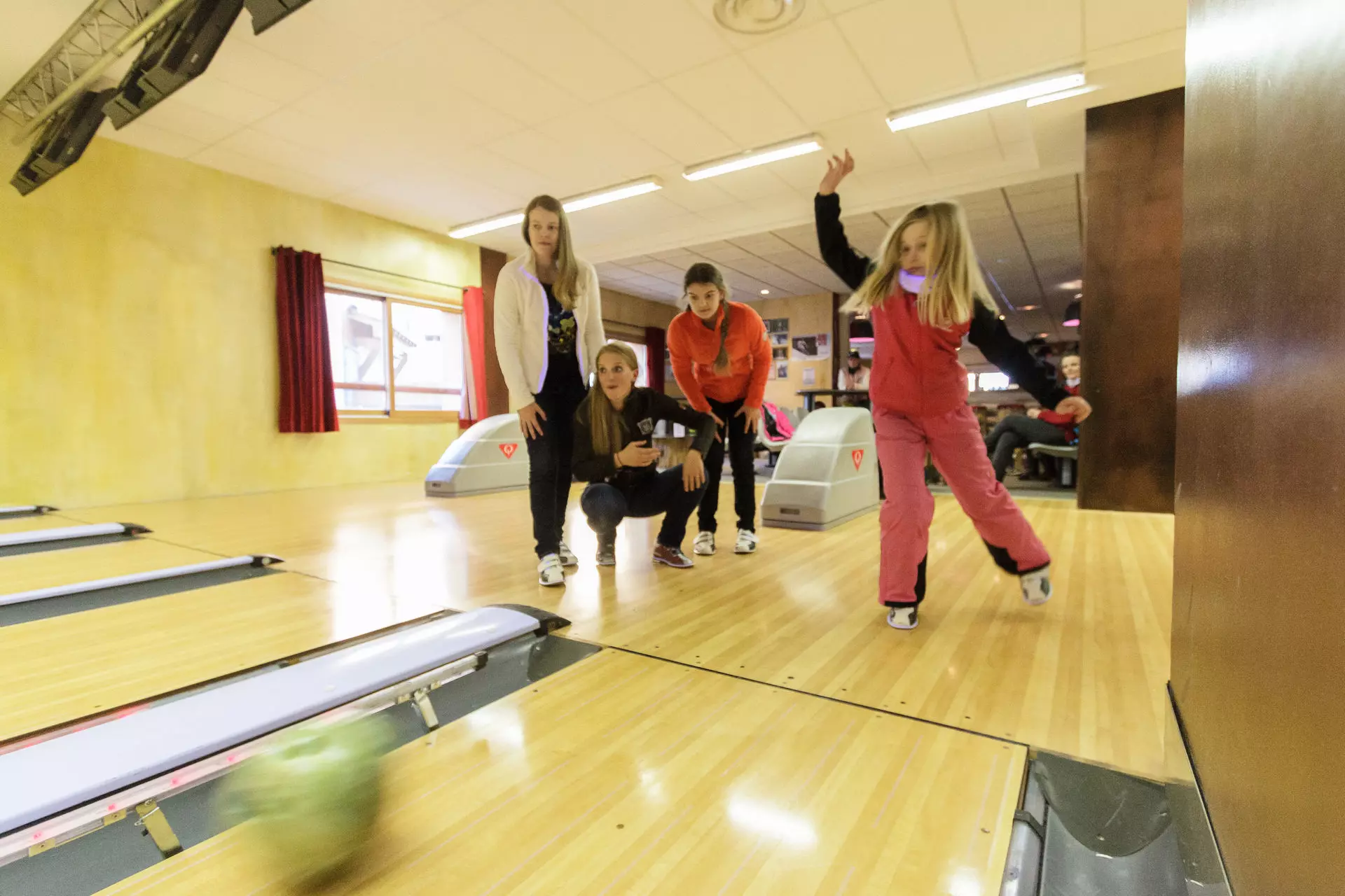 L'accès aux pistes se fait par l'arrière du bâtiment.