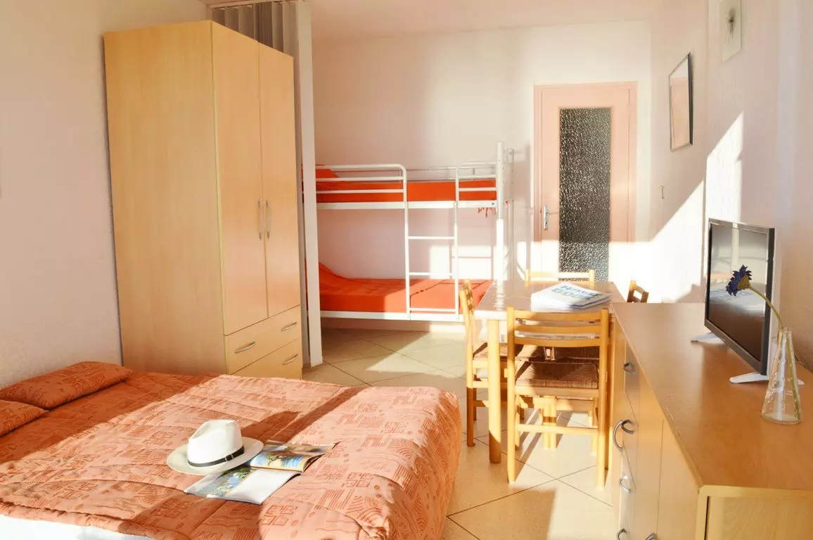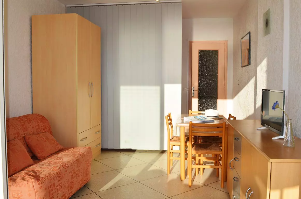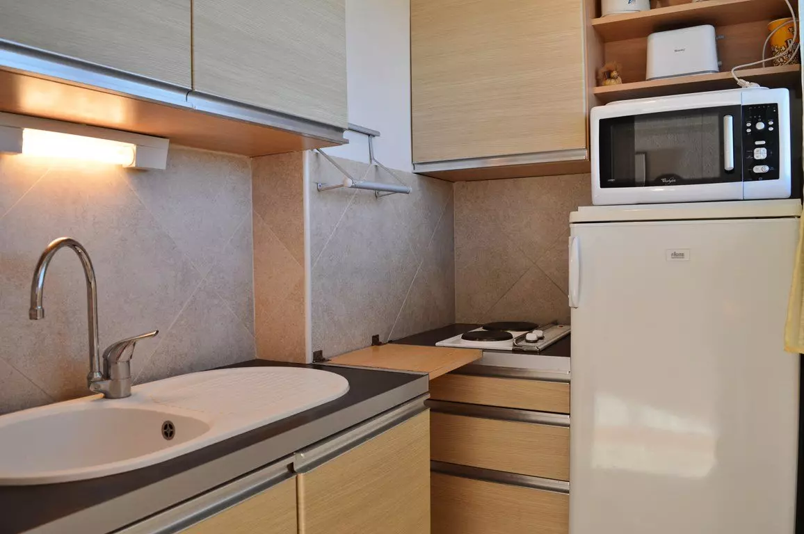 Vue mer panoramique pour ce charmant studio sur la plage. Il est composé d' un séjour exposé Est avec canapé convertible et lits superposés, d'une cuisine indépendante ainsi que d'une salle d'eau et wc.