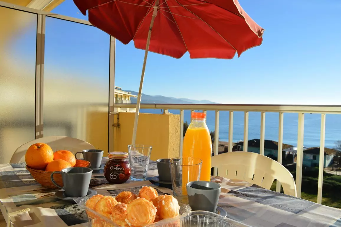 Les plus de cette location de vacances : situation exceptionnelle pour l'immeuble La Corvette avec accès direct à la plage. Cet appartement vous offre une terrasse avec vue mer panoramique.