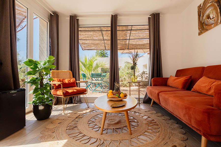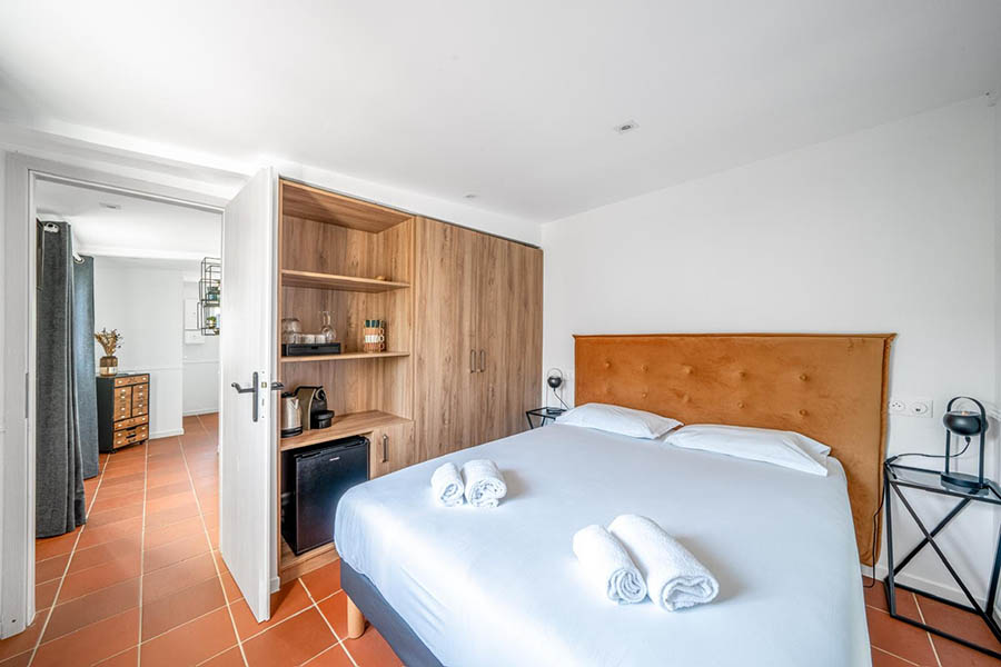 Les appartements, répartis dans de petits bâtiments à l'architecture discrète, offrent un confort contemporain et une ambiance chaleureuse. Leur aménagement, à la fois simple et fonctionnel, inclut tout le nécessaire pour un séjour agréable : climatisation, literie de qualité, coin kitchenette équipé (avec plaques de cuisson, hotte, micro-ondes, réfrigérateur et cafetière Nespresso®), salle de douche avec sèche-cheveux, télévision écran plat avec TNT, et un espace extérieur privé, terrasse ou balcon, aménagé avec table, chaises et parasol.
